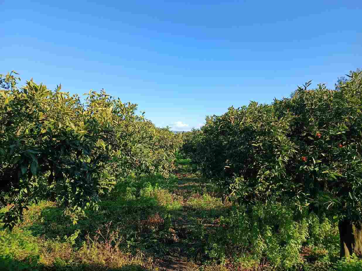 Quota pari ad 1/2 della piena proprietà fondo rustico coltivato ad agrumi, della superficie complessiva di ettari 8.38.80. Il terreno, coltivato ad agrumi, si presenta con giacitura pressoché pianeggiante, in discrete condizioni di vegetazione ed è dotato di impianto di irrigazione fisso ad aspersione sopra chioma ed in alcuni settori con impianto per irrigazione localizzata con micro getti