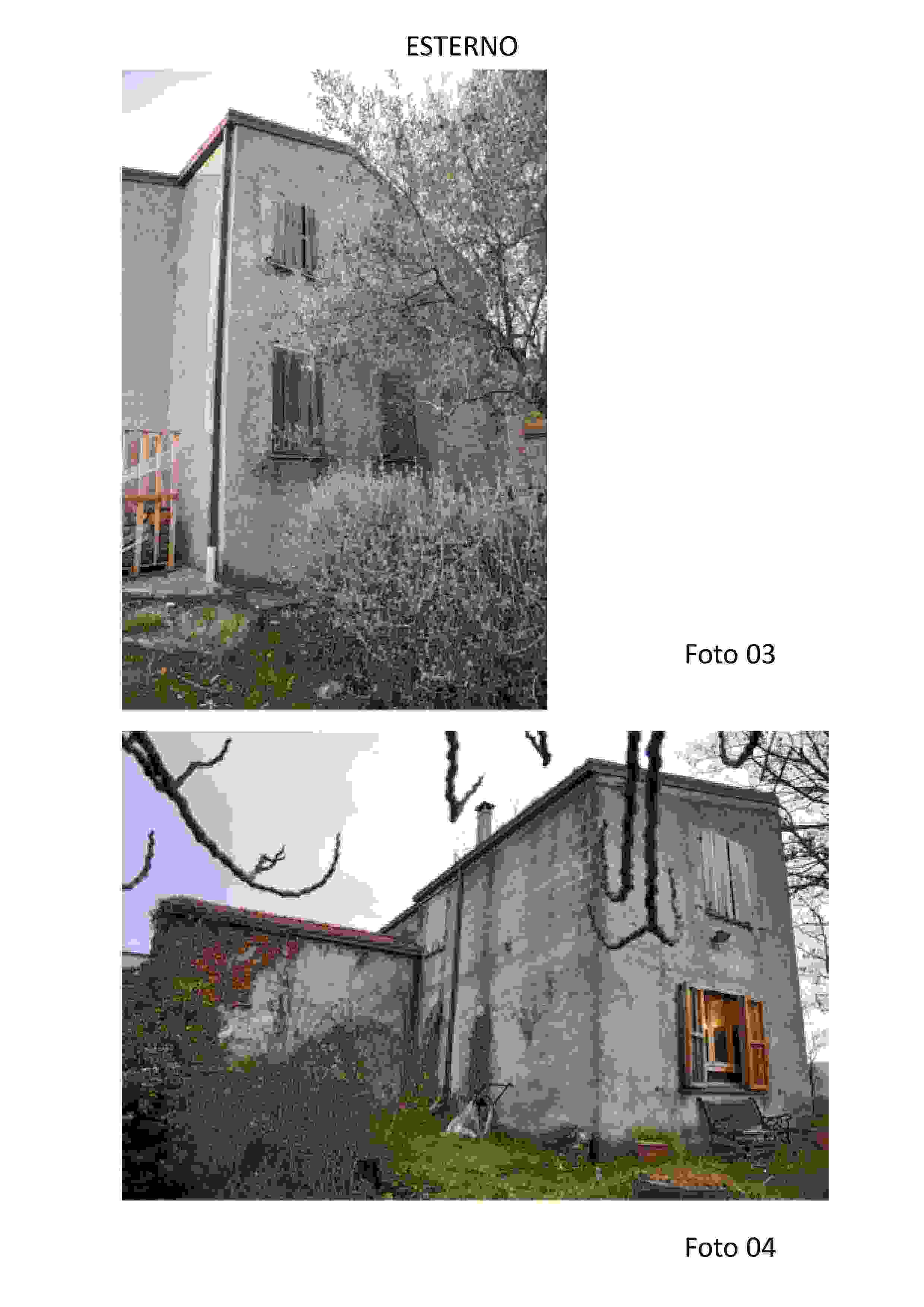 Il fabbricato risale agli anni ‘40 e riguarda una casa di campagna da cielo a terra, di due piani e cantina seminterrata, con area esterna pertinenziale non recintata (part. 277). L’edificio ha in aderenza un altro fabbricato di altra proprietà.E’ composto al piano terra locale cucina/pranzo di mq 19,95 con due finestre sud, vi è poi un antibagno e un bagno 1 di mq 3,25 con finestra a est, a nord c’è il locale soggiorno di mq 39,30 con finestra a ovest.