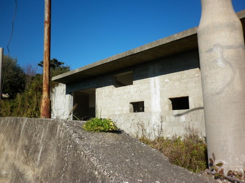 Fabbricato con annessa pertinente corte di 737 mq circa, allo stato rustico realizzato con struttura portante in cemento armato, costituito da un reticolo di pilastri e travi dotato di un solo piano seminterrato della superficie di 275 mq circa, il tutto recintato ed in stato di completo abbandono pieno di rovi e sterpaglie tutt'intorno.