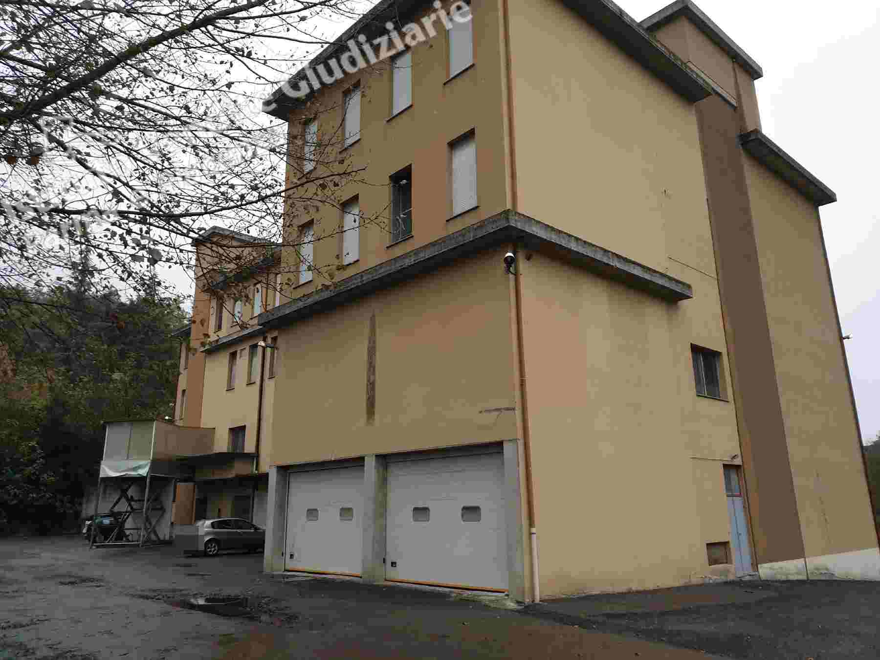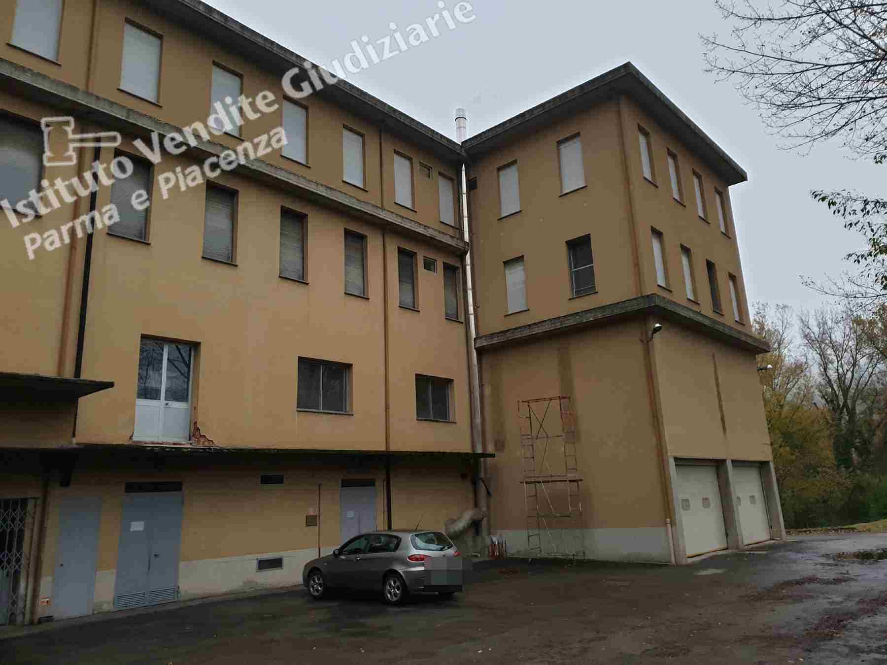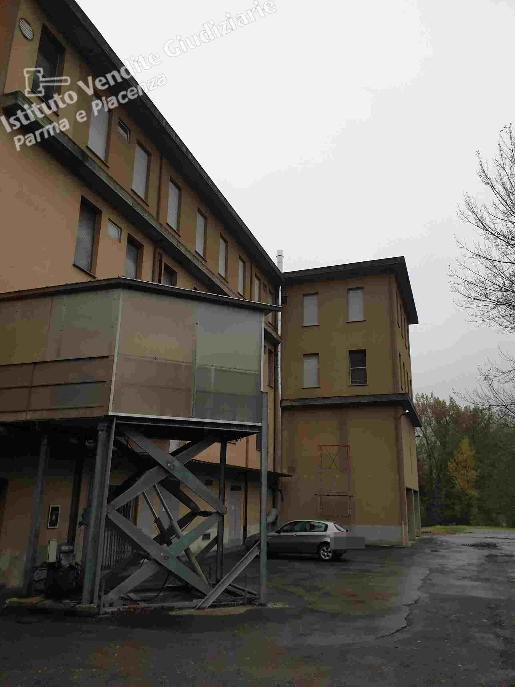 Lotto unico - Fabbricato da terra a tetto, elevato di quattro piani fuori terra, in parte adibito a salumificio, lavorazione e stagionatura dei prosciutti di mq. 2661 e ad uffici di mq. 209, ed in parte adibito a civile abitazione di mq. 121 con autorimessa. Di pertinenza area cortilizia e contigui appezzamenti di terreno di varia forma e natura.