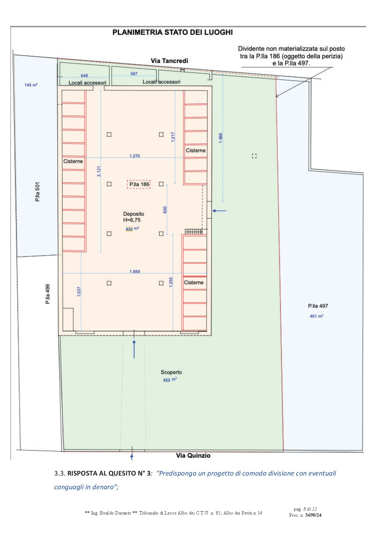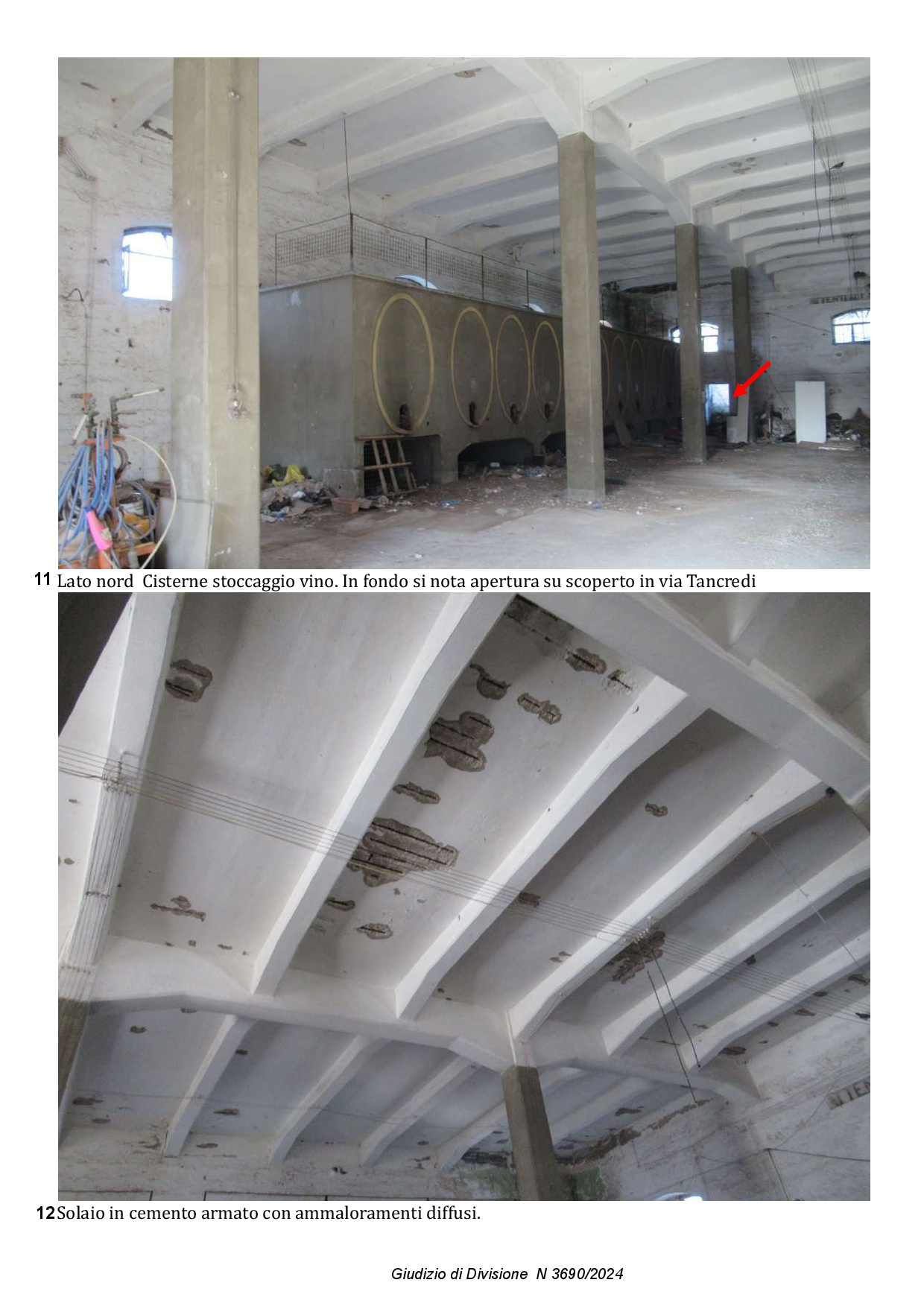 Composto da locale principale a tre campate, con travi in cemento armato e copertura piana, un tempo destinato a stabilimento vinicolo e dei locali accessori di cui uno con accesso diretto dal locale mentre l’altro con accesso diretto dallo scoperto laterale di pertinenza. La copertura di questi locali accessori versa in pessime condizioni e per di più parte di essa è stata realizzata in Eternit. Si sviluppa una superficie lorda complessiva di circa mq 1754.