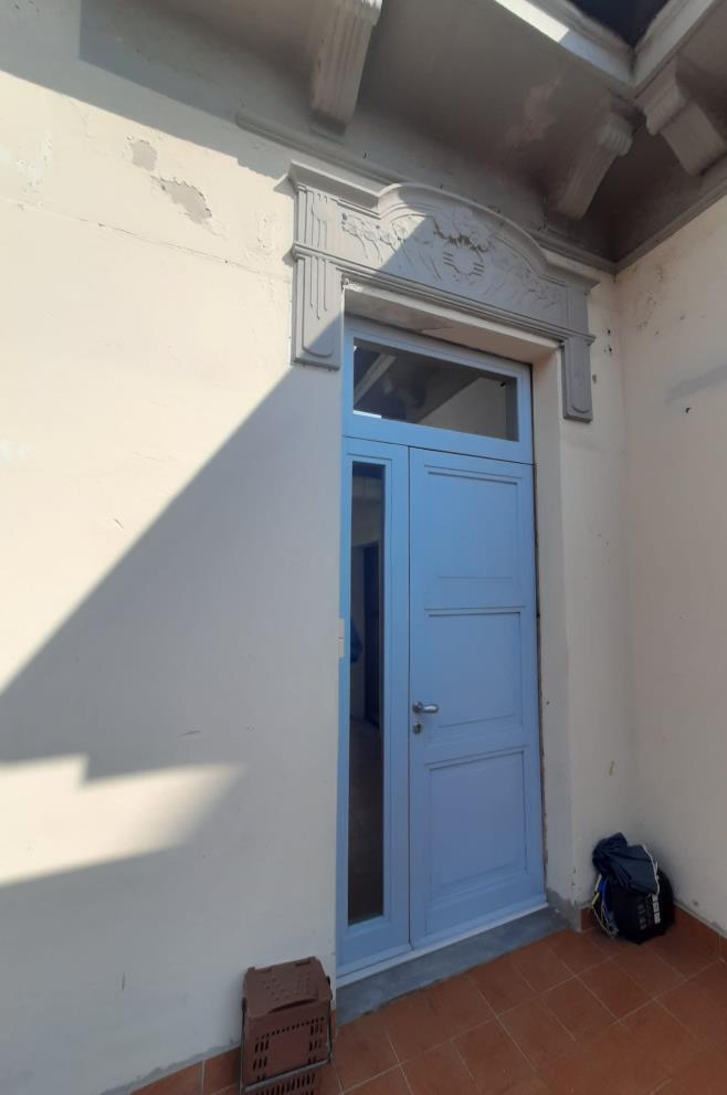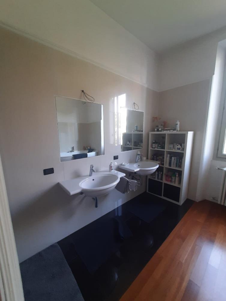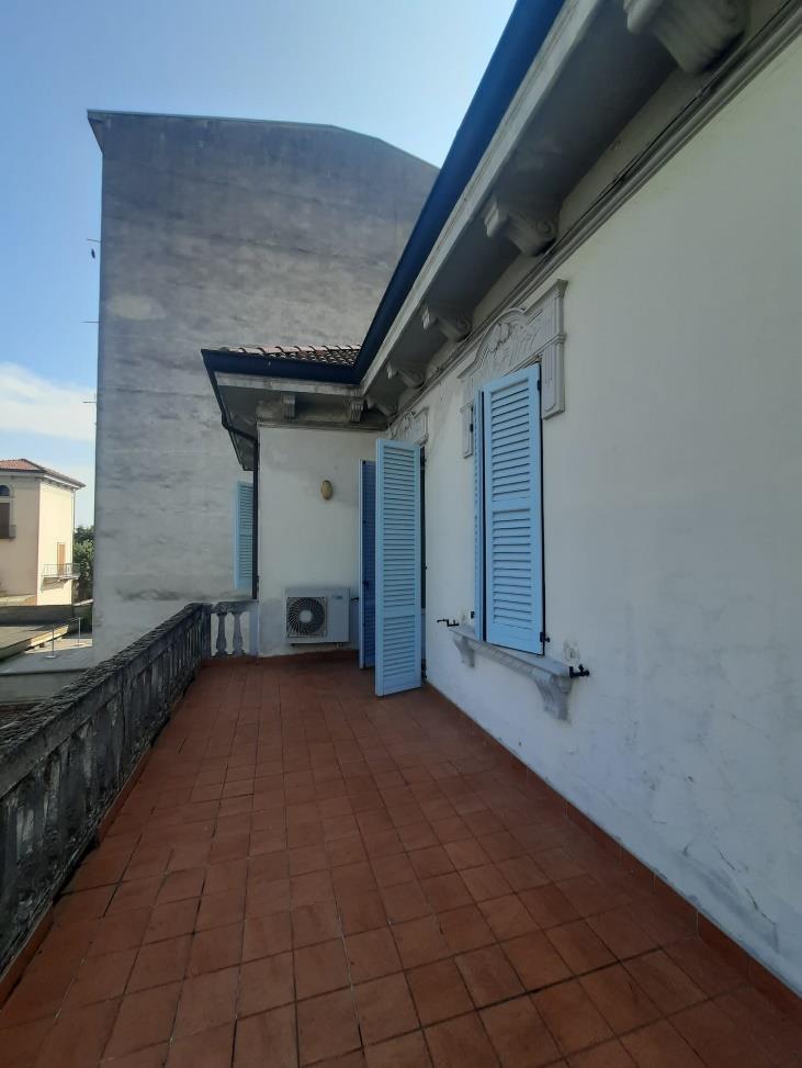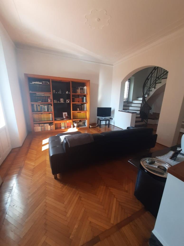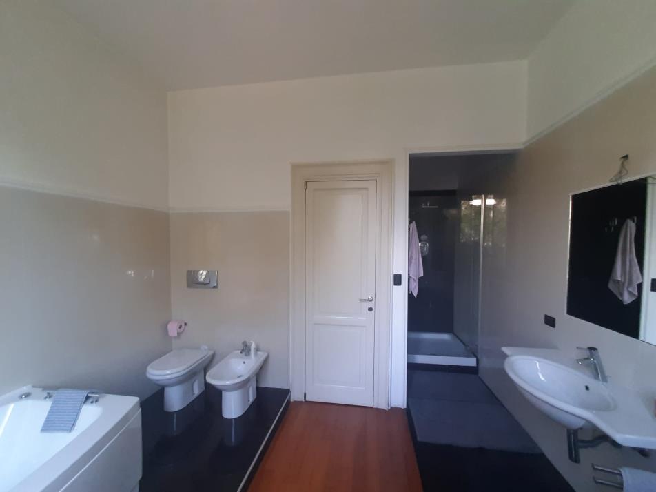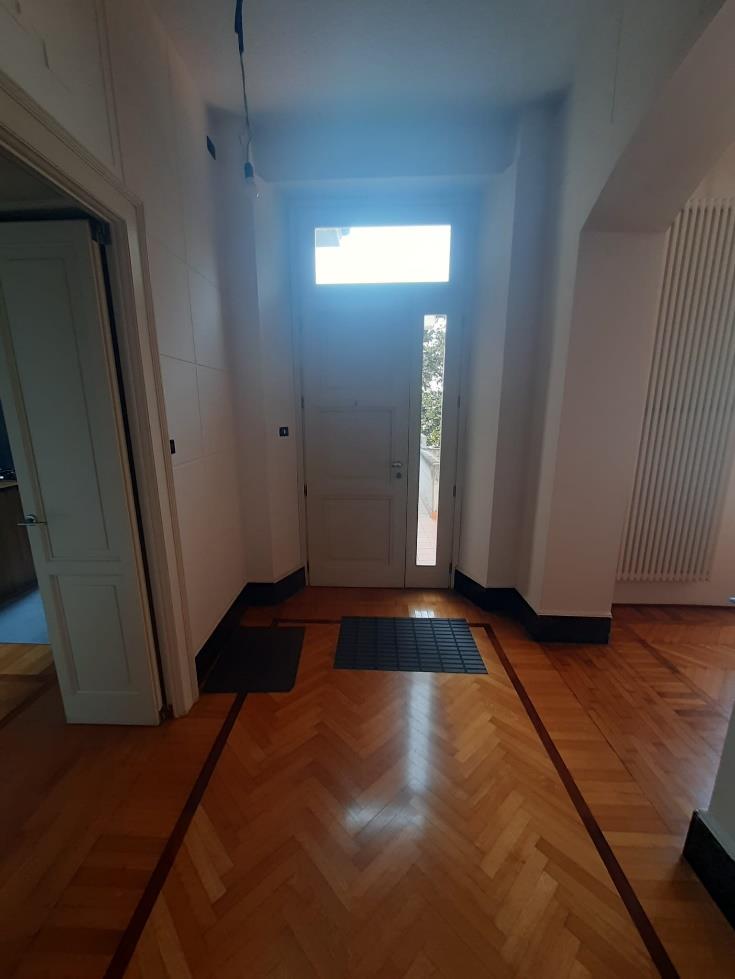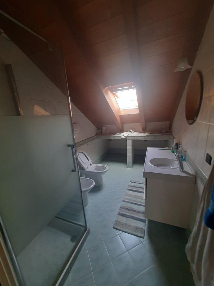 Unità immobiliare ad uso abitazione costituita da porzione di villa urbana bifamiliare disposta su tre piani con ingresso indipendente così disposta: al piano terra ingresso con scala esterna e ascensore oltre ad area cortilizia, al piano primo due terrazzi, cucina, soggiorno, bagno con lavanderia, due camere da letto e scala interna, al piano secondo camera, bagno, lavanderia e ripostiglio. Totale superficie commerciale abitazione: mq. 349,18.