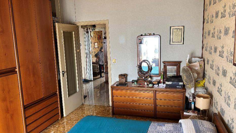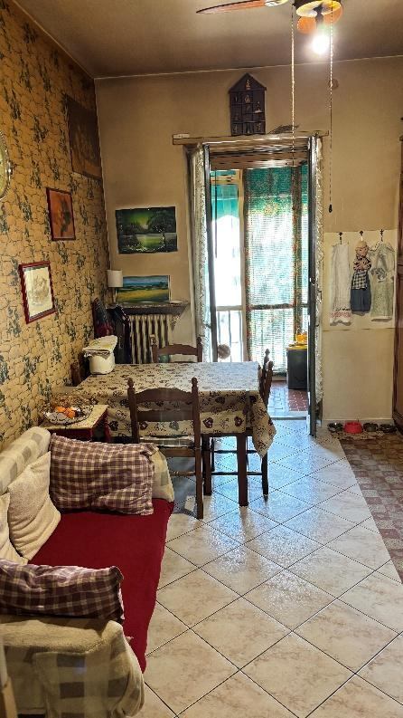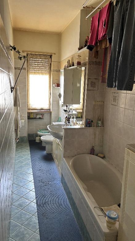 Alloggio al piano terzo (4 f.t.), composto di due camere, cucina e servizi. Cantina al piano sotterraneo.