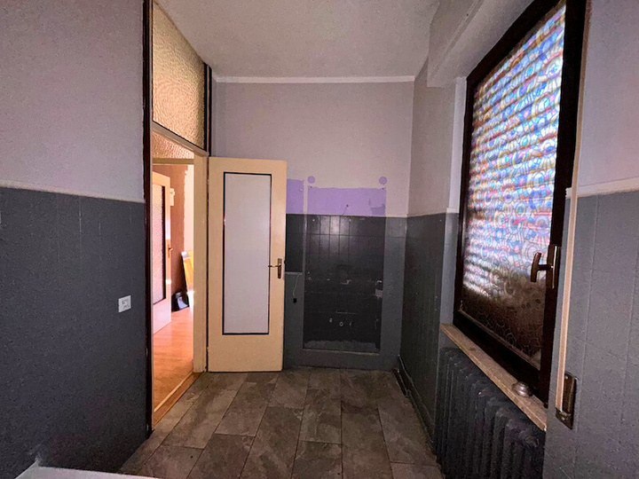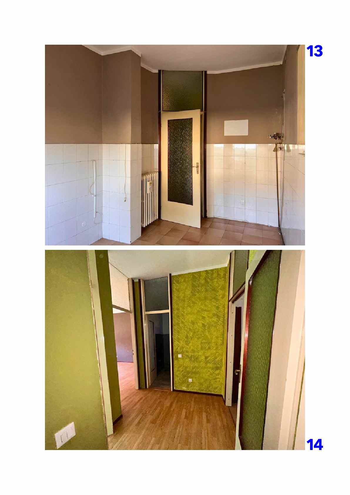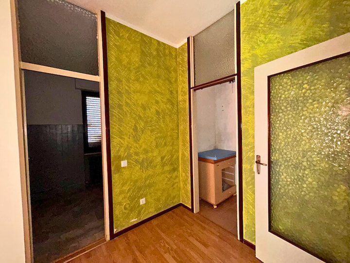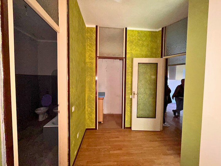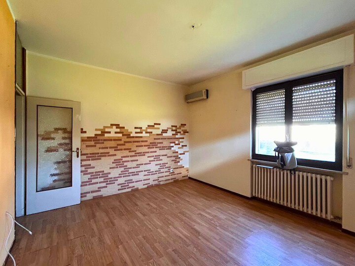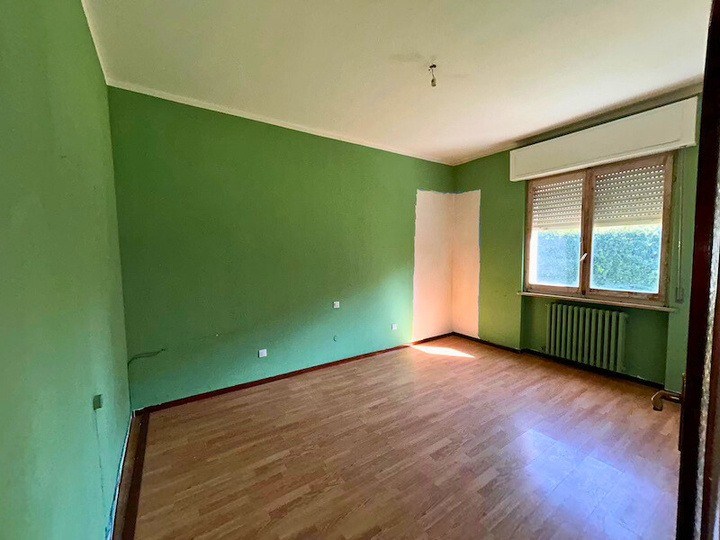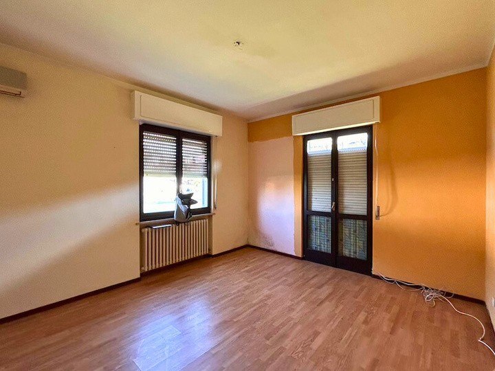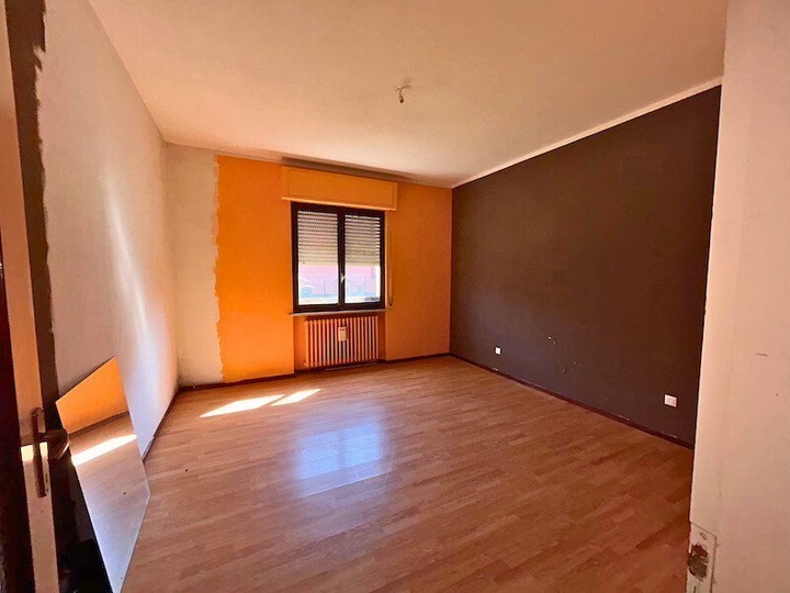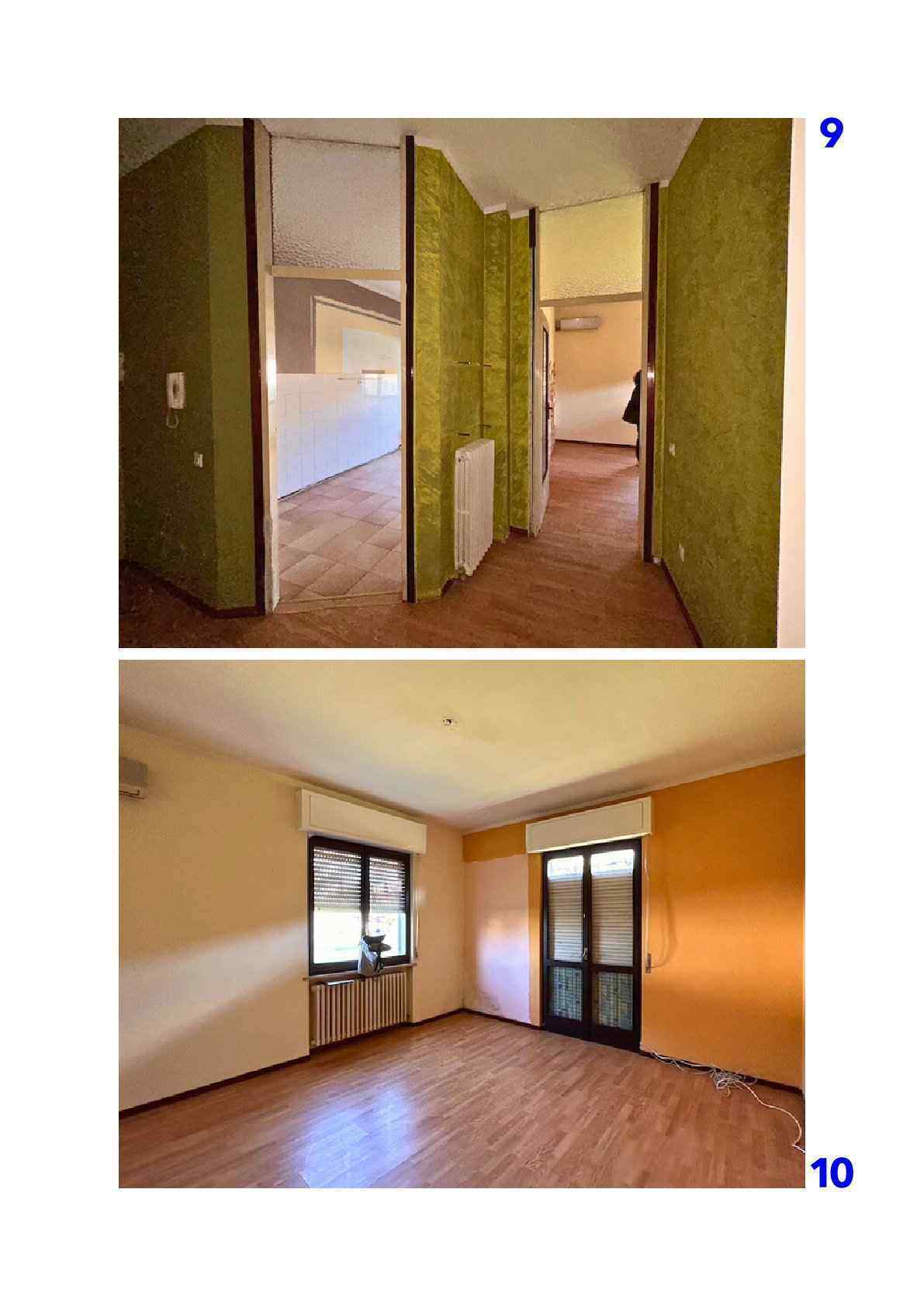 Appartamento composto da ingresso, cucina, soggiorno, disimpegno, due camere, bagno, ripostiglio, due balconi oltre a autorimessa esterna situato all'interno di una palazzina condominiale di tre piani fuori terra complessivi, priva di ascensore, circondata da ampio giardino