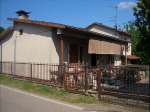 Piena proprietà di un fabbricato ad uso civile abitazione unifamiliare posta su P.T. e P.Rialzato/P.1°, in discreto stato di manutenzione e conservazione, con annesso garage (ai lati strutture precarie, abusive e non sanabili), ed area cortiliva/prato, esso trovasi ubicato su una striscia di terreno posta tra la Via F.lli Cervi ed un piccolo scolo consorziale. Occupato senza alcun titolo. Da liberare al trasferimento a cura della procedura. Difformità, Vincoli e oneri come da Perizia e Avviso