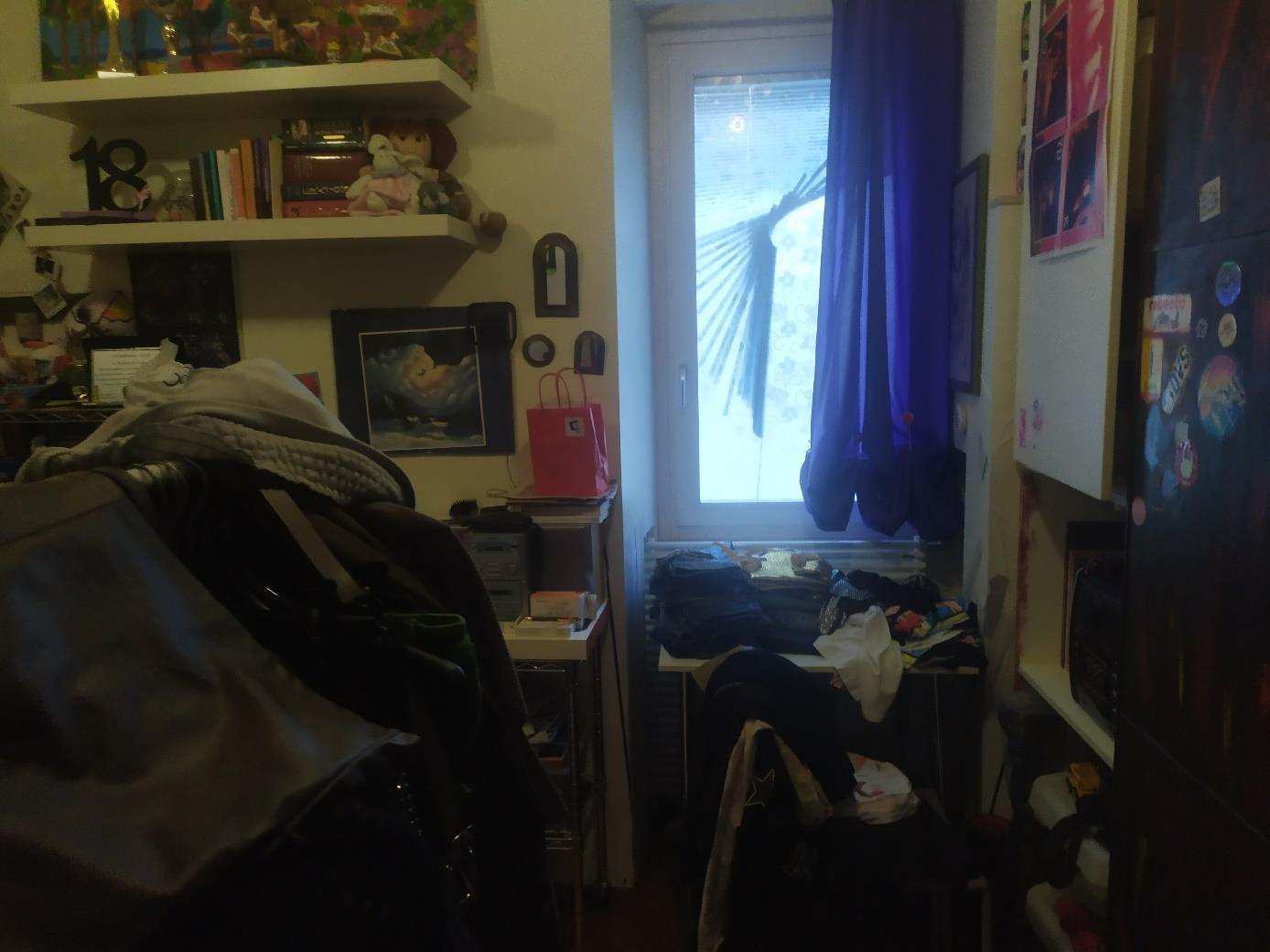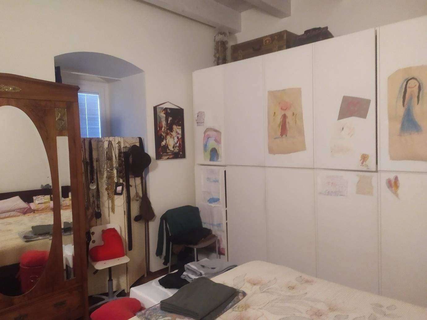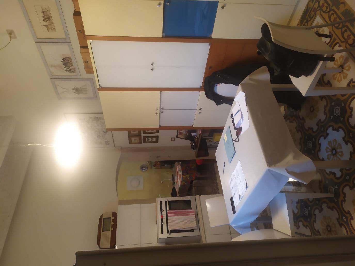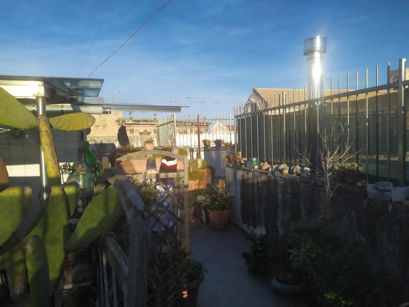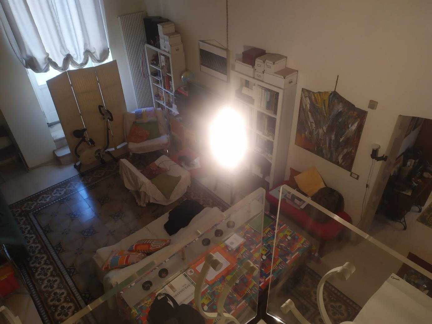 Alloggio su n. 2 livelli. Il primo, ubicato al secondo livello è costituito da una cucina, dalla quale si accede direttamente ad un soggiorno munito di balcone. Dal soggiorno immediatamente a sinistra di chi accede vi è un corridoio che serve la zona notte, costituita da n. 1 bagno, n. 1 cameretta e n. 1 camera da letto matrimoniale con cabina posta al culmine del corridoio. Dal soggiorno, tramite una scala metallica è possibile accedere al livello superiore dove si giunge sulla terrazza