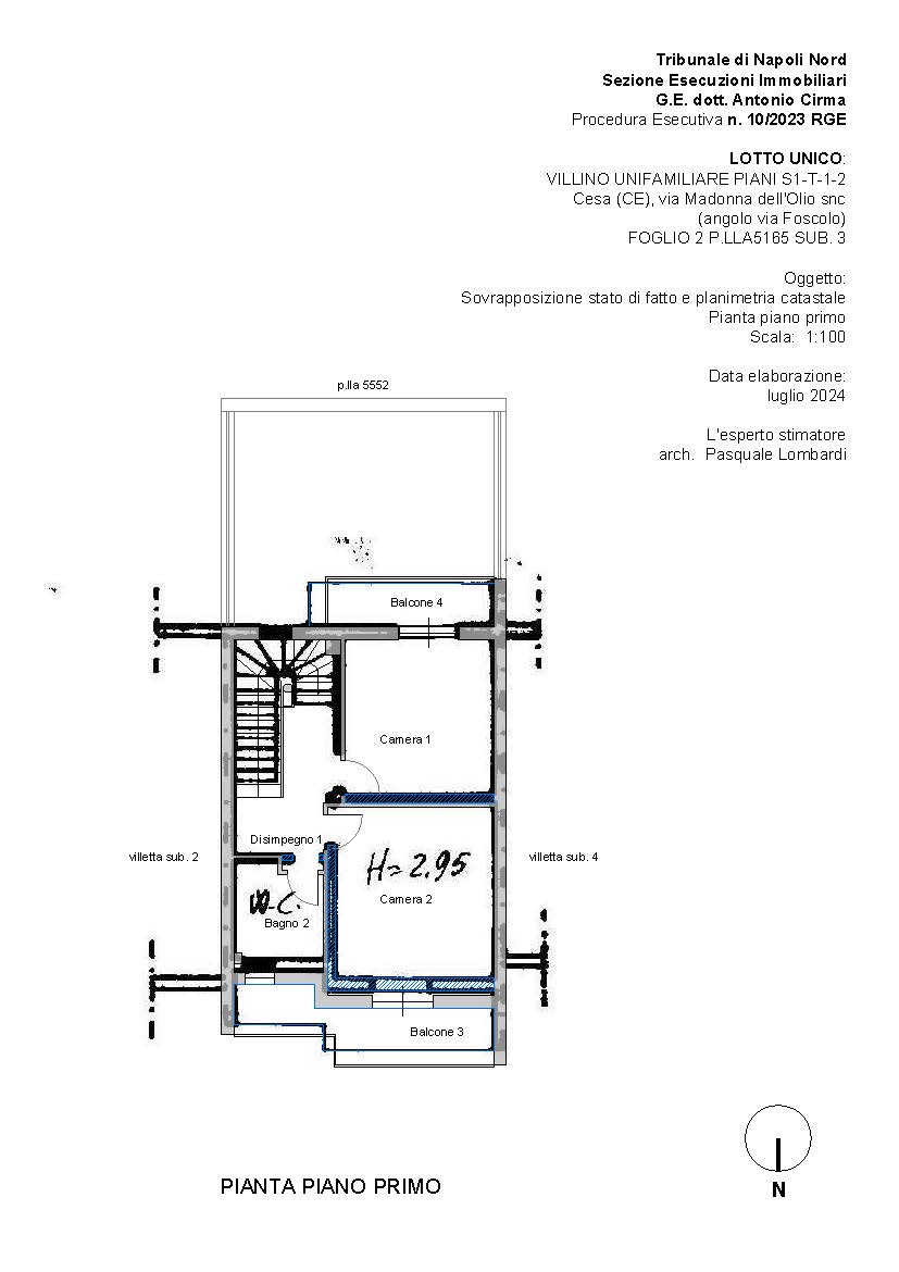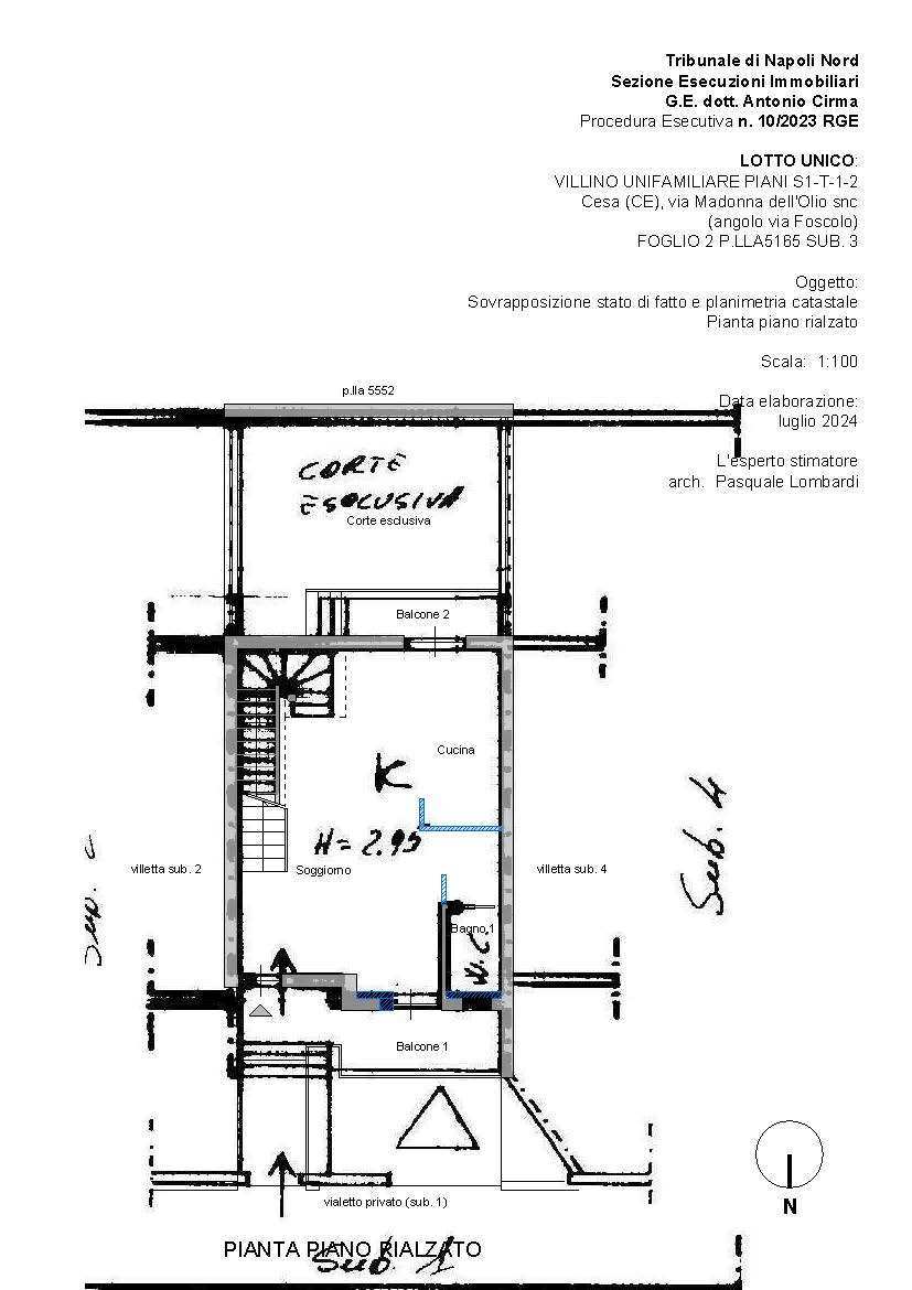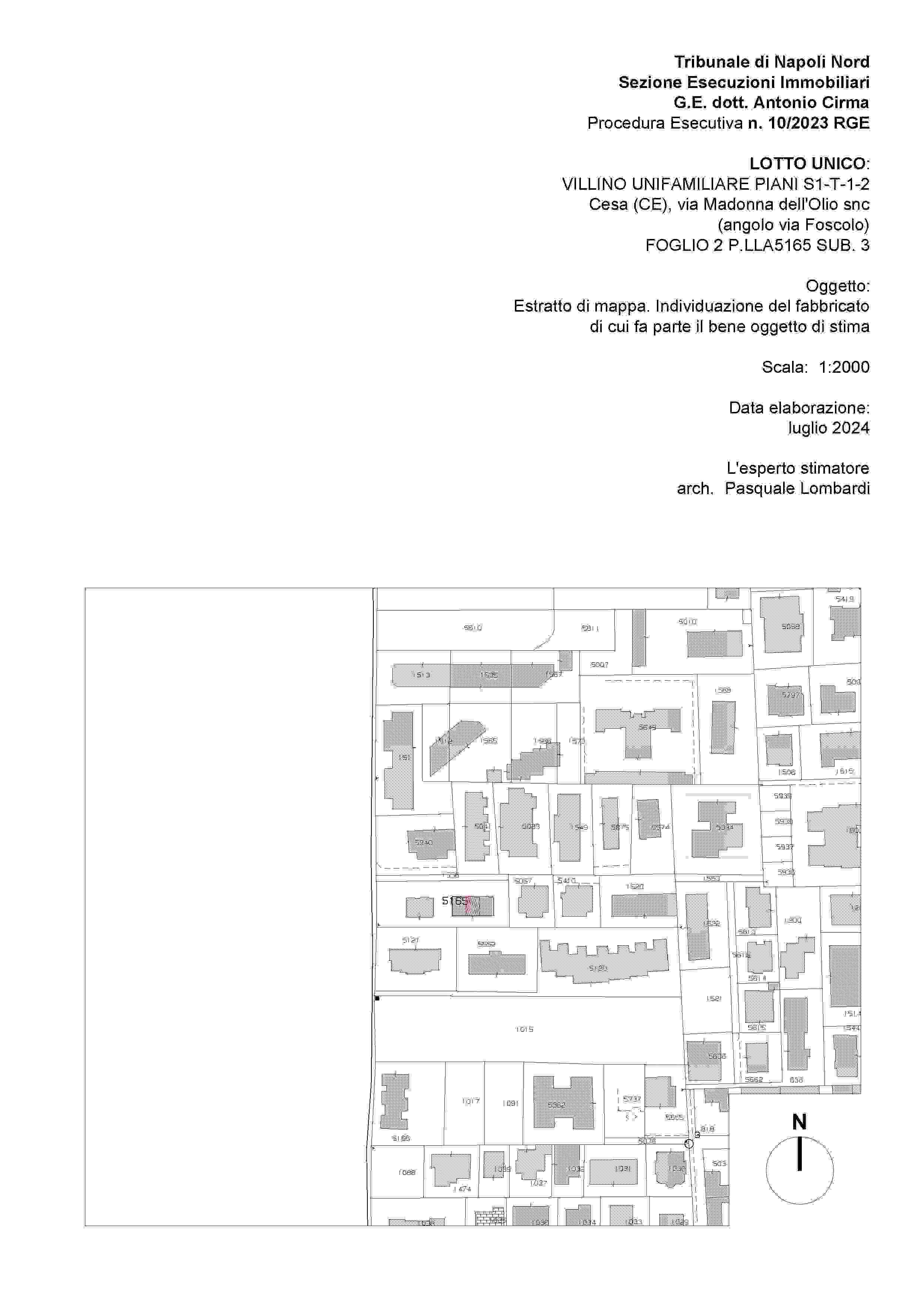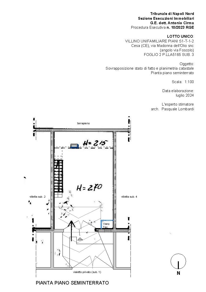 LOTTO UNICO: PIENA ED INTERA PROPRIETÀ DI VILLINO UNIFAMILIARE, FACENTE PARTE DI UN PICCOLO COMPLESSO DI VILLINI A SCHIERA SITO NEL COMUNE DI CESA (CE) ALLA VIA MADONNA DELL’OLIO SNC AD ANGOLO CON VIA UGO FOSCOLO. SI ARTICOLA IN UN LIVELLO SEMINTERRATO E TRE LIVELLI FUORI TERRA.