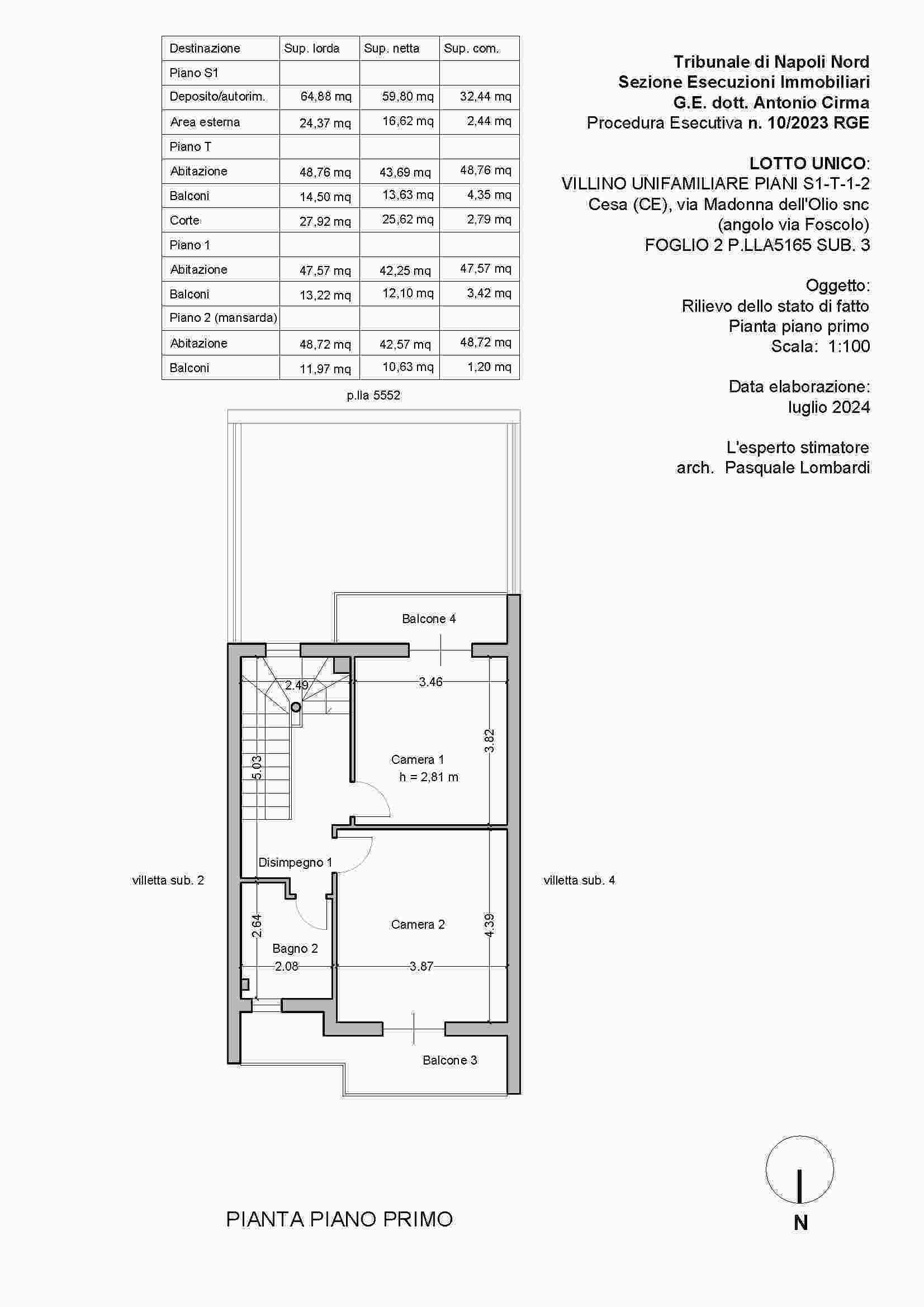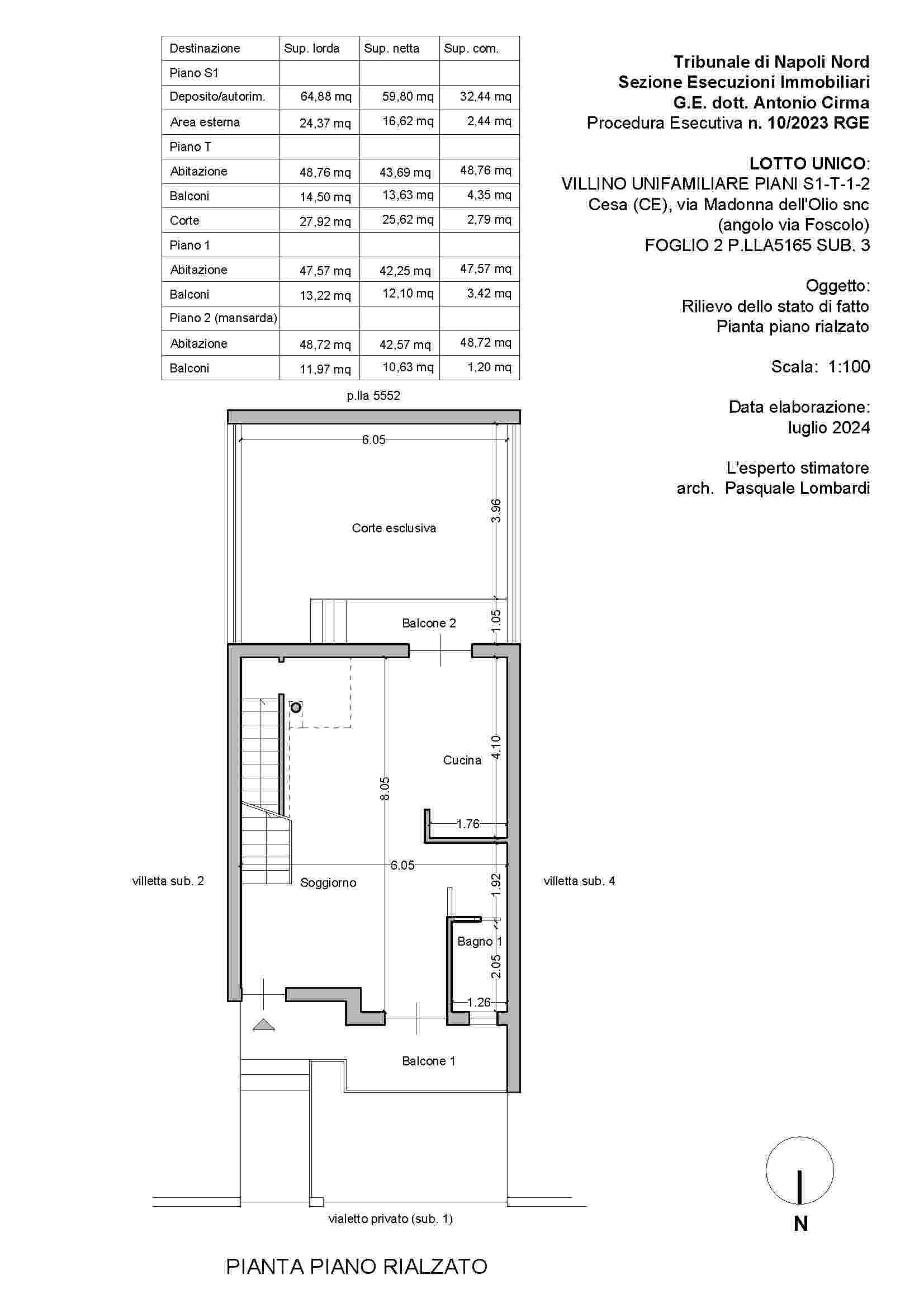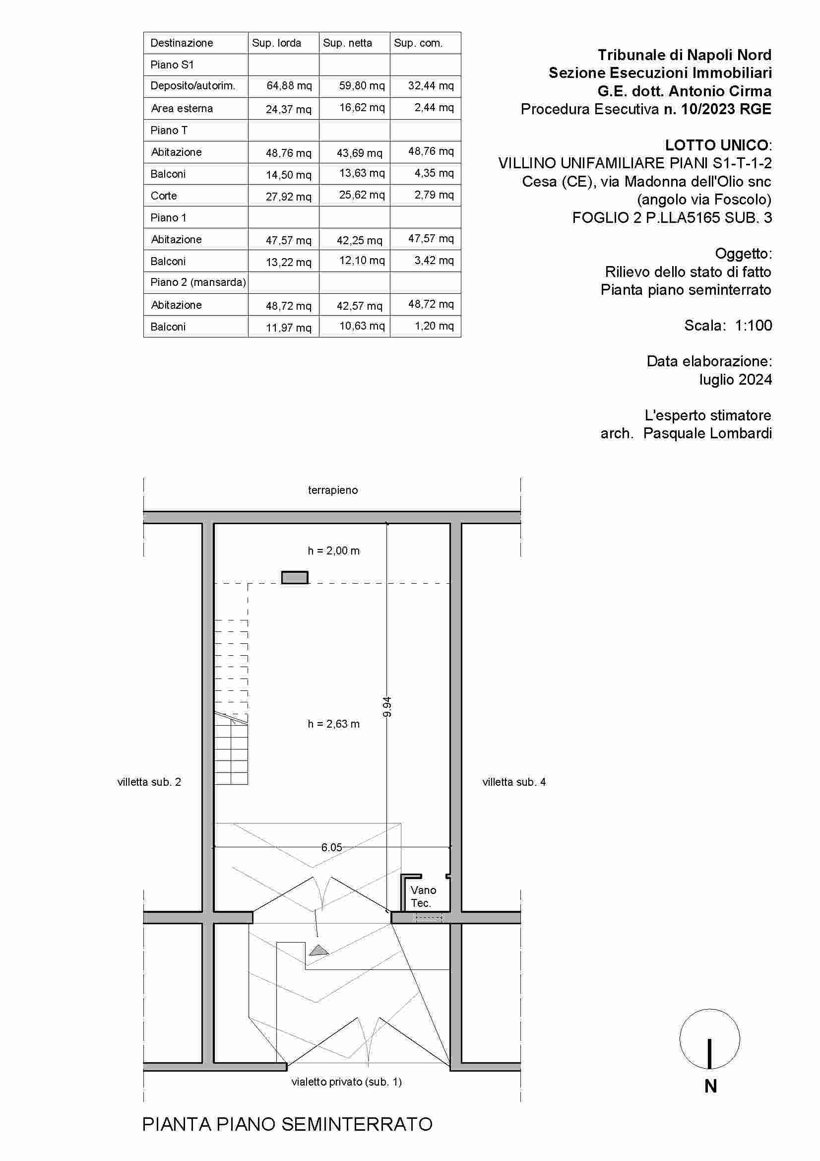 LOTTO UNICO: PIENA ED INTERA PROPRIETÀ DI VILLINO UNIFAMILIARE, FACENTE PARTE DI UN PICCOLO COMPLESSO DI VILLINI A SCHIERA SITO NEL COMUNE DI CESA (CE) ALLA VIA MADONNA DELL’OLIO SNC AD ANGOLO CON VIA UGO FOSCOLO. SI ARTICOLA IN UN LIVELLO SEMINTERRATO E TRE LIVELLI FUORI TERRA.