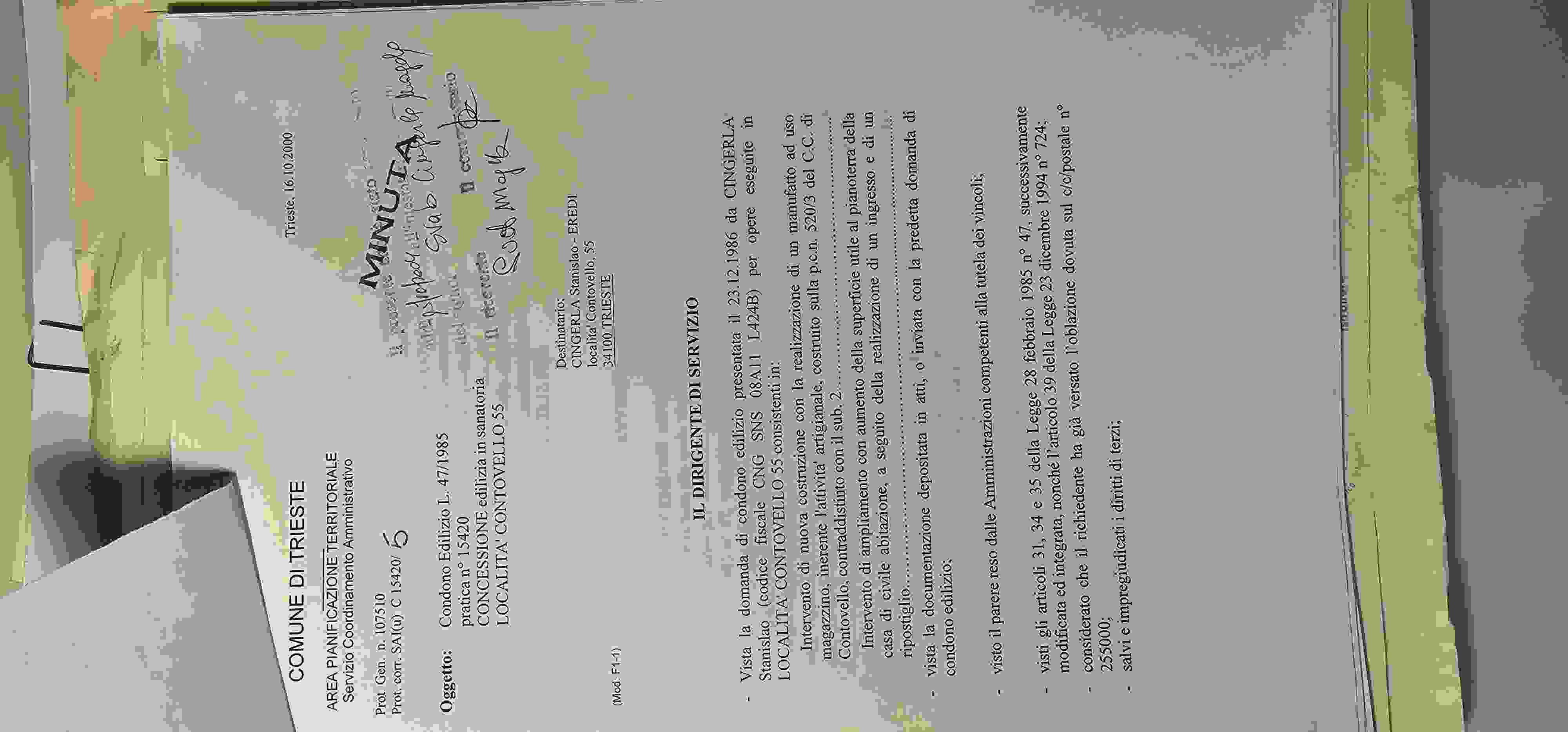 Fabbricato residenziale unifamiliare sito in Località Contovello n. 55 a Trieste.L’edificio si sviluppa su due piani fuori terra. Il piano terra è composto da un atrio, un vano doccia-wc con finestra, un vano cucina/soggiorno. Il primo piano è composto dal corridoio e da due stanze di 15,90 mq e di 12,60 mq. L’alloggio risulta avere una metratura di 103,18 mq.