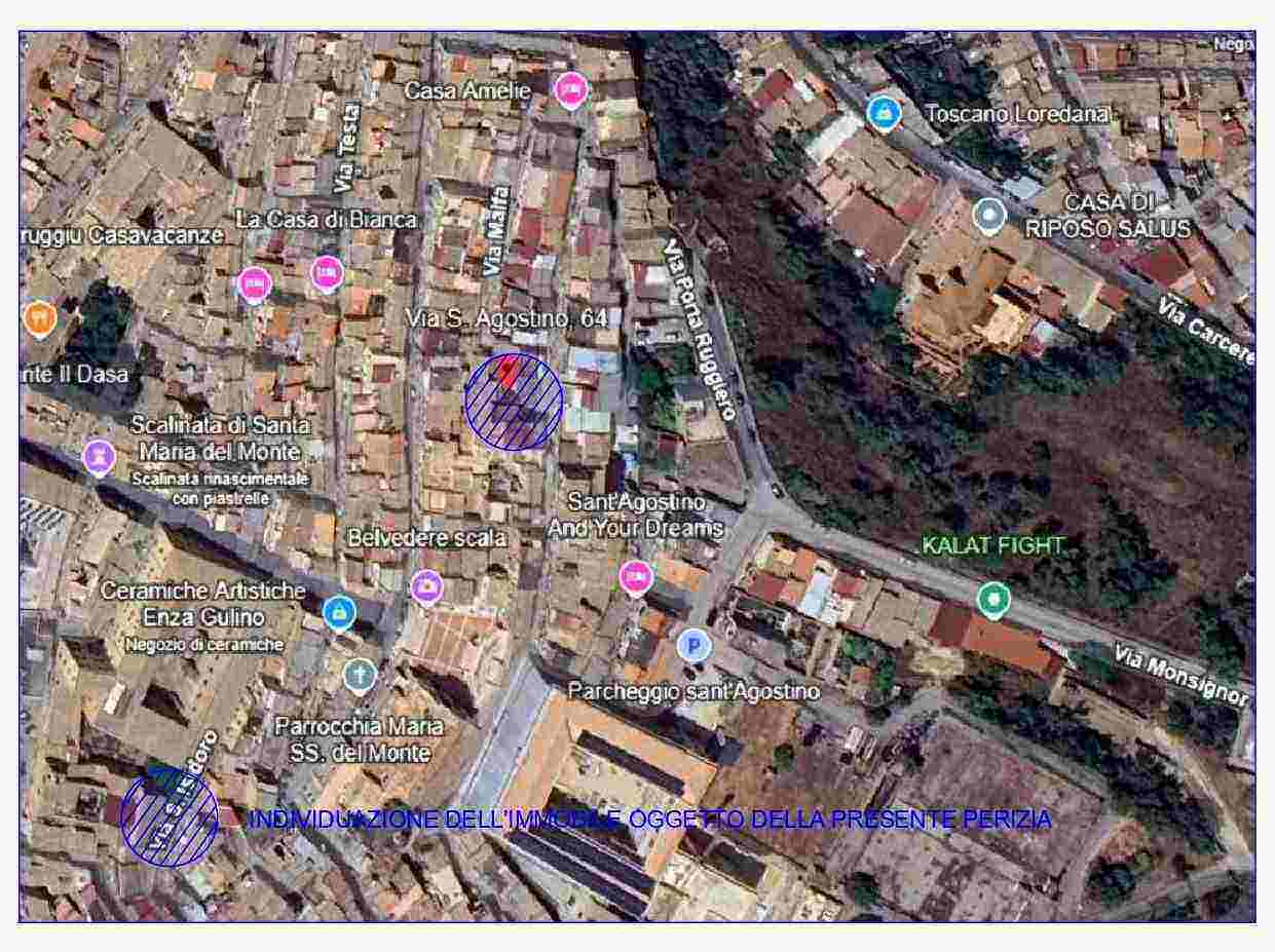 Fabbricato per civile abitazione, sito nel Comune di Caltagirone, Via Sant’Agostino n. 64-66 e 72 costituito di tre elevazioni fuori terra, è composto da piano terra, piano primo e piano secondo con accesso principale al fabbricato dalla via Sant’Agostino 72, che risulta essere il piano primo, distinto al NCEU del detto Comune al foglio 87, p.lla 495, sub. 5, piani T, 1 e 2, cat. A/4, classe 6, vani 7, R.C. 224,14. L’immobile è provvisto di attestato APE: Classe Energetica G.