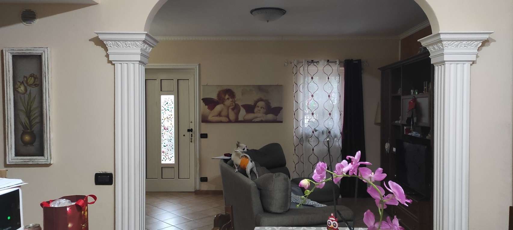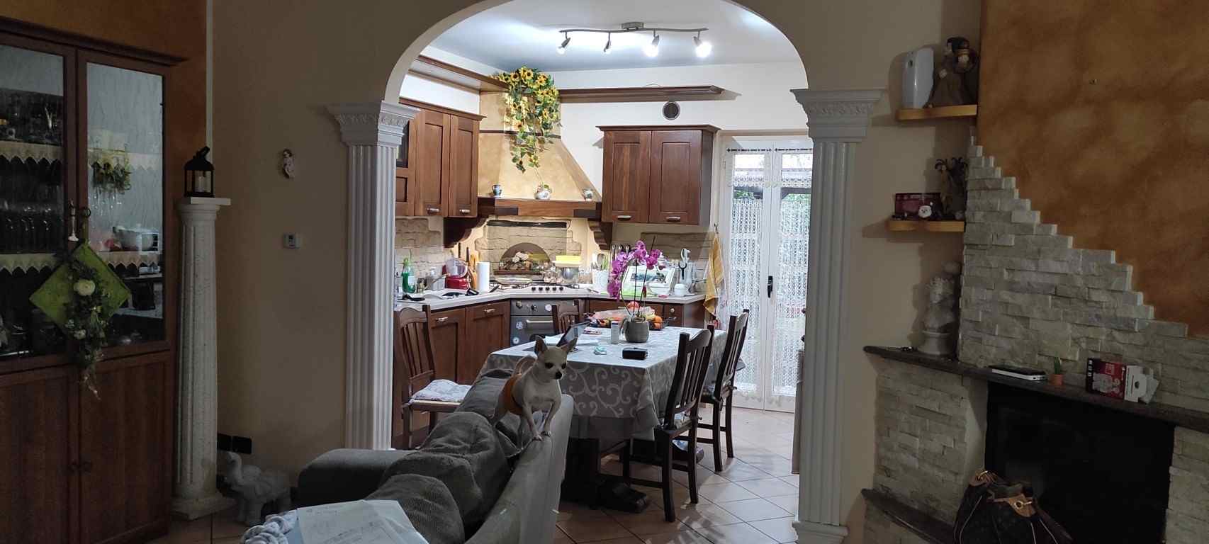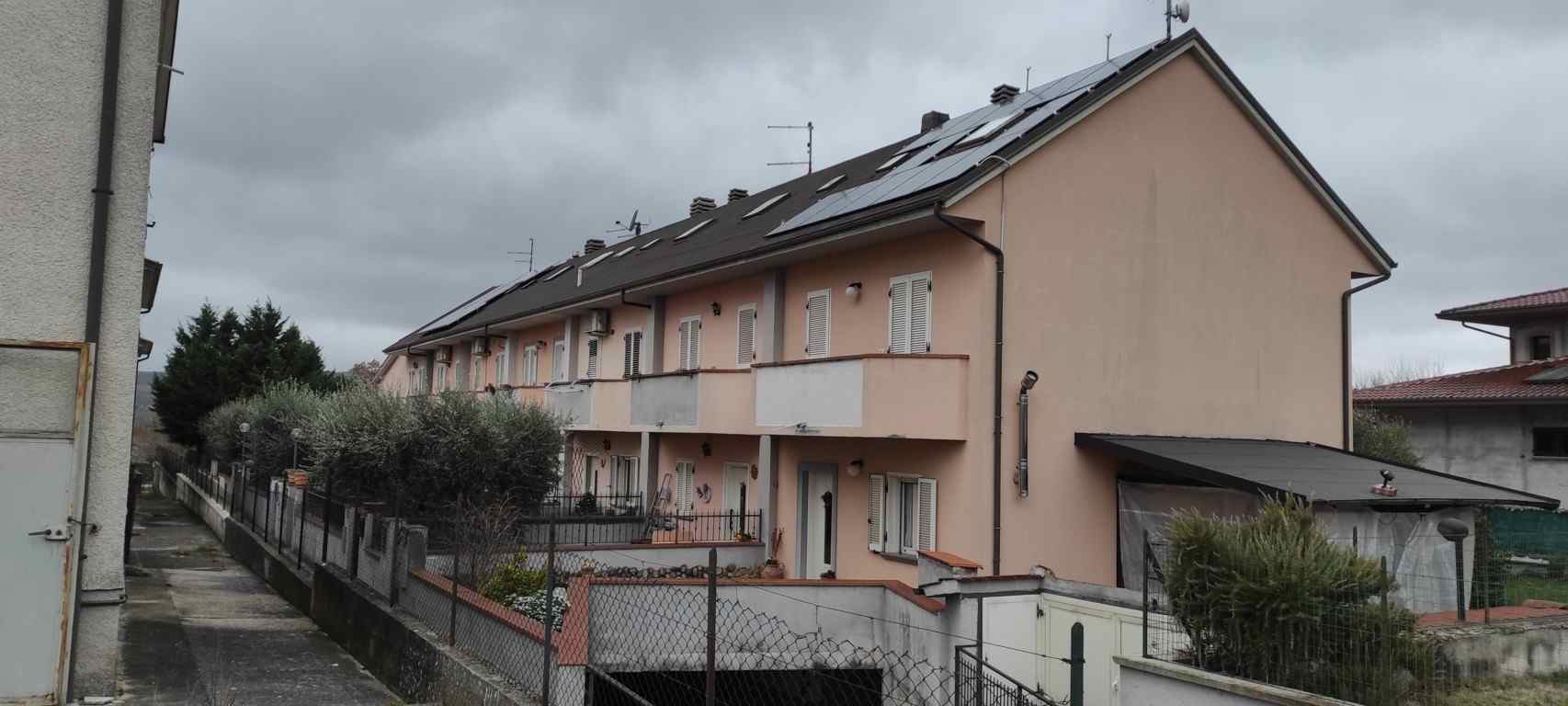 Unità immobiliare libera, facente parte di un fabbricato a schiera di fine anni 90, su quattro livelli collegati da scala interna, comprendente: garage al piano 1°sottostrada accessibile da corsia carrabile di uso condominiale; porzione di appartamento al piano terreno con ingresso, soggiorno, cucina, bagno, area scoperta recintata con lastrico e giardino sul fronte e sul retro; porzione di appartamento al piano primo con due camere, disimpegno, bagno e due balconi; soffitta con due locali sottotetto.