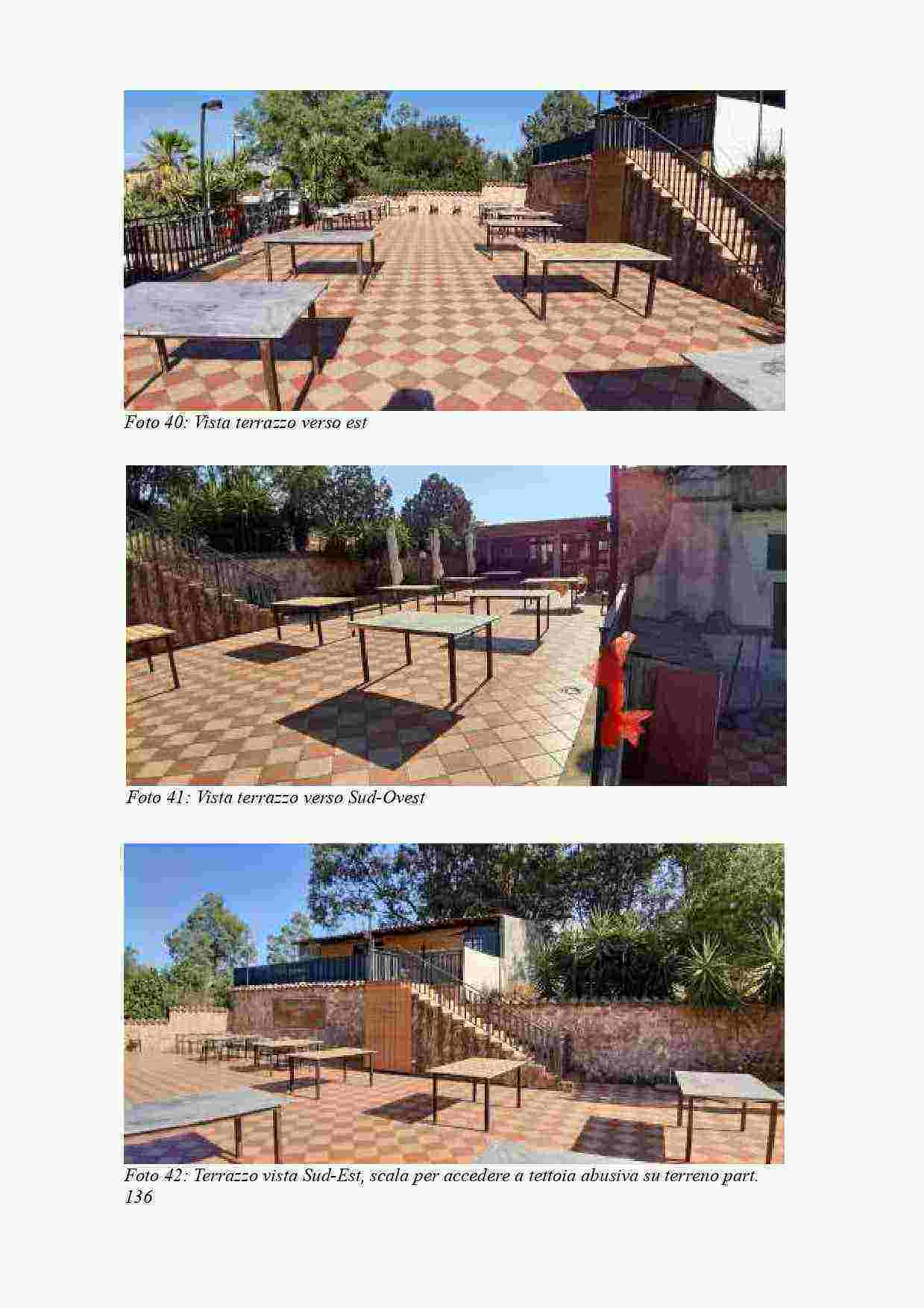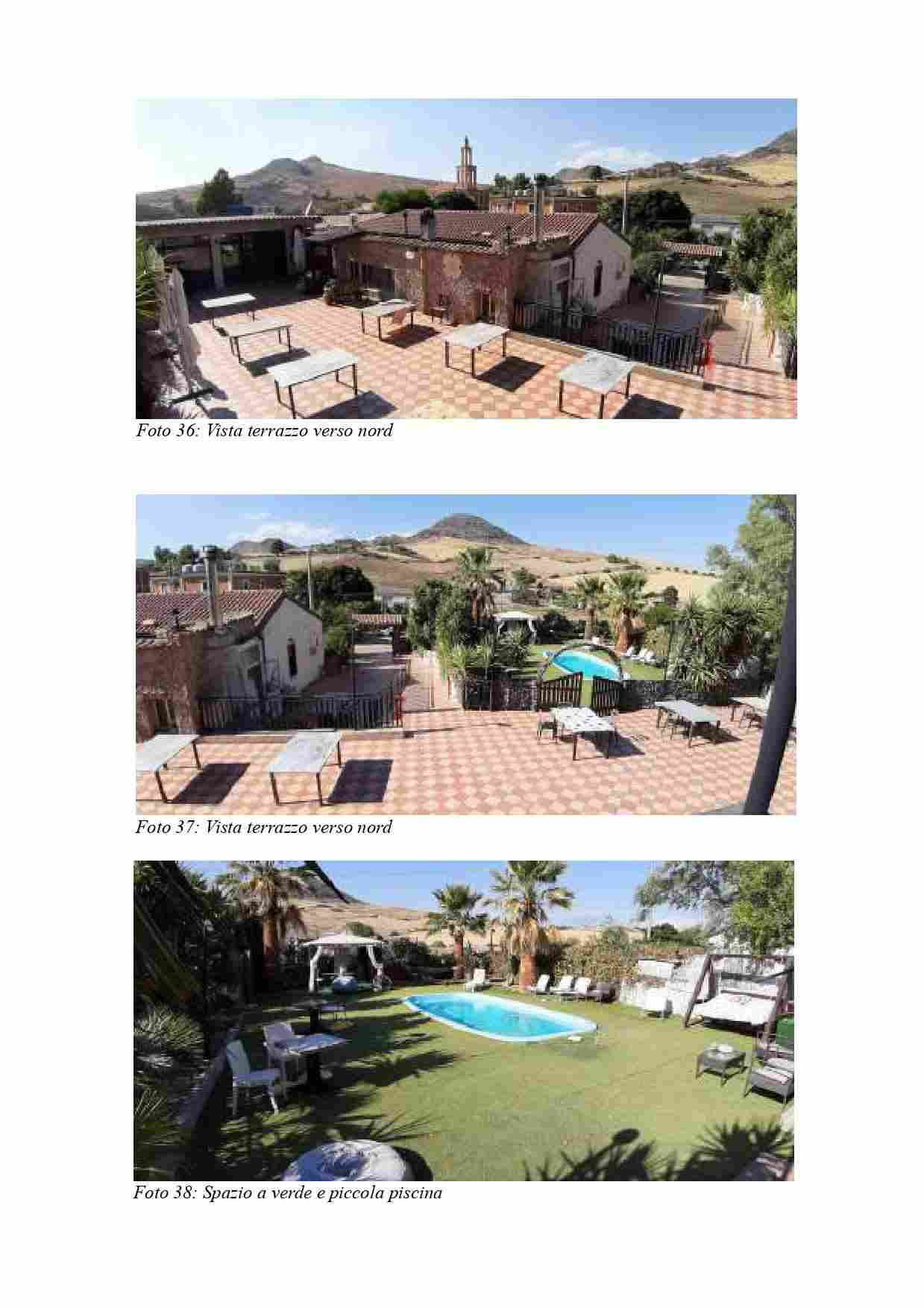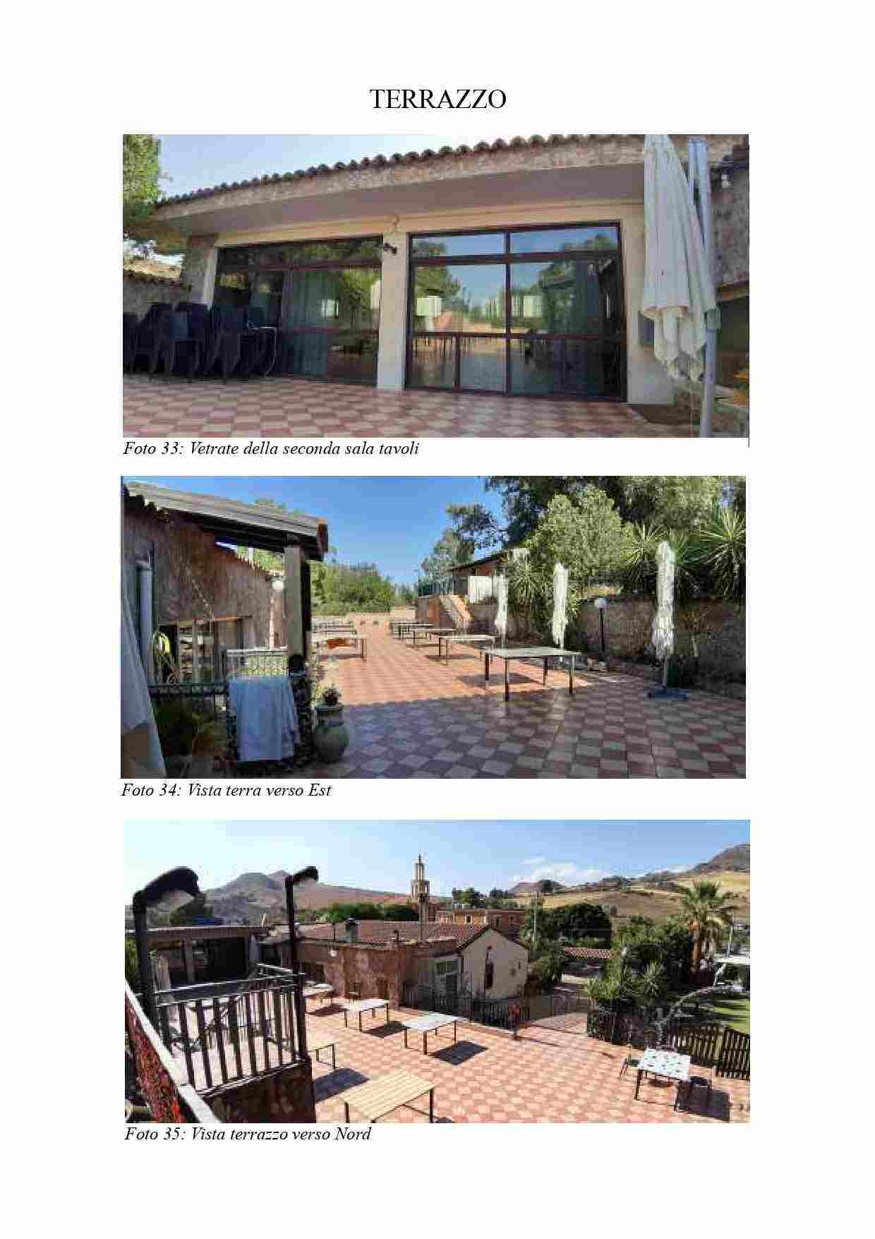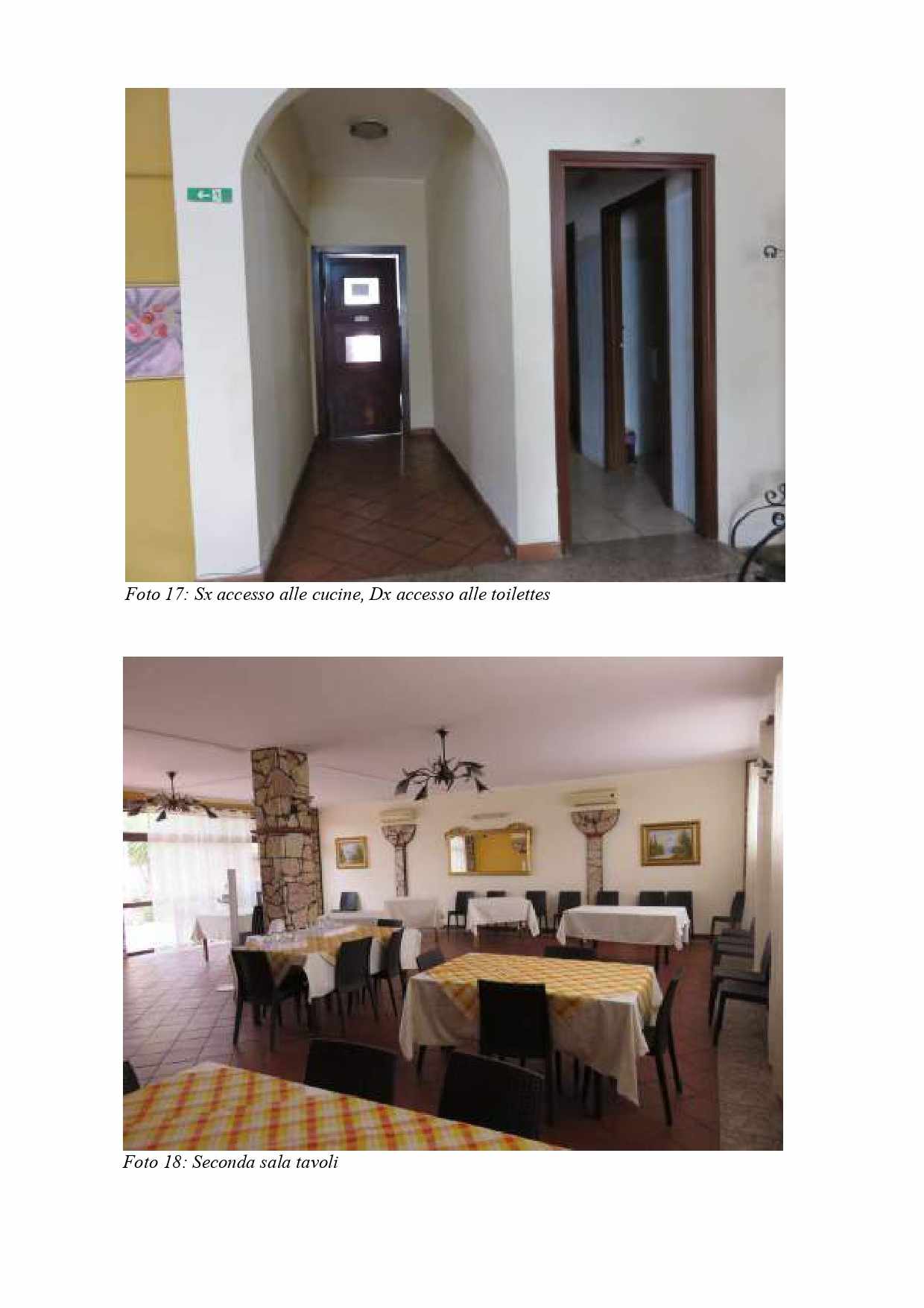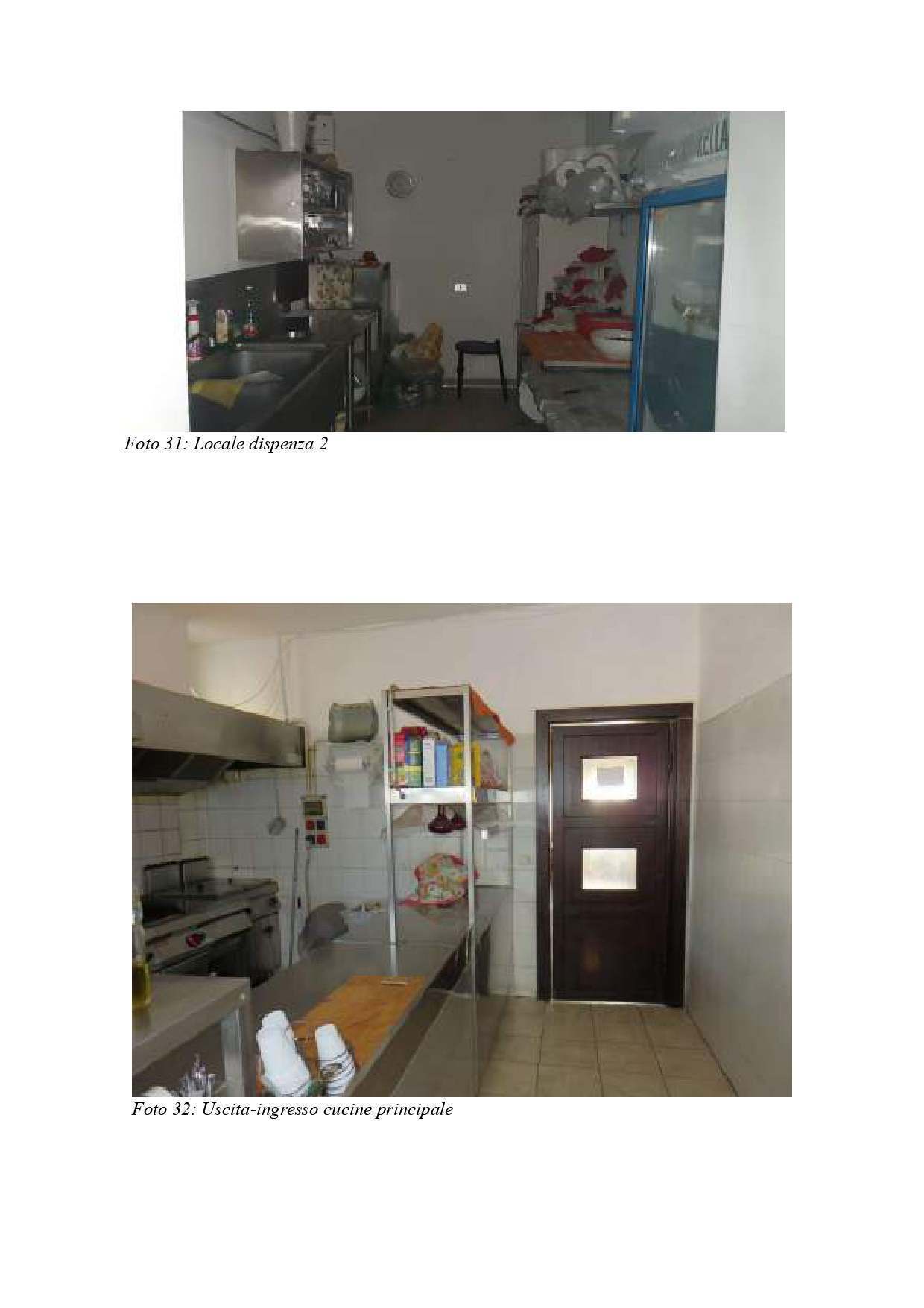 Fabbricato in Castel di Iudica fraz. Borgo Franchetto, al Cat. Fg. 41 part. 137 sub 2, C/1, Cl. 1, p T, destinazione d'uso attività di ristorazione, con Sala 1 di mq 60,77 h m 3,60, verso sud la Sala 2 di mq 92,49 e hm 3,00, disimpegno di mq 3,36, due servizi igienici, corridoio di mq 4,19 da cui si accede alle cucine e alle due sale di lavorazione attrezzate, due vani, due dispense, a est una porta a vetrate da cui si accede al terrazzo di mq 293.