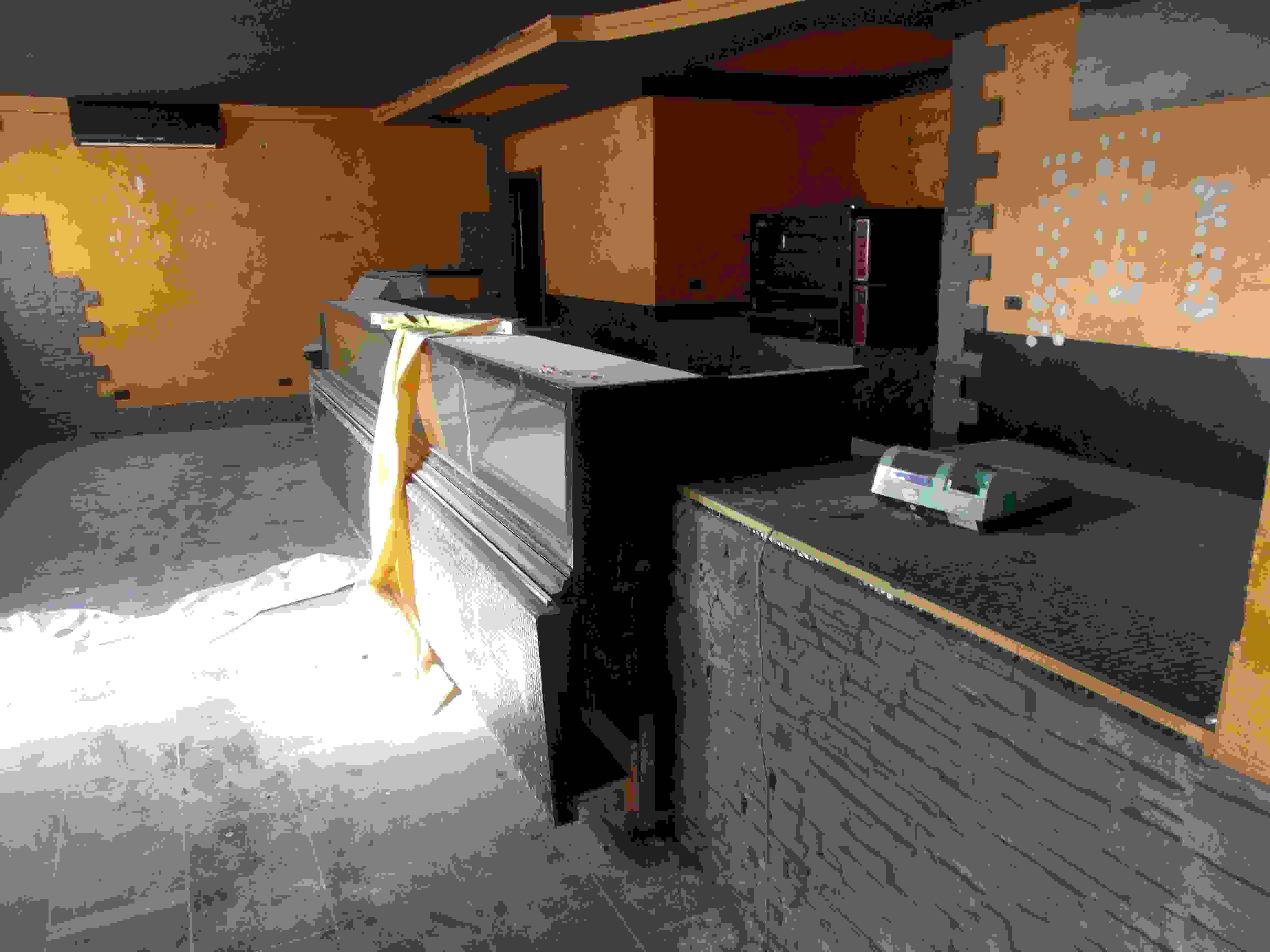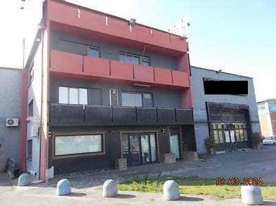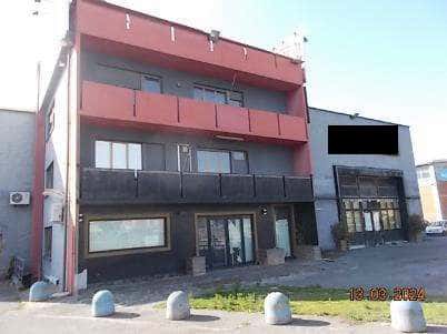 Edificio: - appartamento al p. secondo composto da disimpegno, soggiorno, cucina, due camere, bagno, balcone; - cantina (con bocca di lupo) al p. primo sottostrada; - ripostiglio (con bocca di lupo) al p. primo sottostrada; - ufficio al p. primo composto da disimpegno due locali (con due accessi separati dal pianerottolo comune), antibagno, bagno; - ingresso, locale vendita, antibagno, bagno, con disimpegno, retrostante locale bar, altro antibagno e bagno; - cabina di trasformazione elettrica (ENEL)