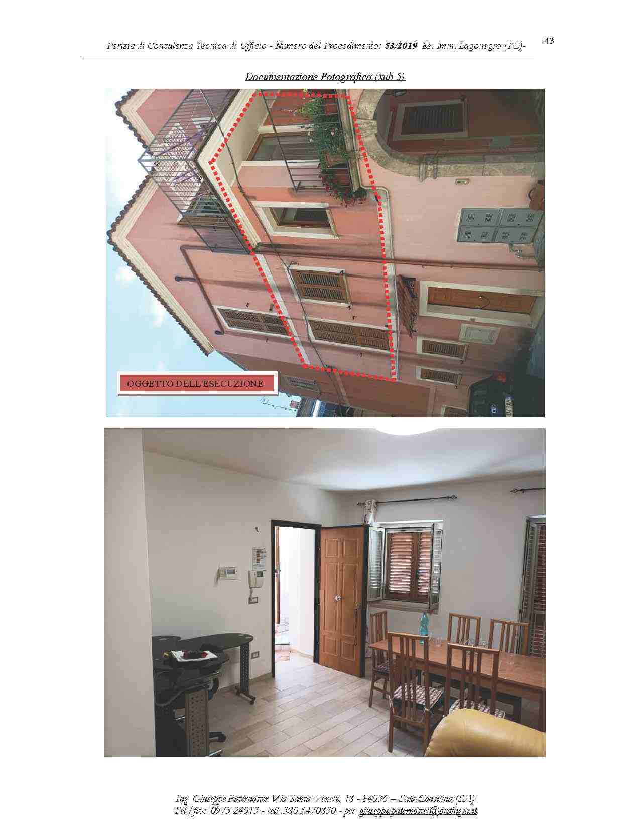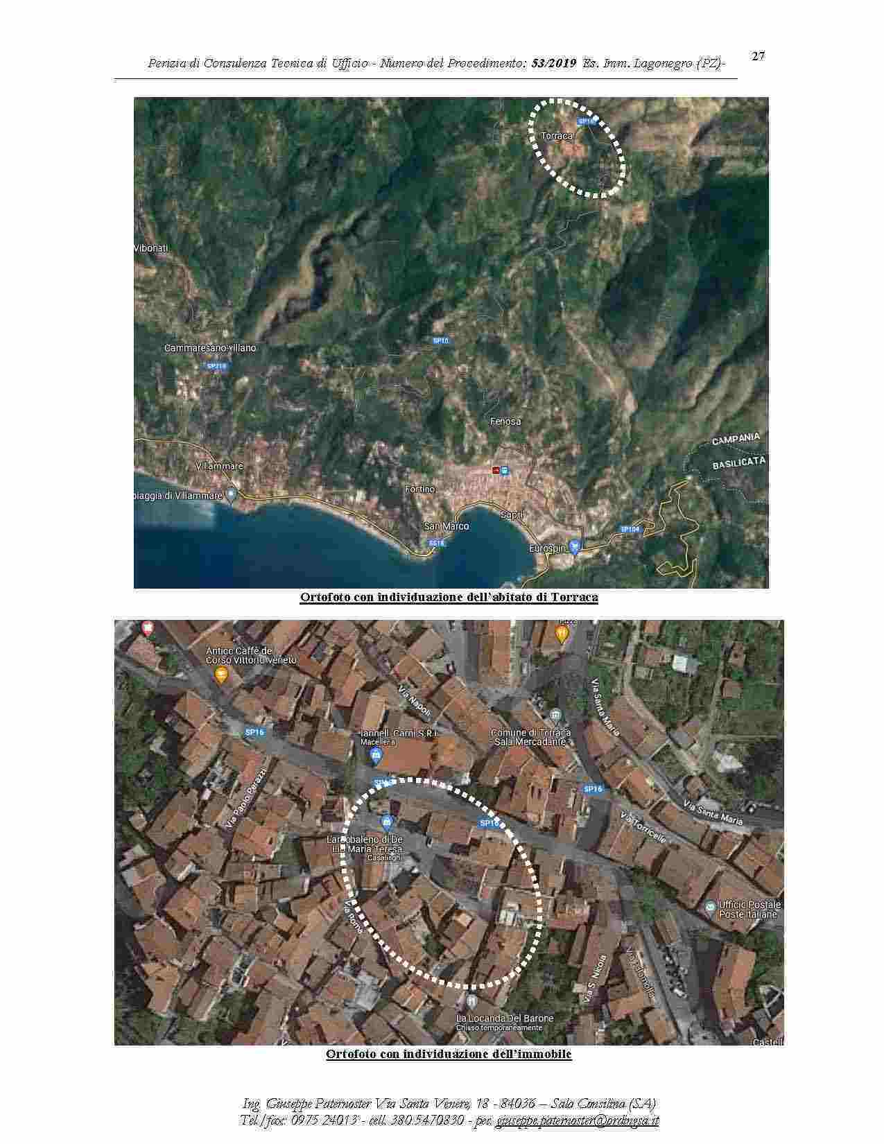 Piena proprietà (1/1) di Immobile sito in Torraca (SA), ubicato in Piazza Olmo (Piazza IV Novembre) n. 10, e, ubicato al piano 1°. L'immobile risulta accessibile esclusivamente tramite scala esterna e ballatoio che insistono su particelle catastali distinte (rispettivamente particelle n. 312 e n. 311) non oggetto di pignoramento. Spetterà all’aggiudicatario agire in giudizio per ottenere la costituzione o l’accertamento della servitù di passaggio per accedere allo staggito che è intercluso.