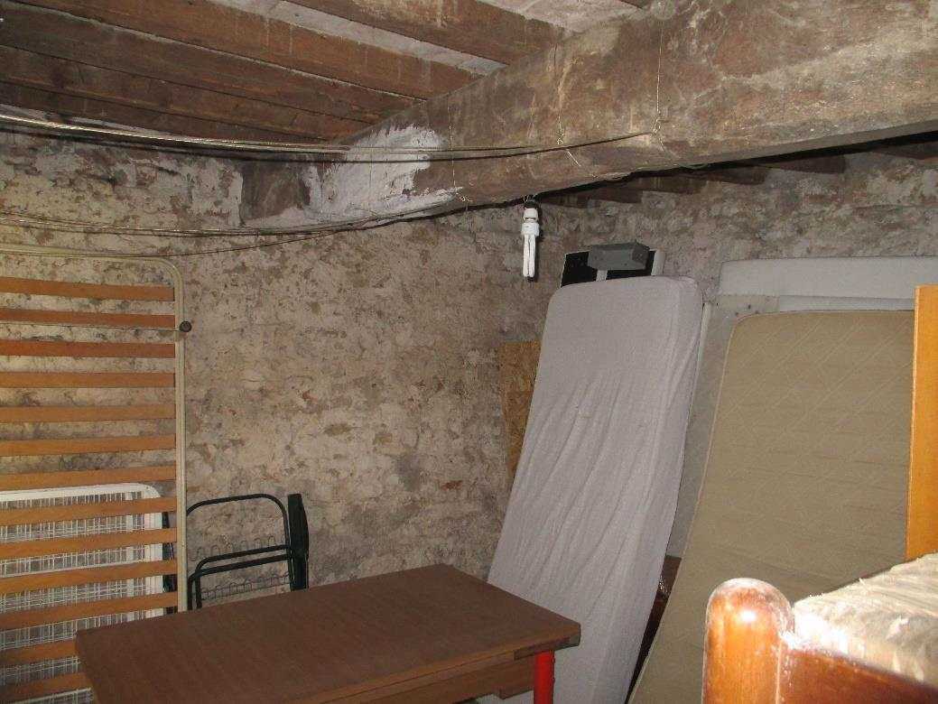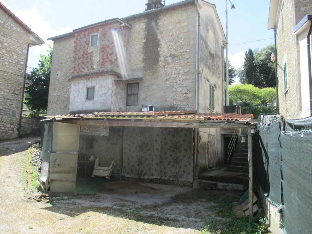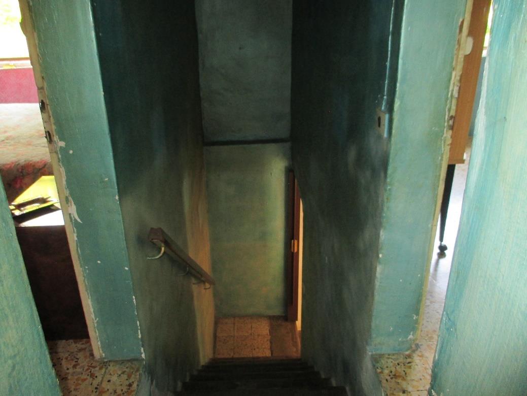 Piccolo fabbricato residenziale da cielo a terra costituito da appartamento ai piani terra (composto da ingresso-cucina, salotto, bagno e ripostiglio sottoscala ) e primo (composto da due camere e bagno oltre la scala di accesso al piano) e piano seminterrato della superficie complessiva di mq 39,70, al quale si accede dalla corte, costituito da due fondi e una intercapedine usata come ripostiglio oltre rata di terreno circostante adibita a corte pertinenziale esclusiva.