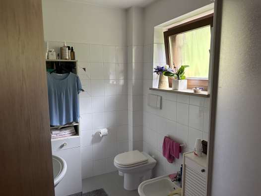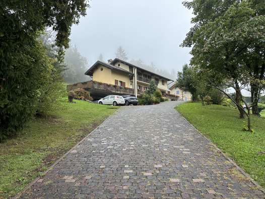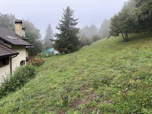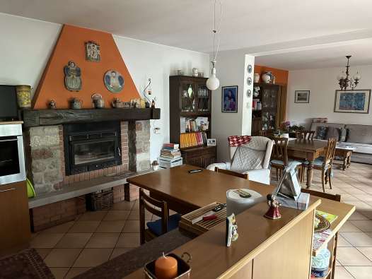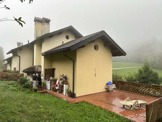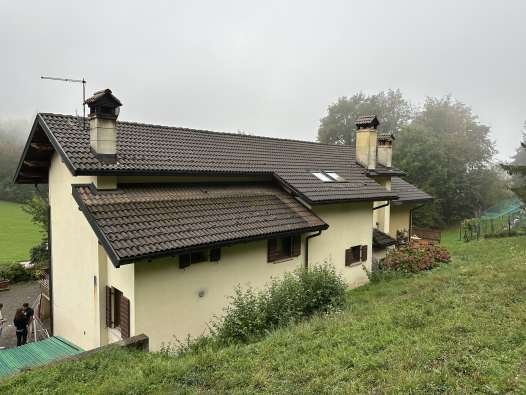 Fabbricato ad uso residenziale con garage e zona porticata per la sosta coperta delle autovetture interrato, zona giorno al piano terra e zona notte su tutto il piano primo e all’estremità Ovest del piano terra. Il giardino, comprese le aree boscate, di esclusiva pertinenza si sviluppa su una superficie di circa 7.750 mq e vi si accede direttamente dalla strada pubblica con la quale confina lungo il lato Sud. L’immobile risulta occupato dal debitore.