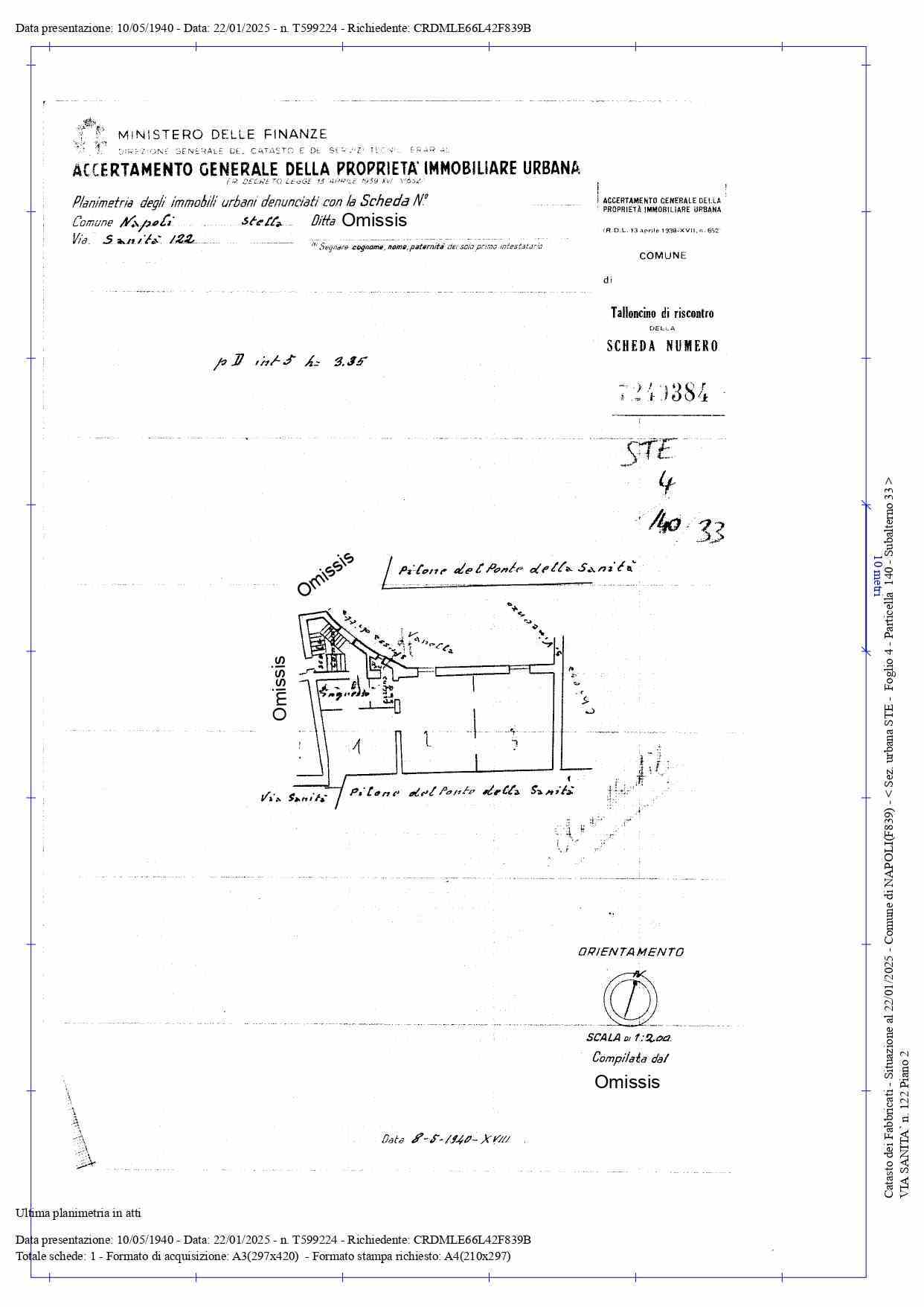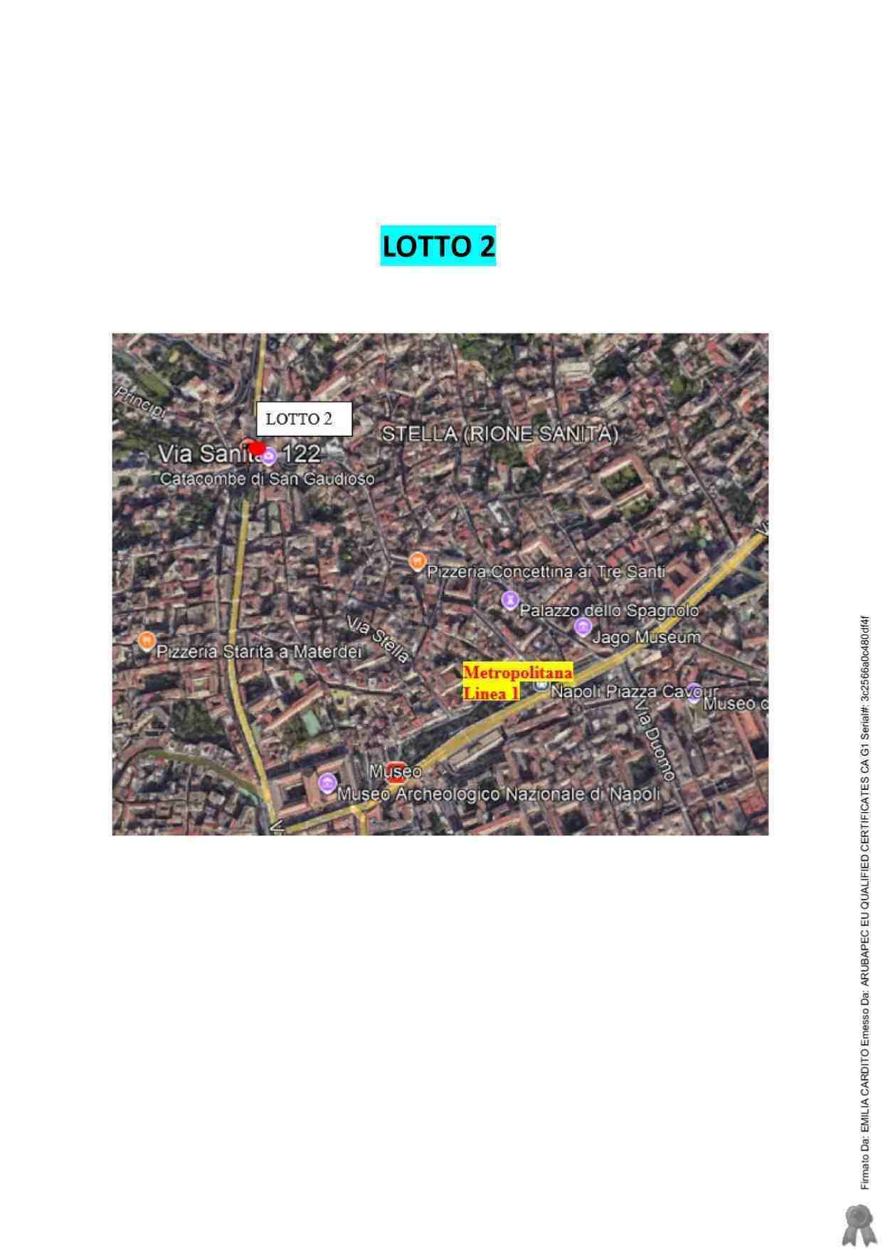LOTTO 2: Piena ed intera proprietà di immobile destinato a residenza – A/4 - ubicato in Napoli alla via Sanità n. 122 Piano terzo. L’immobile de quo si compone di 3 vani principali, un disimpegno d’ingresso e un Vano WC Si rileva per l’immobile un’altezza di metri 3,35.