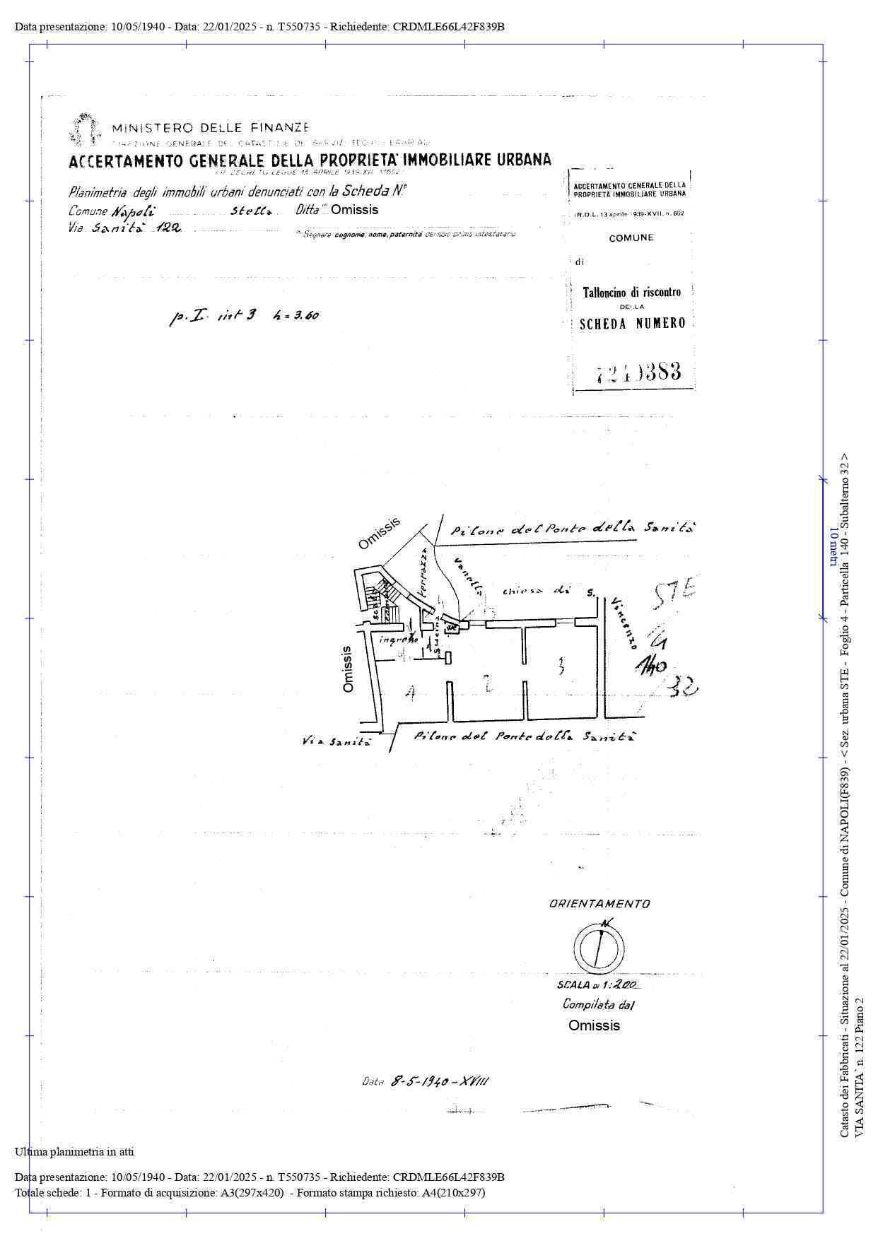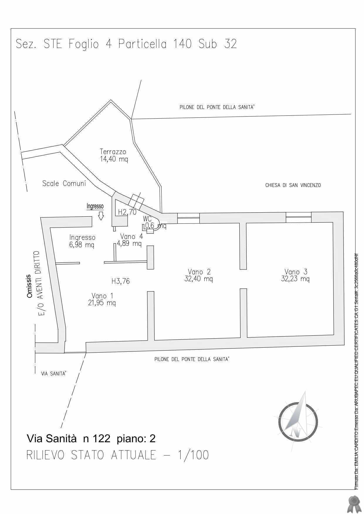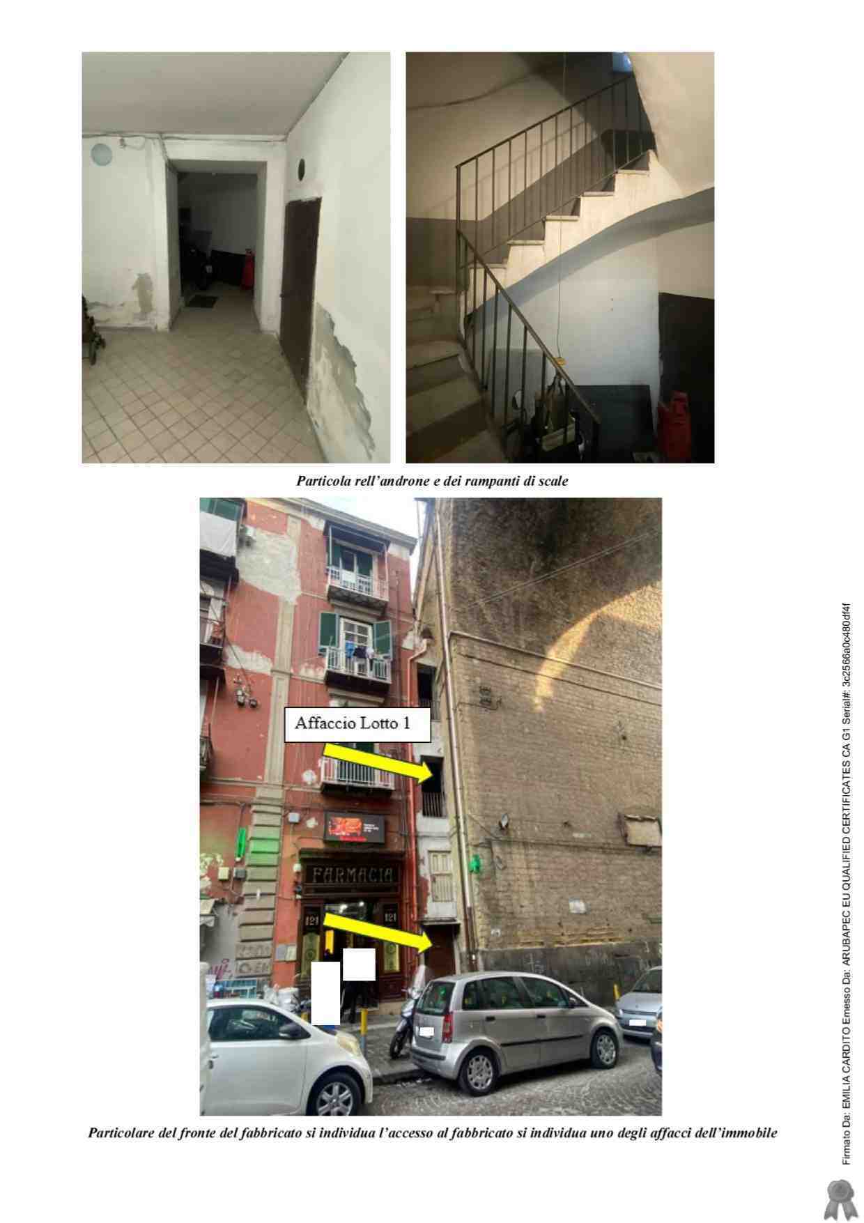 LOTTO 1: Piena ed intera proprietà di immobile destinato a residenza – A/4 - ubicato in Napoli alla via Sanità n. 122 Piano secondo. L’immobile de quo si compone di 4 vani principali, un disimpegno d’ingresso, un servizio igienico e un terrazzino con affaccio su corte interna.