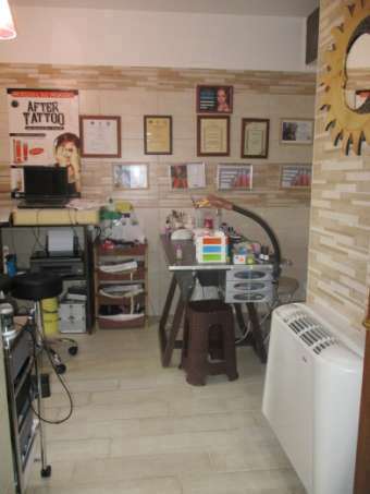 Appartamento al primo piano, costituito da un ampio soggiorno, una cucina abitabile, dalla quale si accede ad un ripostiglio, e una zona notte composta da una camera da letto matrimoniale, con annessa cabina armadio, una camera doppia, un bagno e un locale di servizio, adibito a laboratorio. La superficie commerciale, compresa la quota di superficie scoperta, è pari a 176,05 mq.