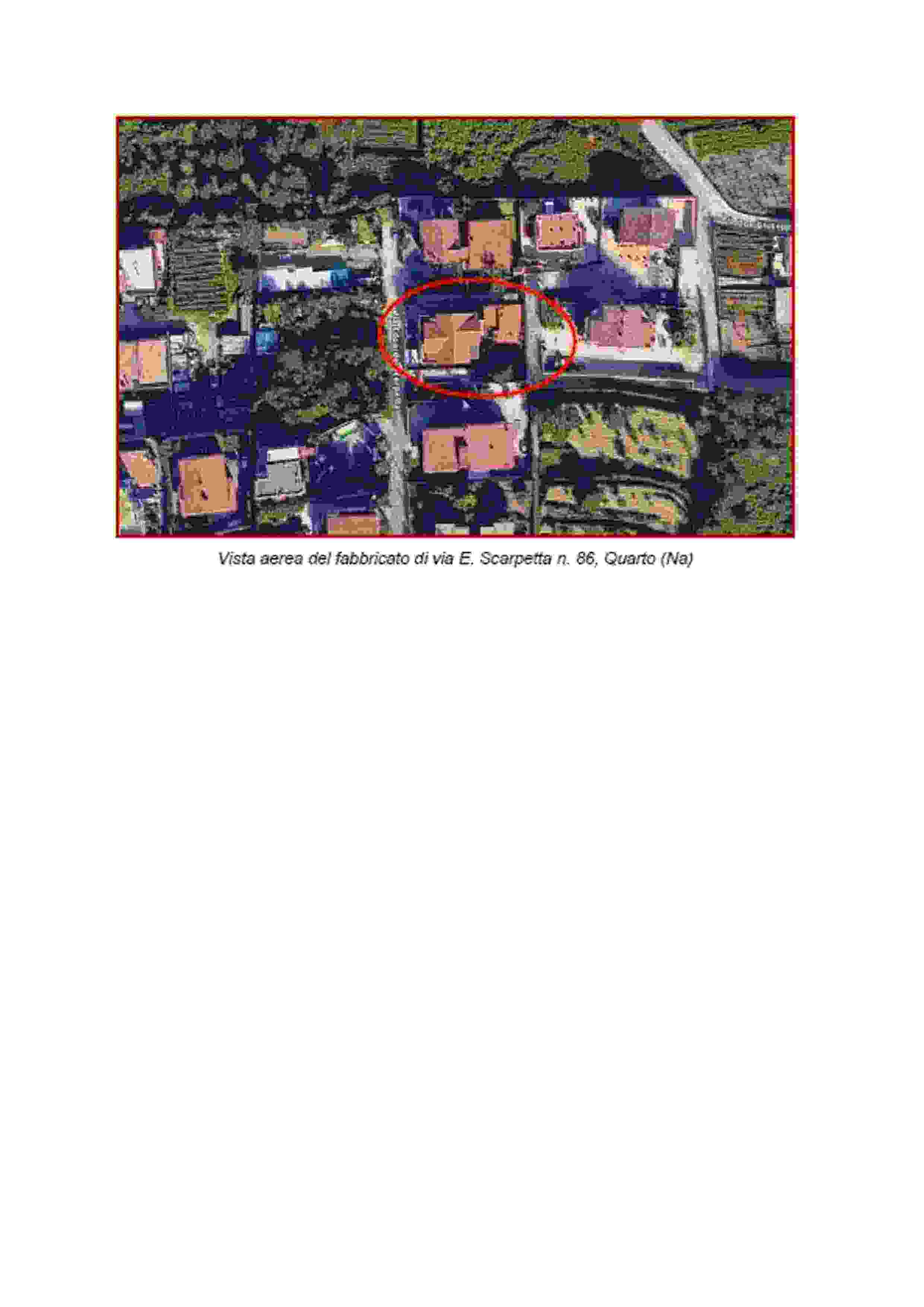 Fabbricato per civili abitazioni sito in Quarto alla via E.Scarpetta 86 composto da piano primo, in condizioni di abbandono, privo di finiture e impianti e di quota-parte delle partizioni, interne ed esterne, censito in C.F. al foglio 16, p.lla 767, subb 5 e 6, cat. A2, da frazionamento nel 2015, dell’originario sub 3, oltre al piano sottotetto sull’originario lastri.del fabbricato censito in C.F. al foglio 16, p.lla 767, sub 4, cat. F5, ivi incluso il diritto alla metà della pertinenziale corte esterna.