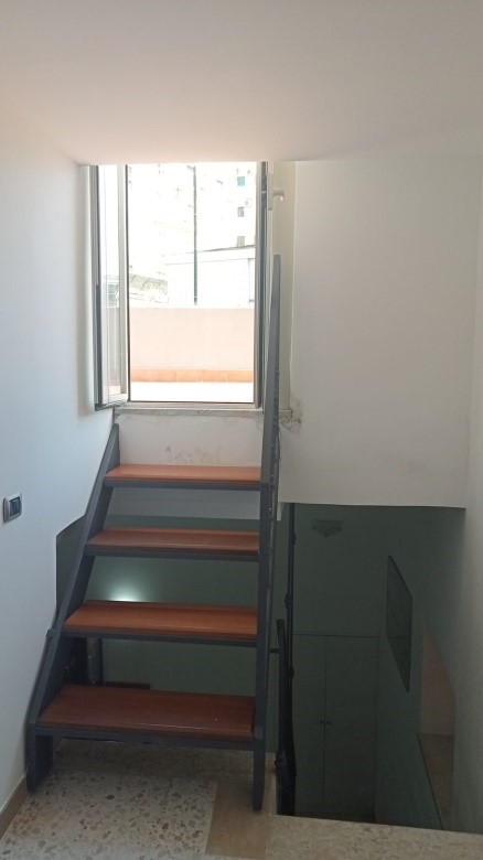 Immobile ad uso residenziale ai piani secondo e terzo. Composto da cucina, bagno e soggiorno, ove vi è scala che conduce al piano superiore. Lì so trovano due camere da letto e un bagno, oltre al terrazzo raggiungibile da una scala di n. 4 scalini e lastrico solare, per una superficie complessiva di mq. 119. Presenti abusi anche non sanabili. Vi è ordine di demolizione. Il bene è occupato dagli esecutati. Sarà liberato dal custode giudiziario su istanza dell’aggiudicatario.