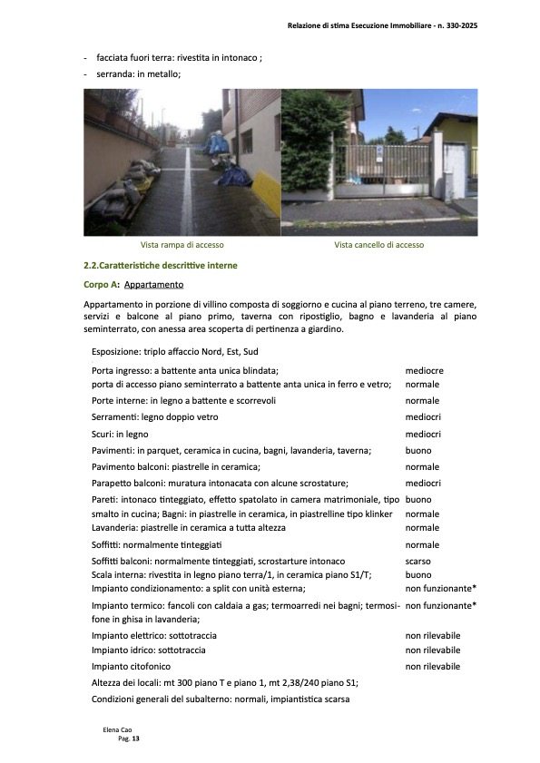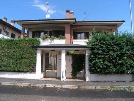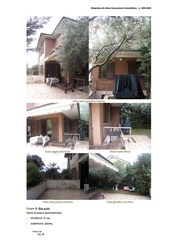 Comune di Rho (MI), frazione Terrazzano, via della Santa, piena proprietà di porzione di villetta bifamiliare, composta di soggiorno e cucina al piano terreno, tre camere, servizi e balcone al piano primo, taverna con ripostiglio, bagno e lavanderia al piano seminterrato, con annessa area scoperta di pertinenza a giardino, oltre a box auto al piano seminterrato adiacente ai servizi.