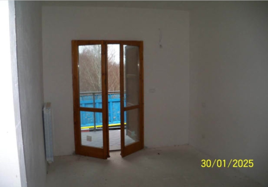 Diritto della piena proprietà di appartamento posto al piano terra (sup. 55 mq), con accesso attraverso la corte comune, composto da ingresso, cottura-soggiorno, due camere, piccolo disimpegno e bagno, con balcone accessibile sia dalla camera che dal soggiorno, ed è corredato da piccola corte esclusiva, da marciapiede esclusivo e da presella di corte a sé stante. Garage al piano seminterrato composto da un unico locale (sup. 24 mq) con porzione di corte esclusiva. Libero. Vedasi Avviso e Perizia