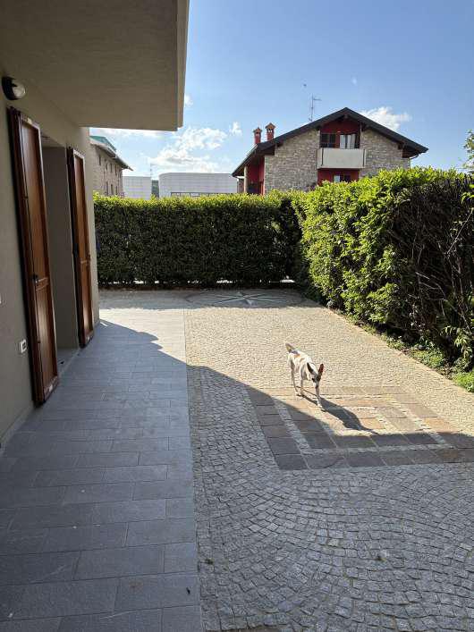 Intera piena proprietà di appartamento posto al piano terra con triplice affaccio. Sono pertinenza dell'abitazione i cortili esclusivi in lato nord/ovest-sud/ovest-sud/est, il ripostiglio e la lavanderia/wc a piano interrato. Autorimessa nell’interrato accessibile dal civico 6.