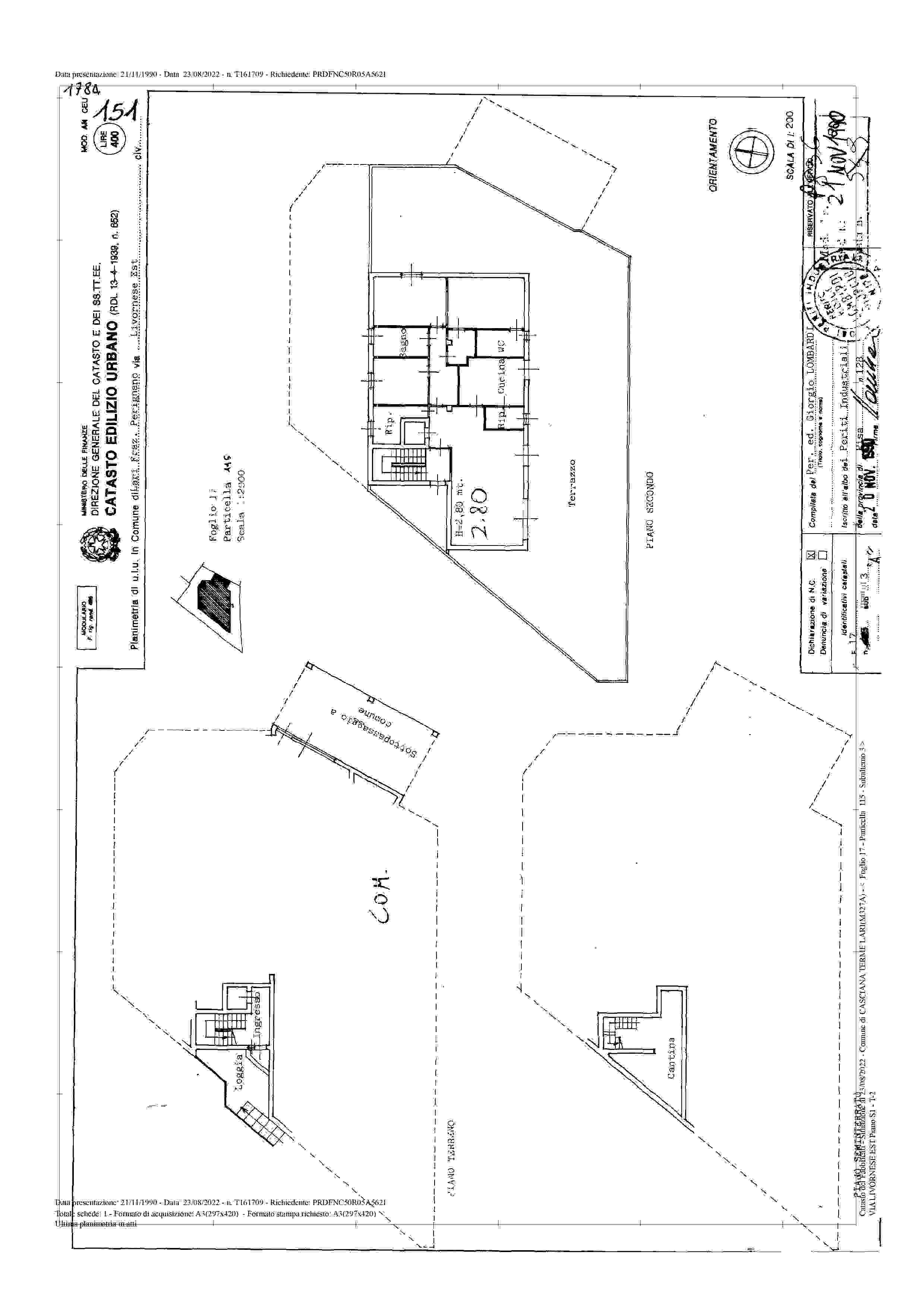 Appartamento situato al piano secondo, inserito in più ampio fabbricato a destinazione mista, completo di terrazze, cantina e loggia, di superficie convenzionale complessiva di 229,50 mq