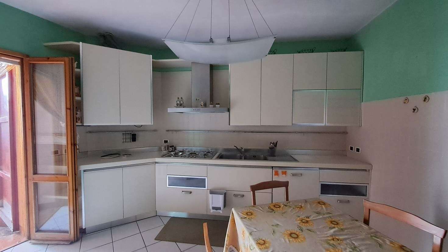 Abitazione che si sviluppa su due piani fuori terra e un piano primo sottostrada. Al piano sottostrada: ingresso, salotto con zona pranzo, cucina, ripostiglio, antibagno con bagno. Piano terra: ingresso, soggiorno, disimpegno, camera, antibagno e bagno. Piano primo: due camere da letto e un bagno. Corte esclusiva. LIBERO.