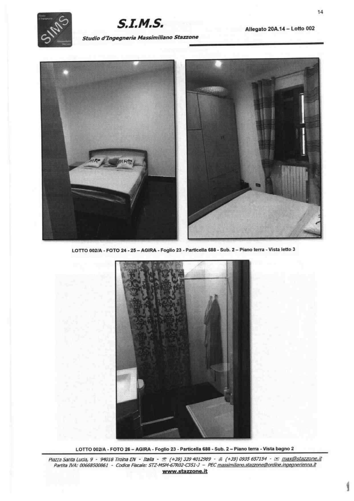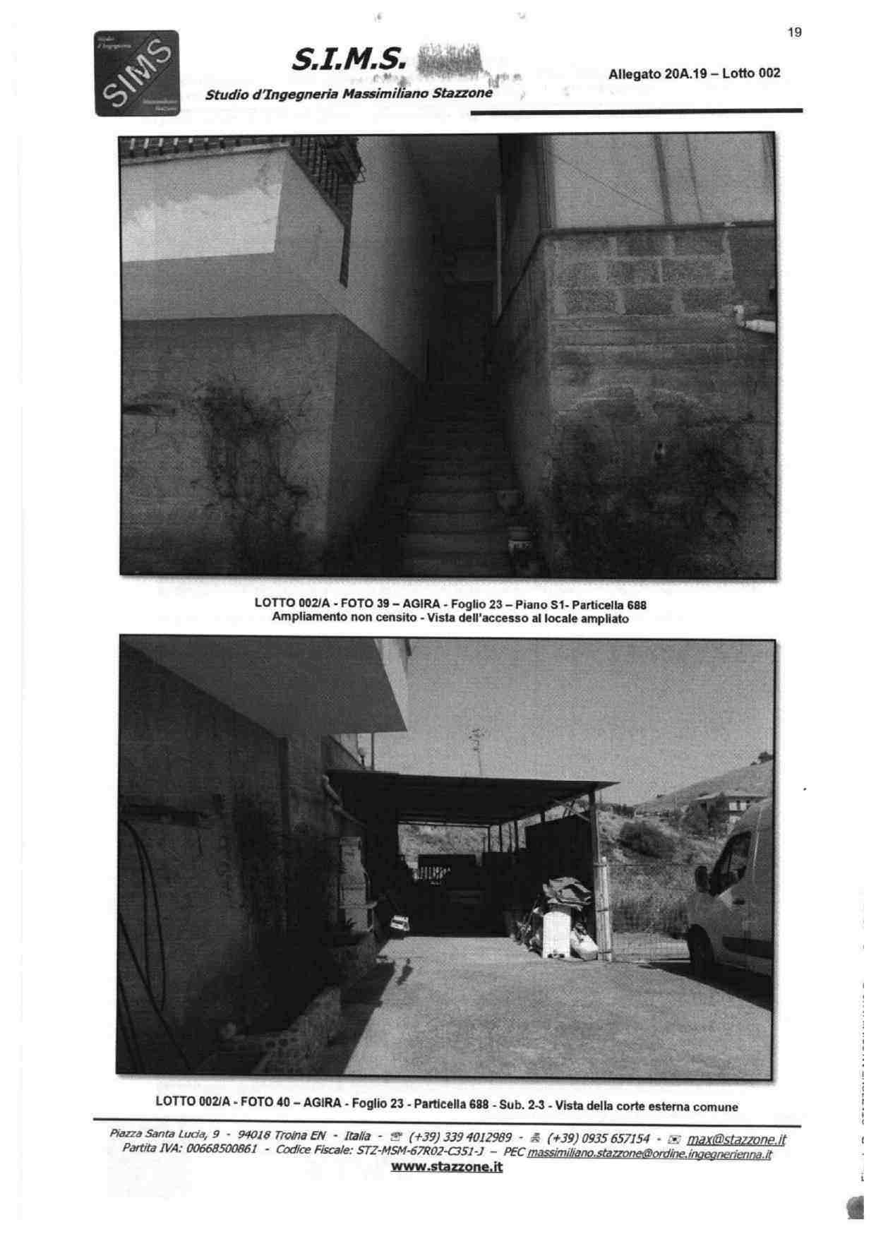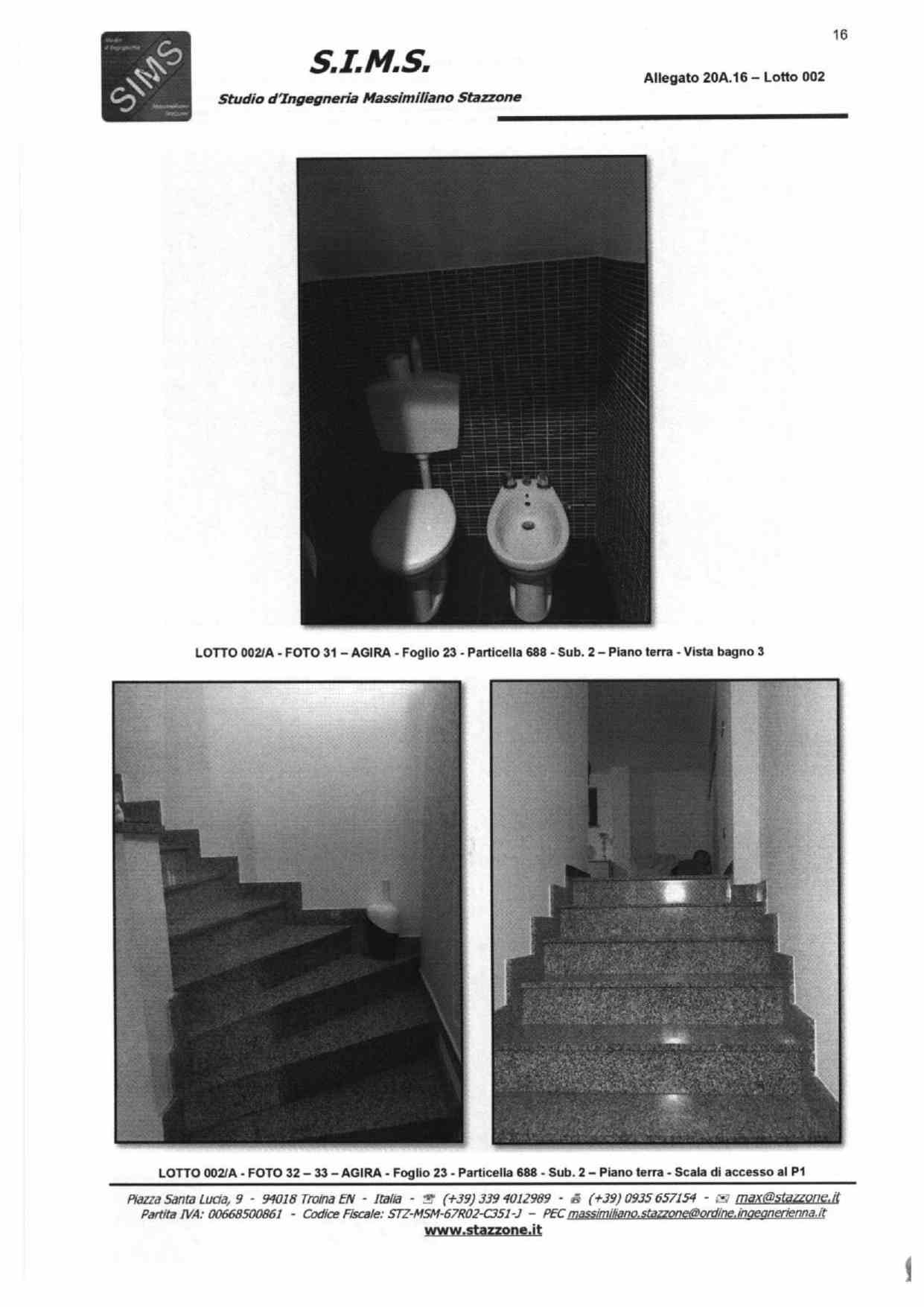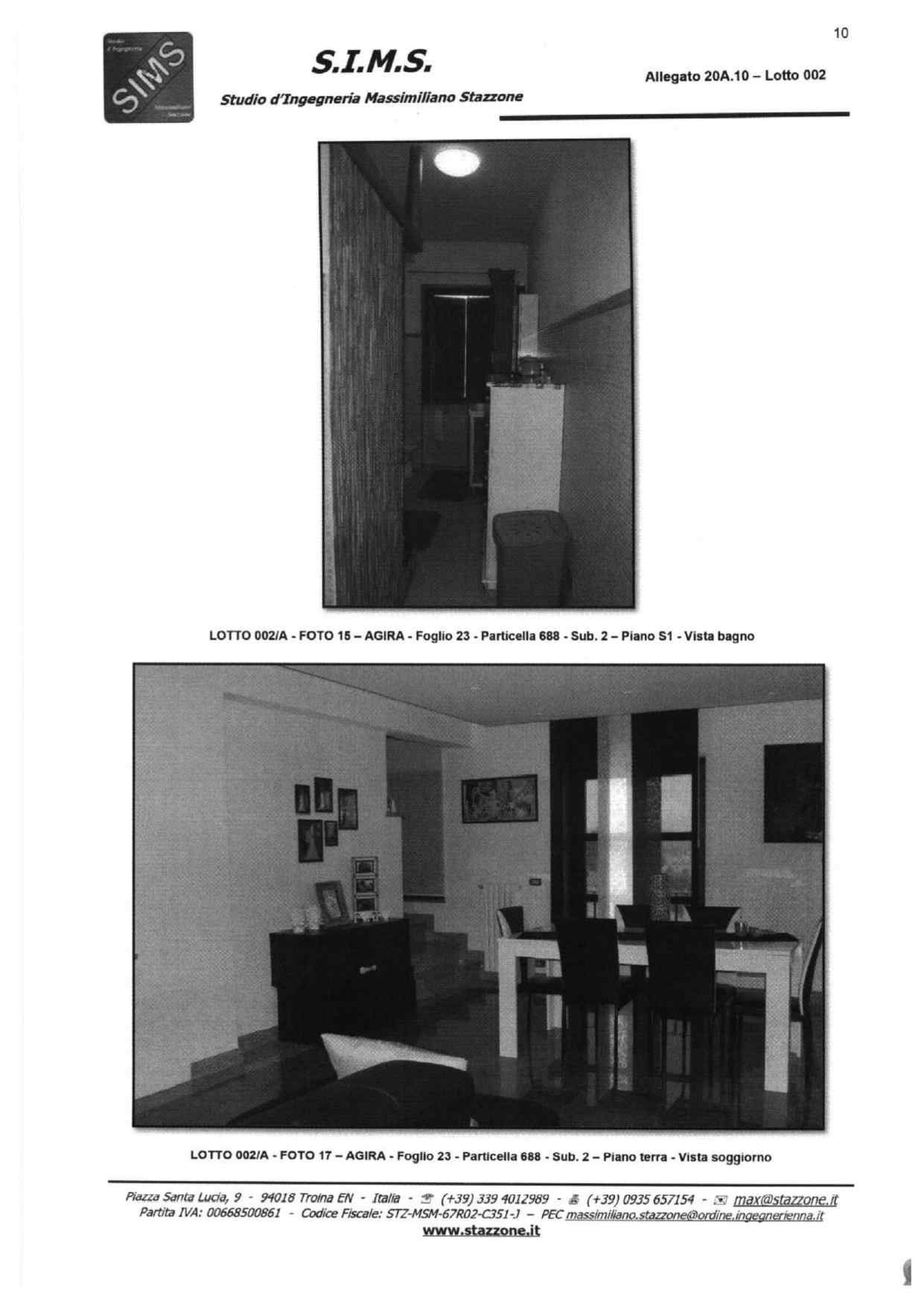 Abitazione su tre livelli sita in Agira, Via Giacomo Matteotti snc, composta da vani catastali 13,5 censita al NCEU al foglio 23, particelle 688 sub 2 e 688 sub 3, categoria A/3