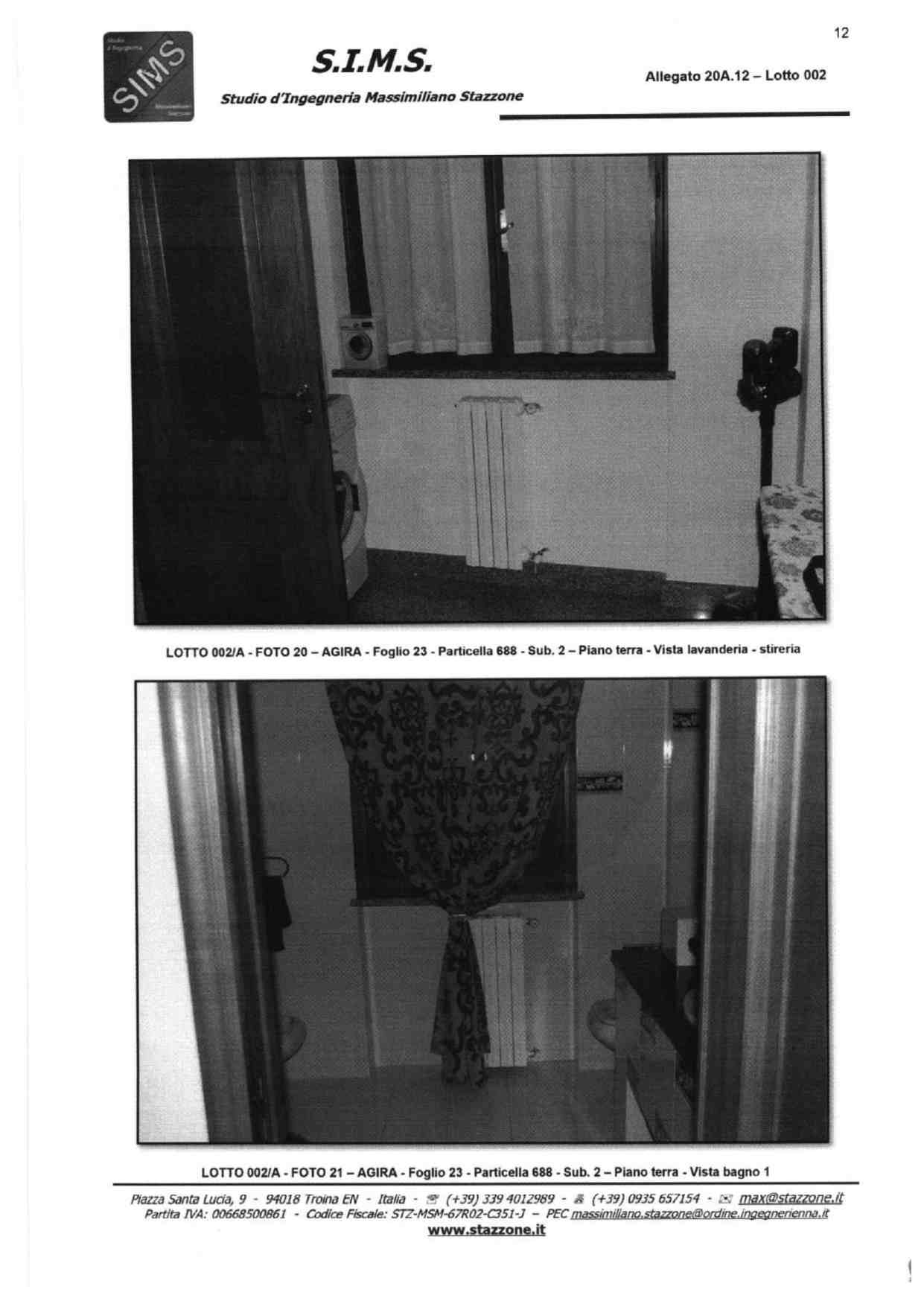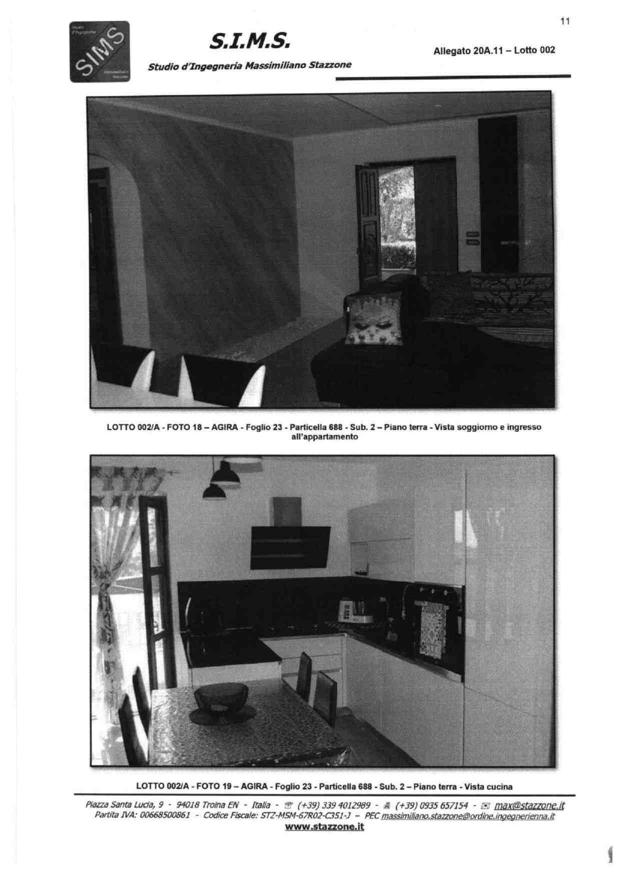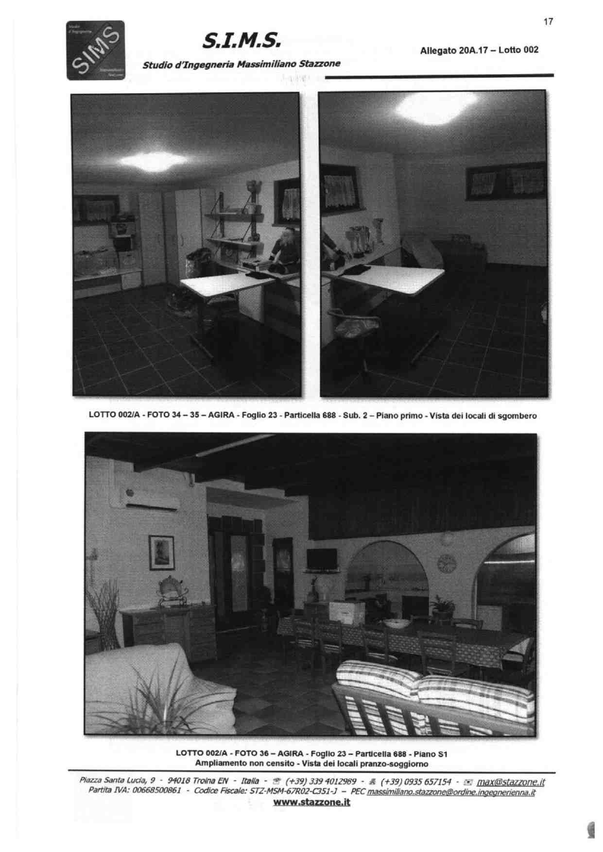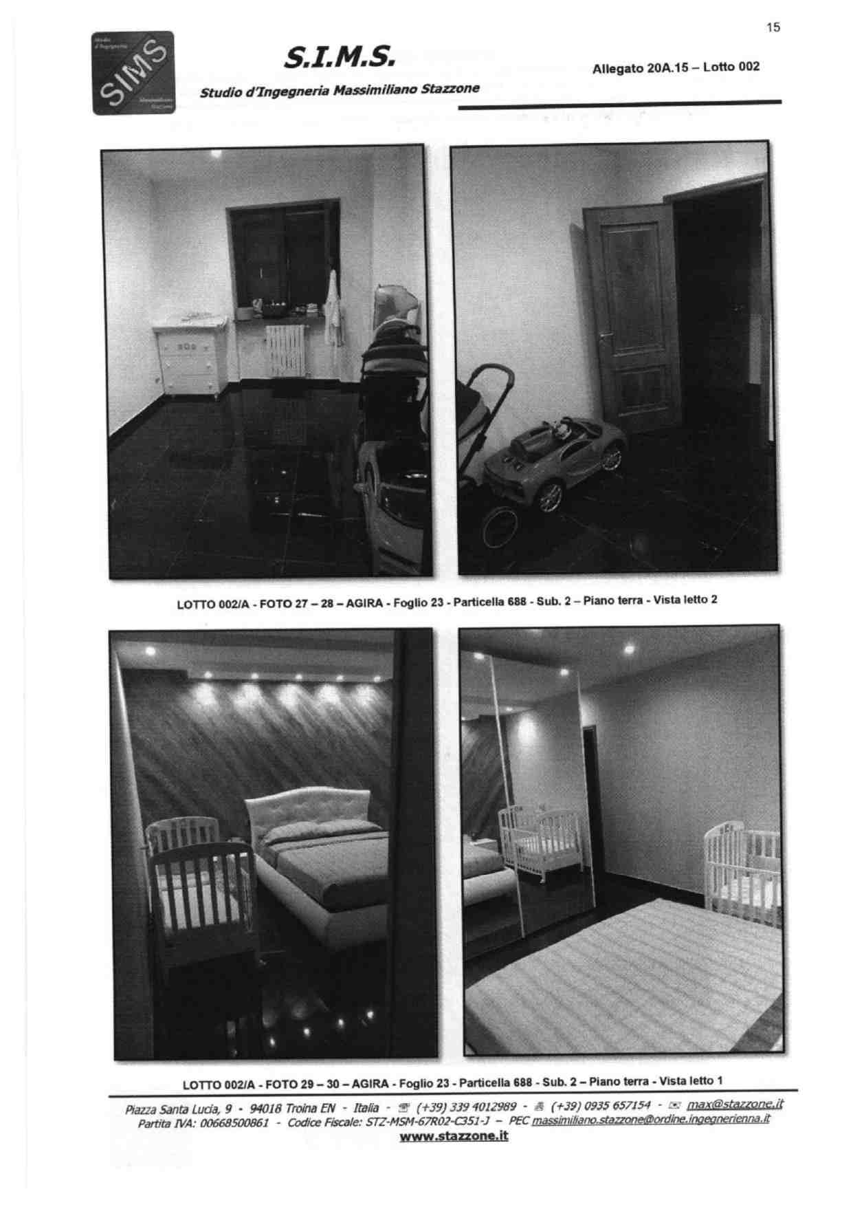 Abitazione su tre livelli sita in Agira, Via Giacomo Matteotti snc, composta da vani catastali 13,5 censita al NCEU al foglio 23, particelle 688 sub 2 e 688 sub 3, categoria A/3