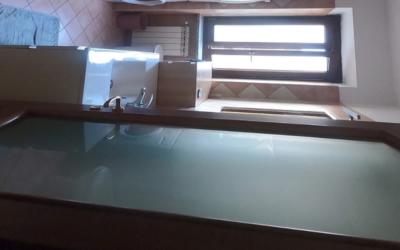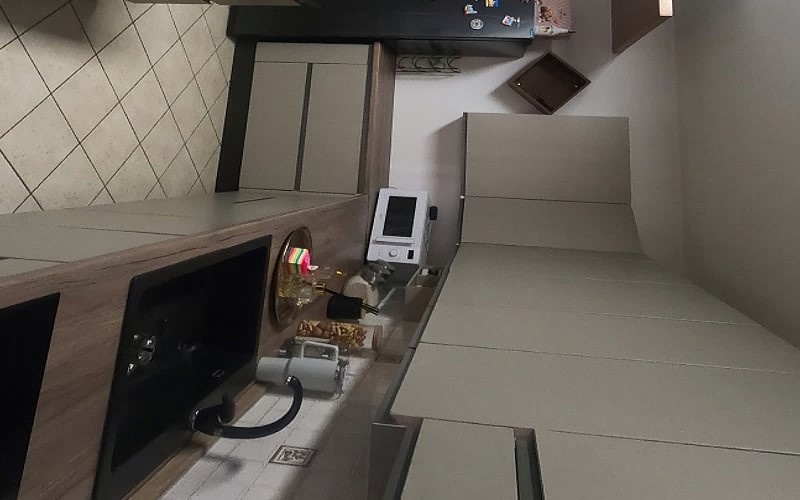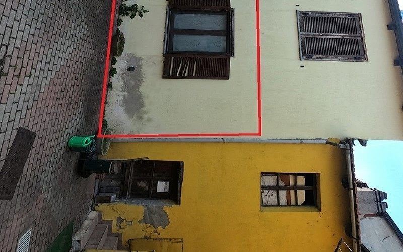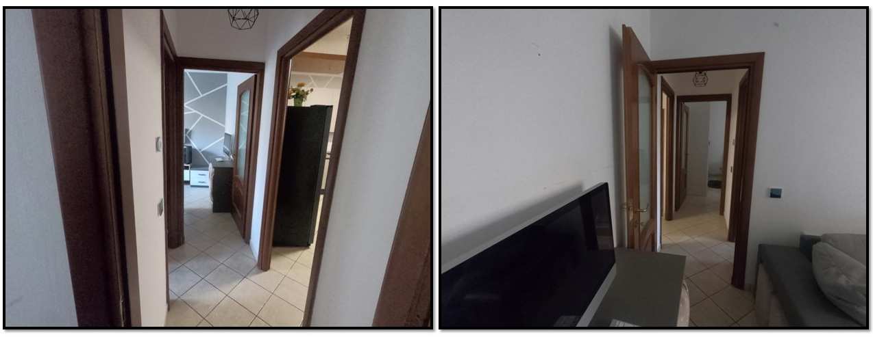 Un appartamento al piano terra (1 ft), con accesso indipendente dal cortile comune, composto da cucina-soggiorno, disimpegno, due camere, un bagno e ripostiglio.