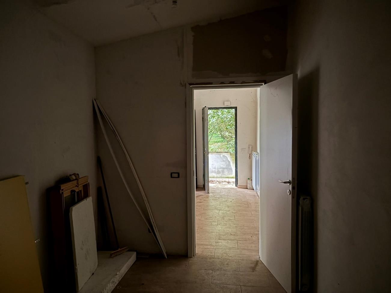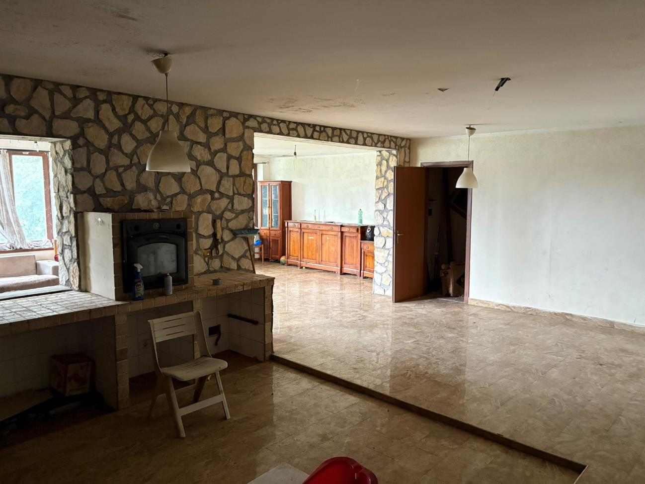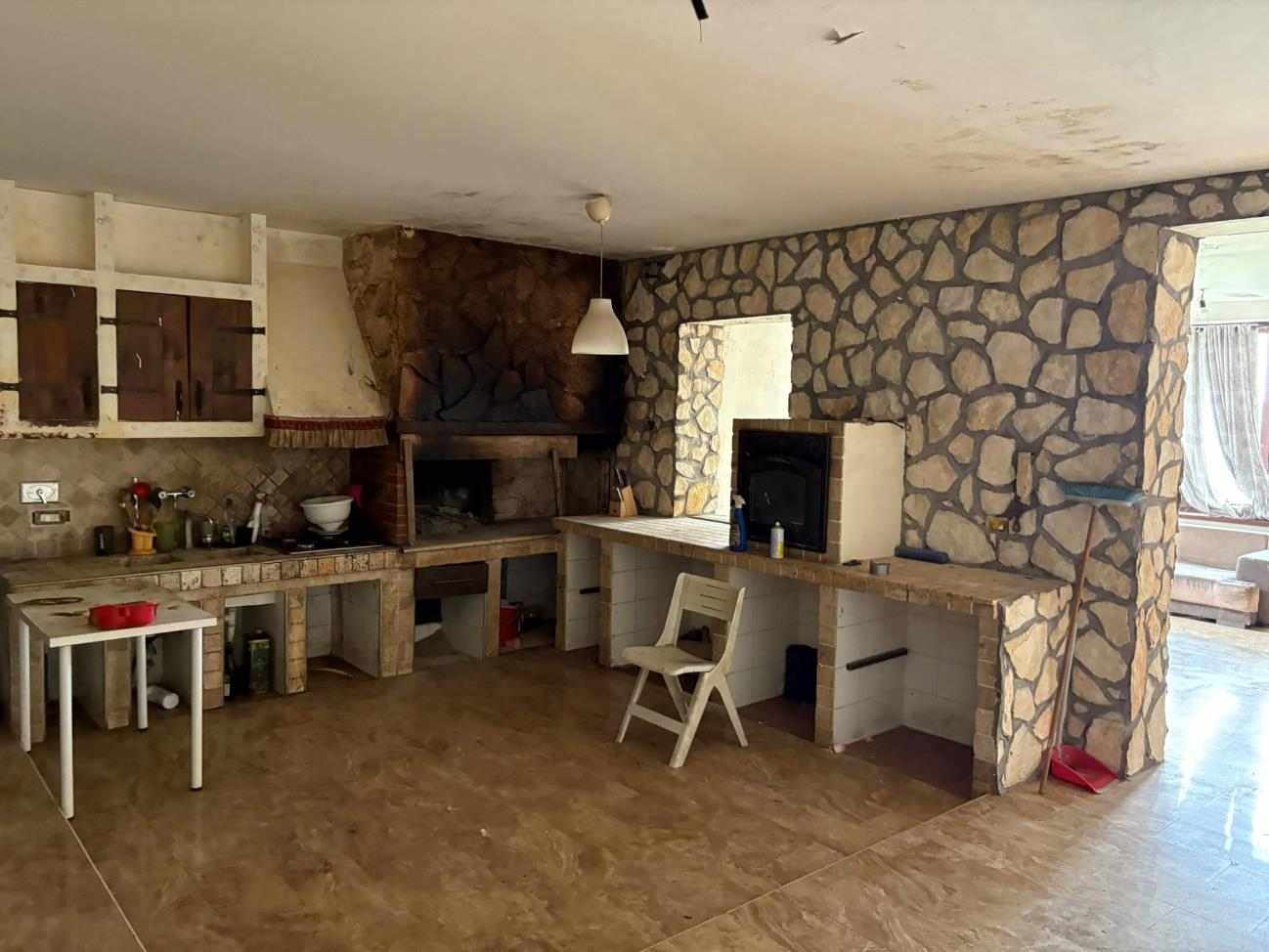 Compendio immobiliare sviluppato su due livelli fuori terra: il piano terra (non residenziale), risulta composto da un unico ambiente adibito a cantina. Sono inoltre presenti altri locali adibiti a cantine e depositi secondari, oltre ad un servizio igienico. il piano primo (residenziale), è destinato ad abitazione ed è composto da un soggiorno, una camera da letto, un ripostiglio ed un bagno, oltre ad un terrazzo. In adiacenza al corpo di fabbrica è presente, infine, un locale tecnico in stato di degrado.