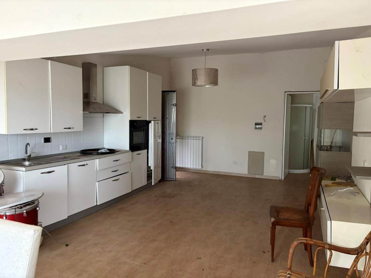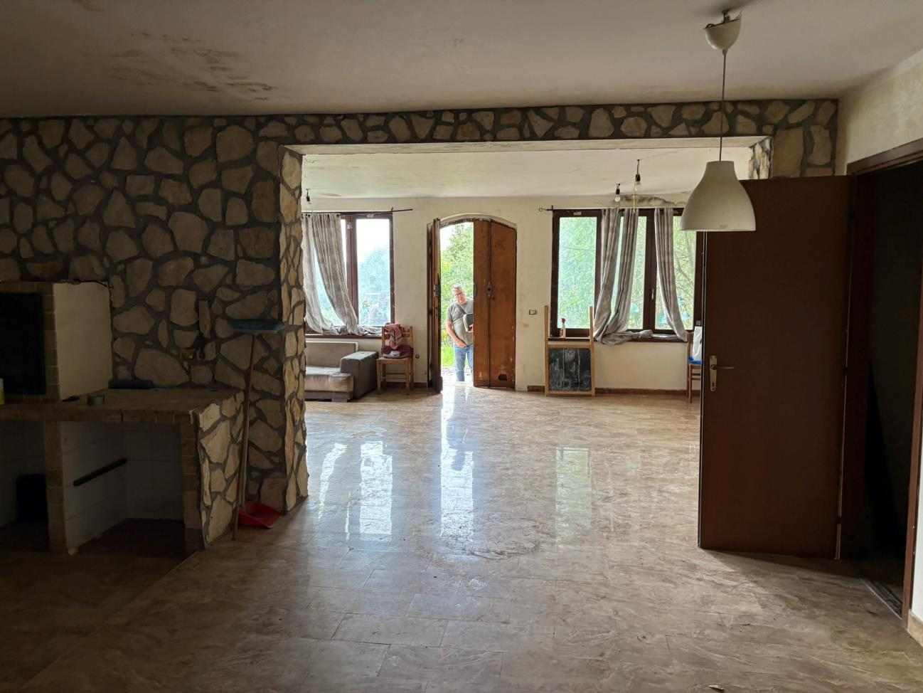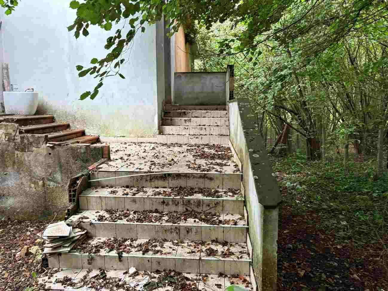 Compendio immobiliare sviluppato su due livelli fuori terra: il piano terra (non residenziale), risulta composto da un unico ambiente adibito a cantina. Sono inoltre presenti altri locali adibiti a cantine e depositi secondari, oltre ad un servizio igienico. il piano primo (residenziale), è destinato ad abitazione ed è composto da un soggiorno, una camera da letto, un ripostiglio ed un bagno, oltre ad un terrazzo. In adiacenza al corpo di fabbrica è presente, infine, un locale tecnico in stato di degrado.