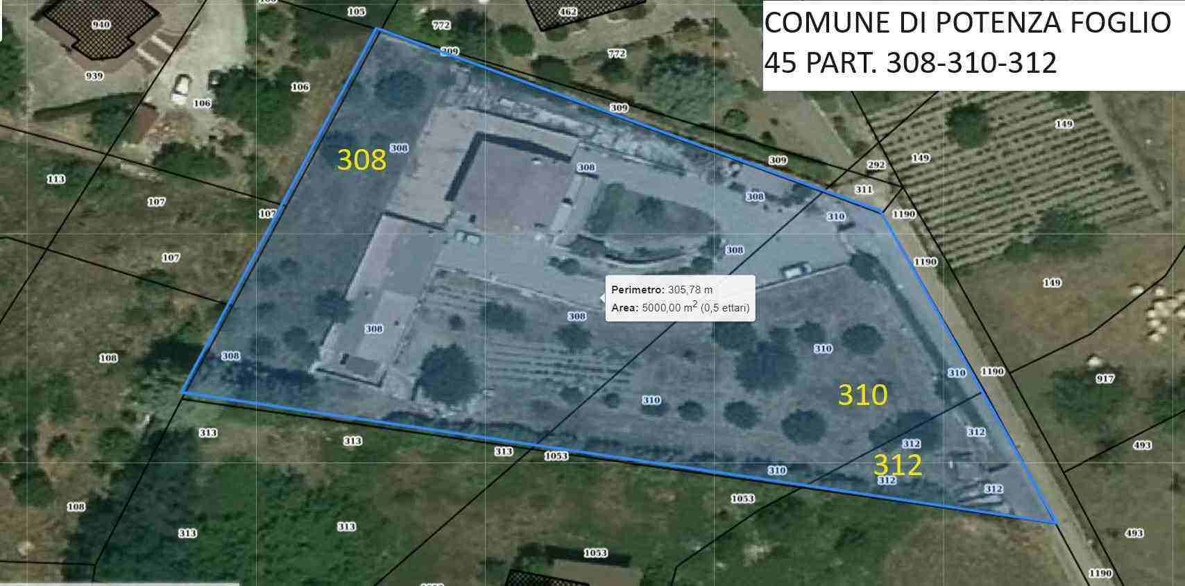 Quota 1/1 della piena ed intera proprietà nel comune di Potenza alla c.da Dragonara, terreno con entrostanti n. 6 fabbricati ad uso residenziale riportati nel catasto fabbricati al foglio 45 p.lla 1350 sub. 1 categ. A/7 cl. 3 vani 3,5;p.lla 1350 sub. 2 categ. A/7 cl. 3 vani 5,5; p.lla 1350 sub. 3, categ. A/7 cl.3 vani 5,5; p.lla 1350 sub. 4, categ. A/7 cl. 3 vani 5,5; p.lla 1350 sub. 5, categ. C/2 cl. 6 mq. 20; p.lla 1350 sub. 6, categ. C/2 cl. 6 ma. 17. terreni foglio 45 p.lle: - 308 ;- 310- 312