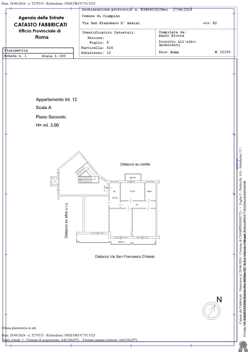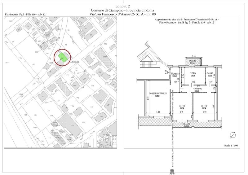 Appartamento di 115 mq sito in Ciampino (RM), Via San Francesco D'Assisi n. 82, scala A, interno 8, piano 2, composto da ingresso, soggiorno, cucina, disimpegno, 2 camere, bagno, 2 balconi.