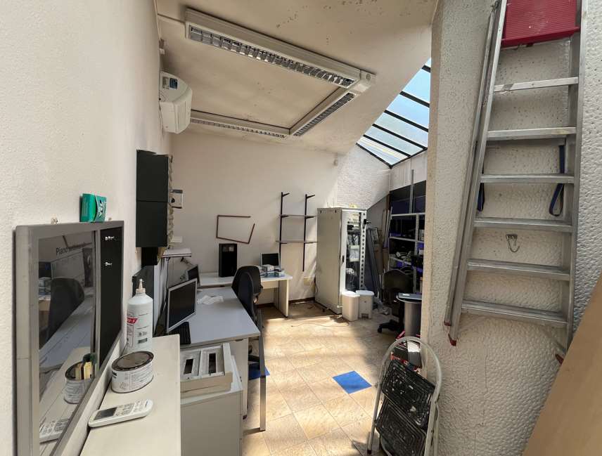 Fabbricato indipendente composto da tre locali ad uso uffici al piano terra, un locale uso archivio, locali a uso magazzini e due bagni disimpegnati, il tutto collegato da una scala interna.L’unità immobiliare sviluppa una superficie lorda di mq. 346 circa escluse le aree esterne.