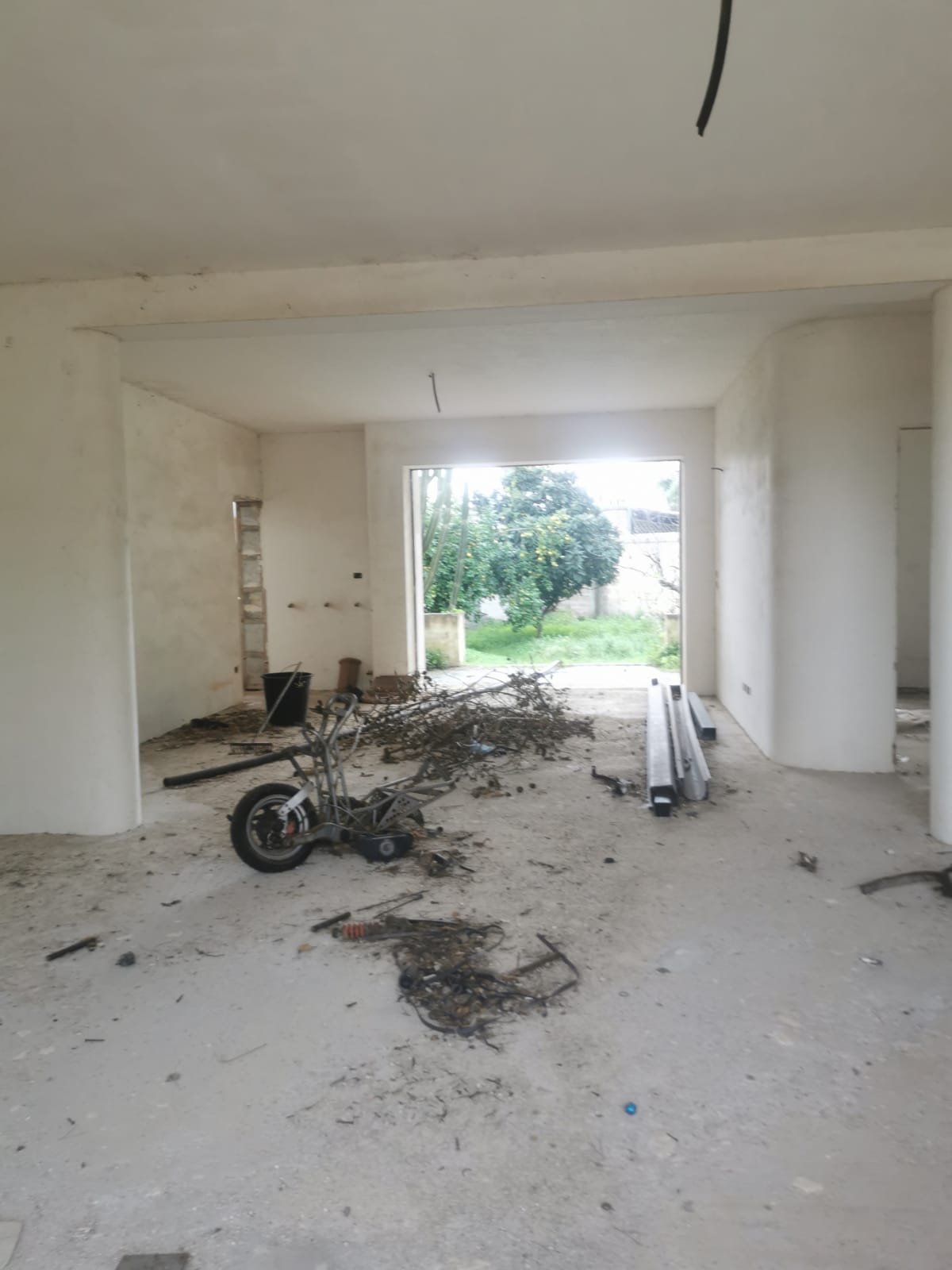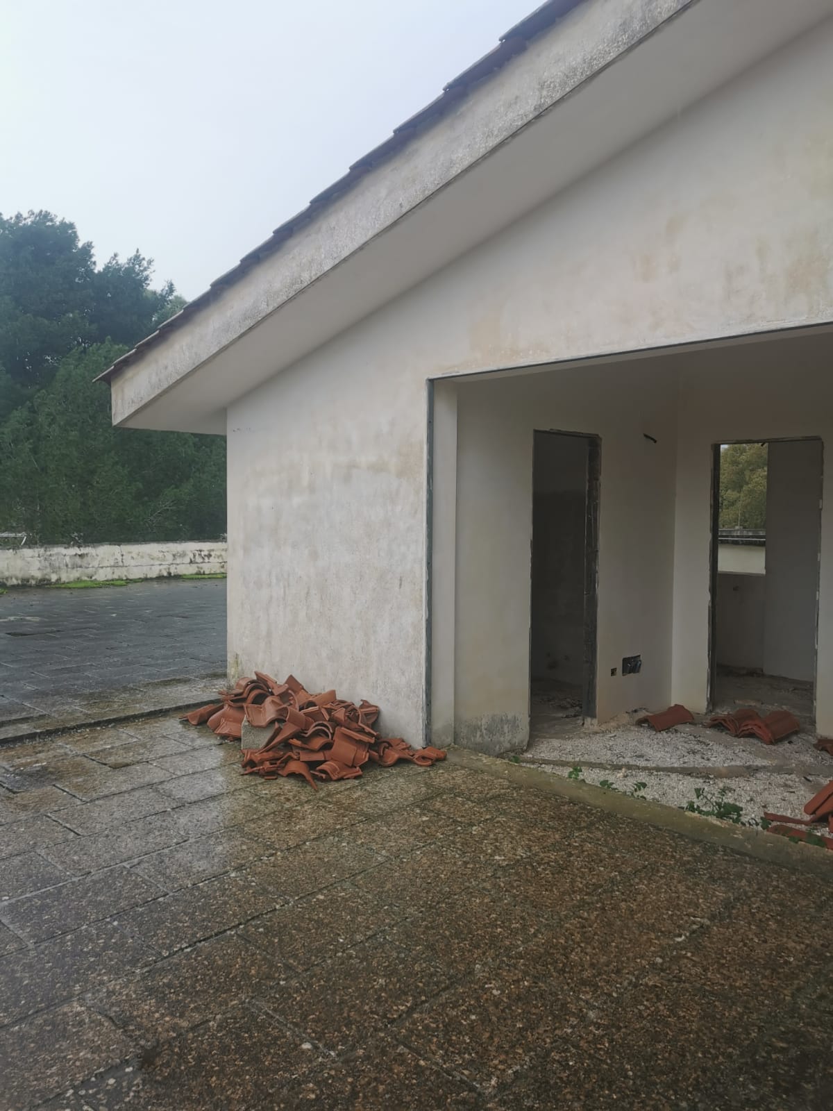 Piena proprietà per la quota di 1000/1000 di fabbricato al rustico composto da un piano fuori terra, il piano coperture ed un piano scantinato. Il piano terra è composto da ingresso, soggiorno-salone, tinello, studio, sala, cucina, tre vani letto, due bagni, lavanderia e disimpegno oltre alle verande coperte. Il piano scantinato, accessibile da vano scala e da rampa carraia, è composto da garage e da due vani. il primo piano o copertura, è composto da un ampio monolocale con angolo cottura e wc.