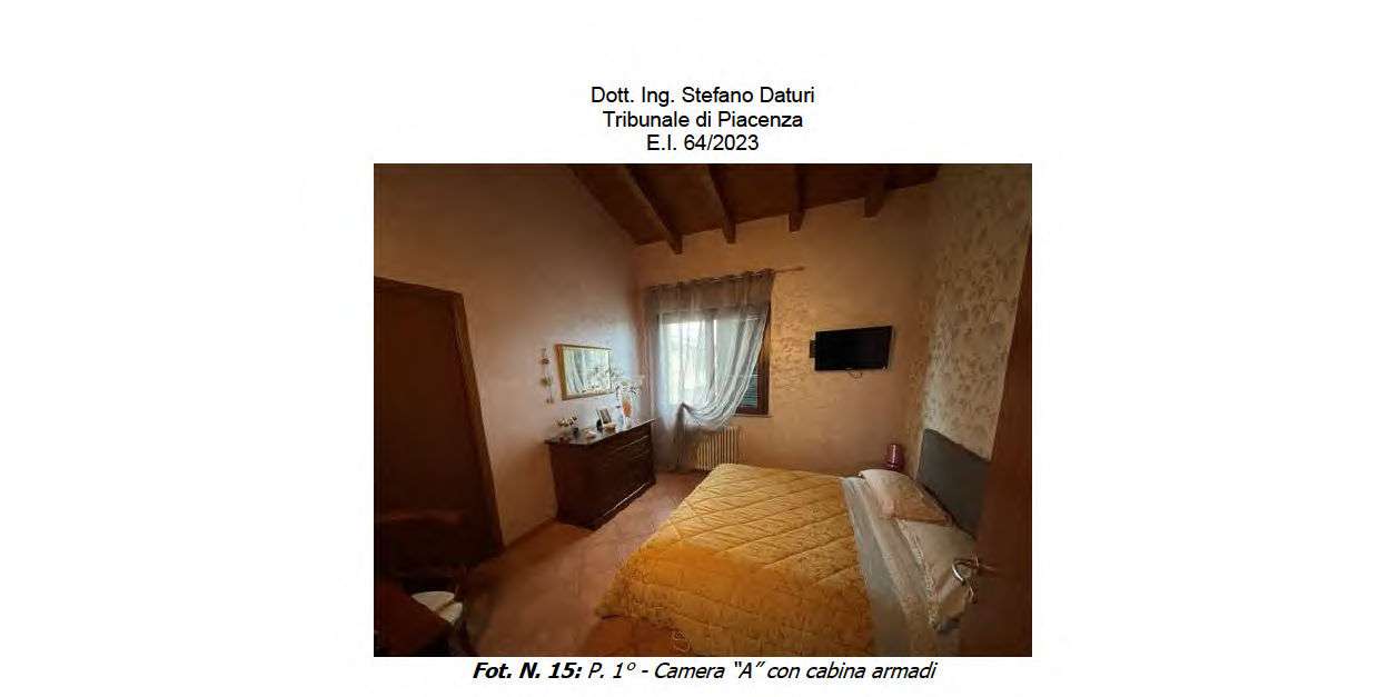 In Comune di Podenzano, Località Due Case n. 2/a, lotto composto da: piena proprietà di villetta a schiera da cielo a terra su due livelli (piano terra e primo) con autorimessa; quota di 2/24 della strada privata di accesso alla pubblica via (mappale 269).