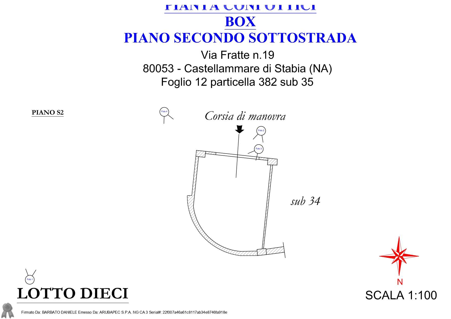 Piena ed intera proprietà di un Box/garage ubicato in Castellammare di Stabia (NA), Via Fratte n° 19 piano I sottostrada
