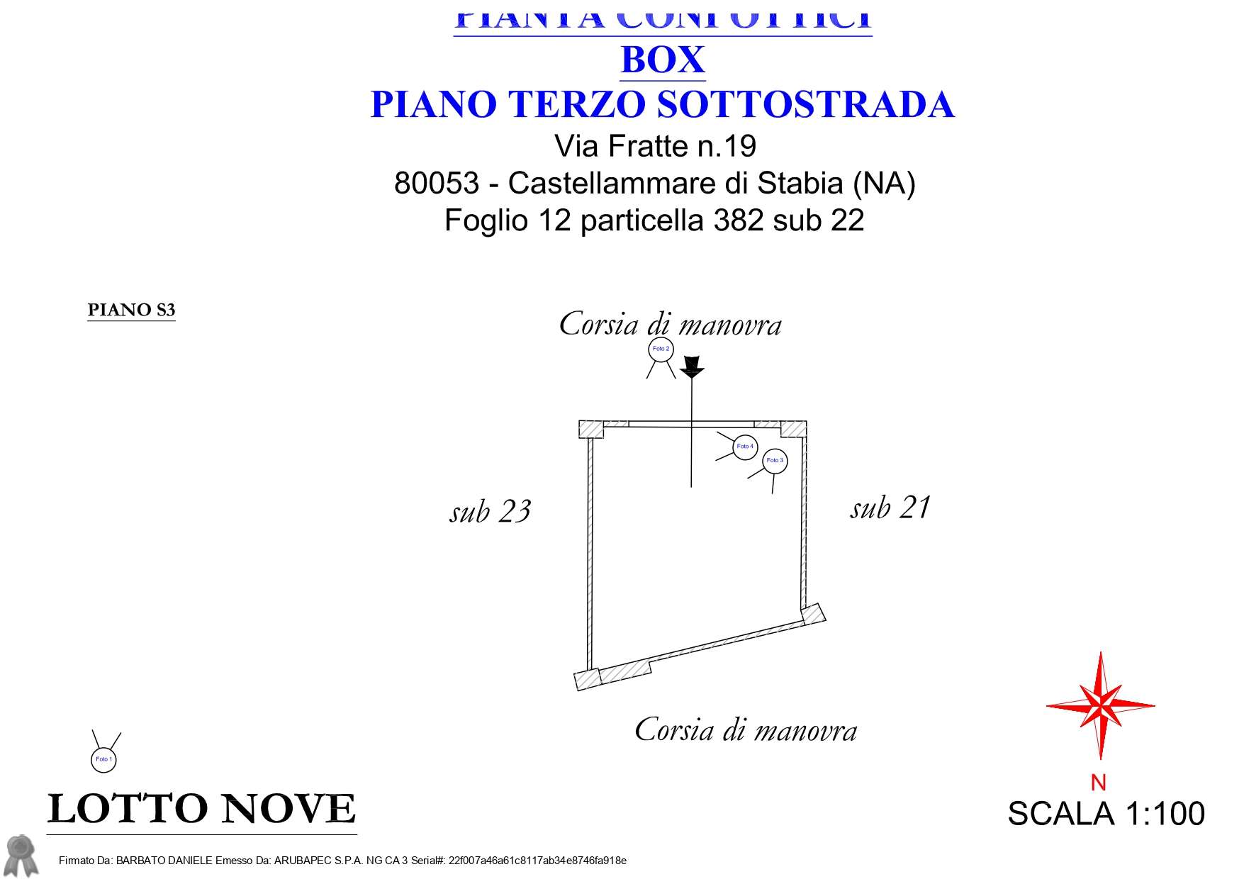 Piena ed intera proprietà di un Box/garage ubicato in Castellammare di Stabia (NA), Via Fratte n° 19 piano II sottostrada