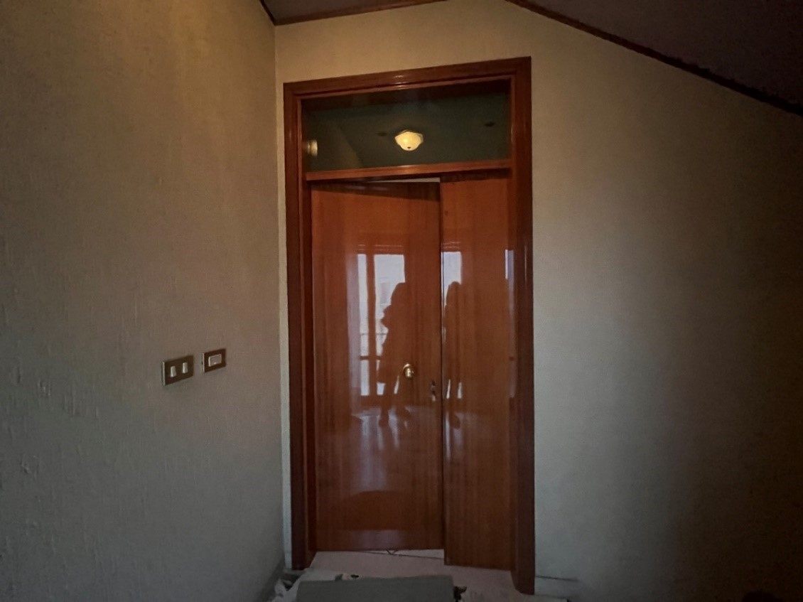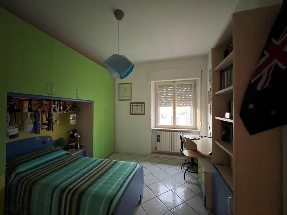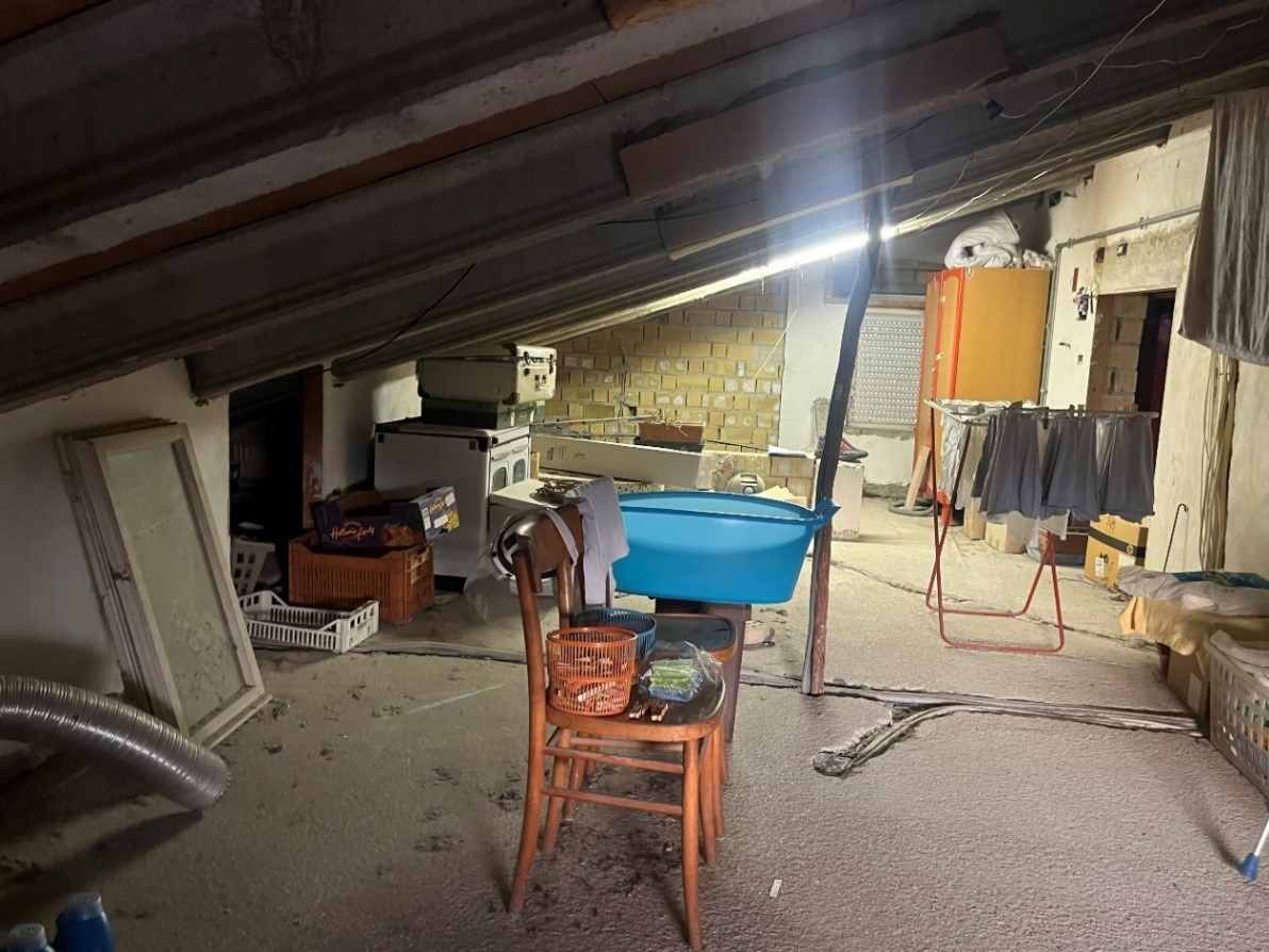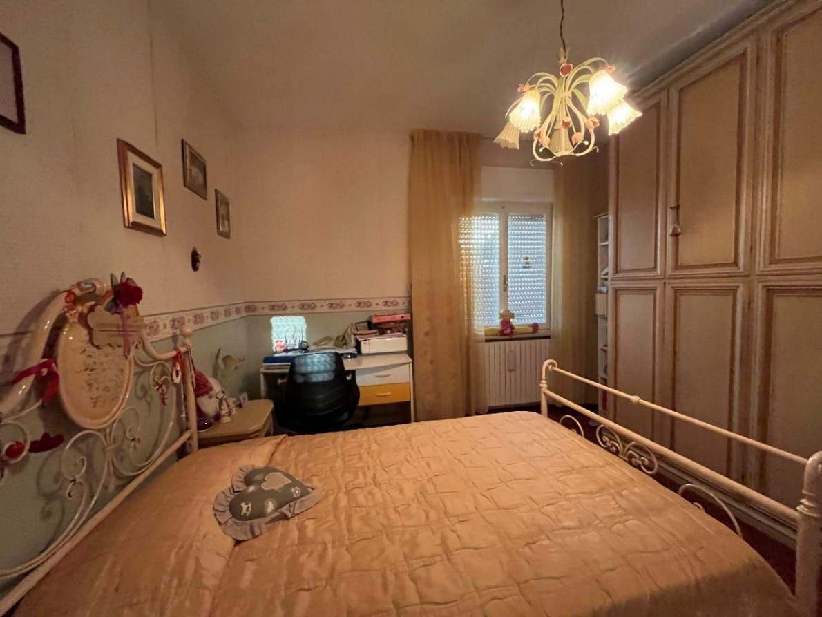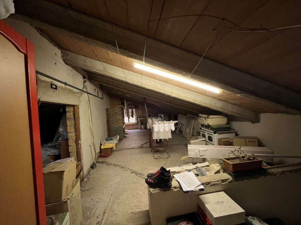 Appartamento della consistenza commerciale di circa 122 mq sito al piano secondo e terzo (sottotetto con destinazione soffitta) di un edificio a 4 piani di cui uno seminterrato, libero su tutti i lati con corte esterna prevalentemente pavimentata senza ascensore costituito da ingresso-corridoio, soggiorno-cucina, bagno, due camere matrimoniali ed una camera singola. In buono stato di conservazione con infissi in legno bianco.