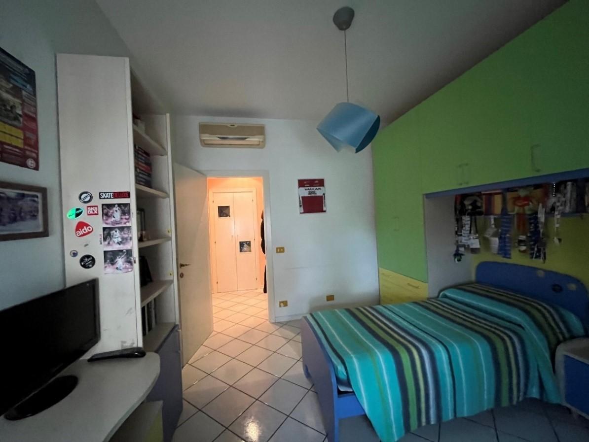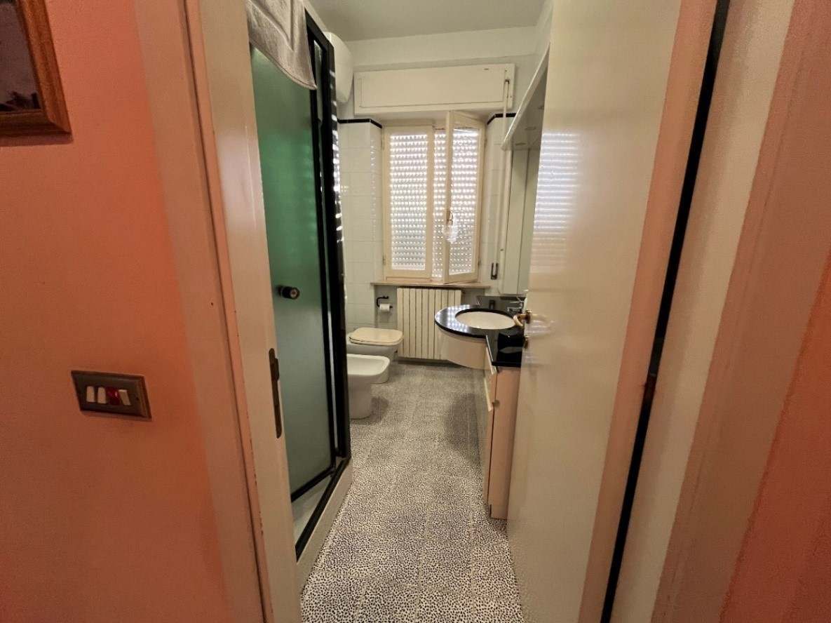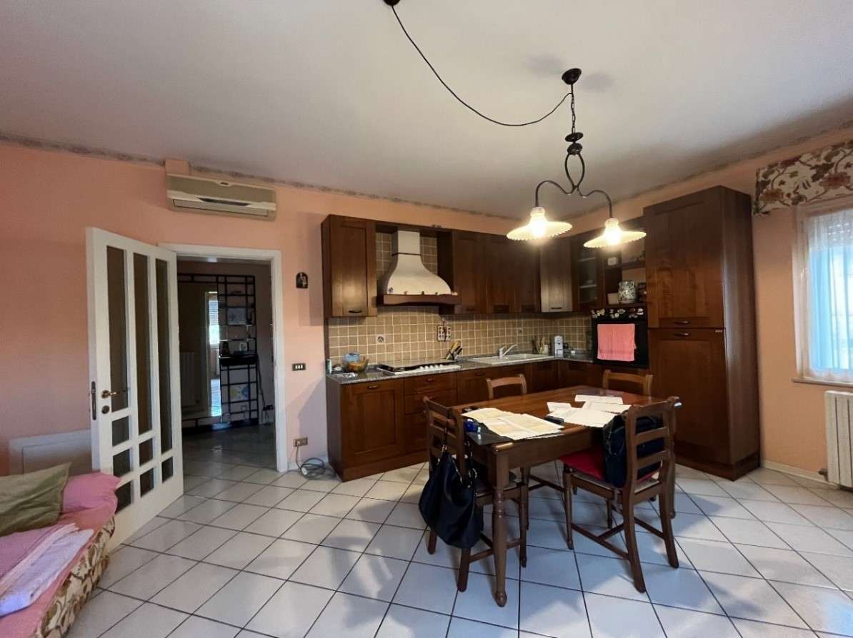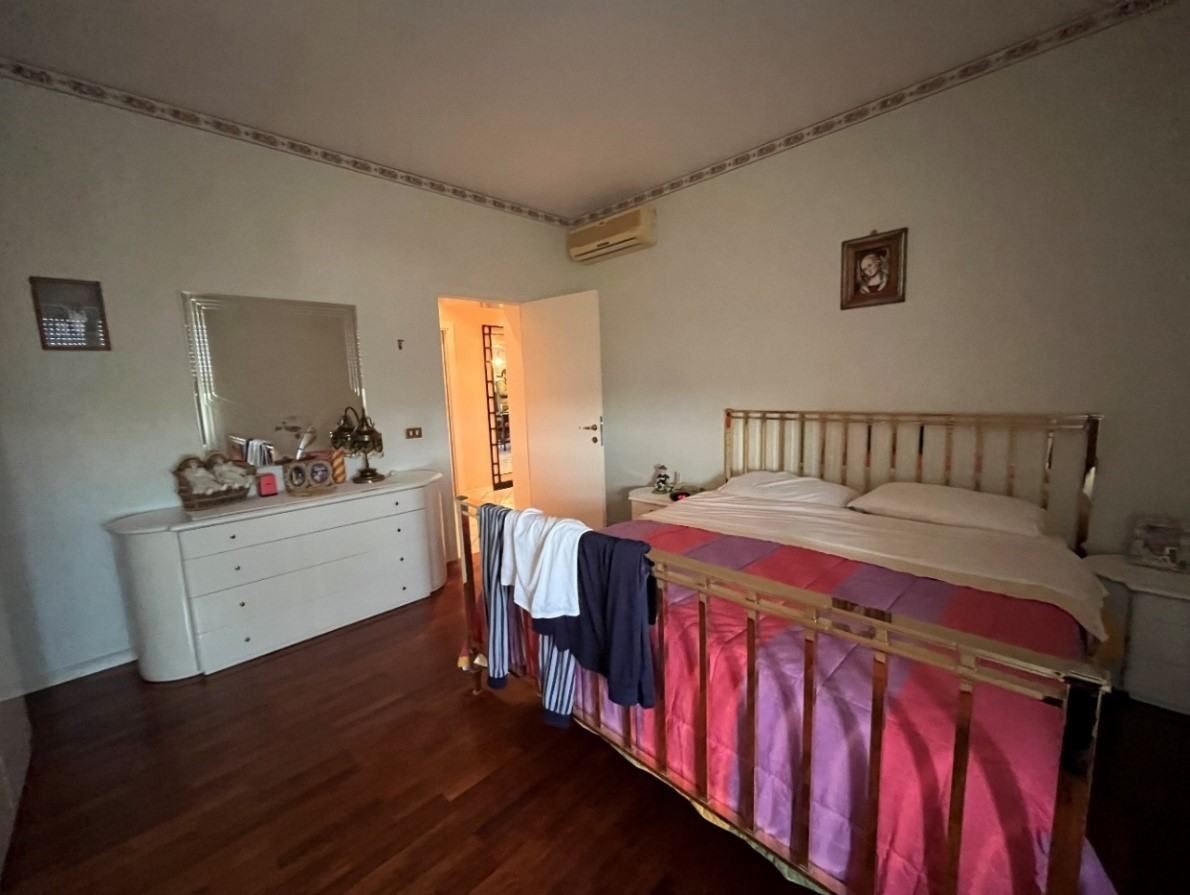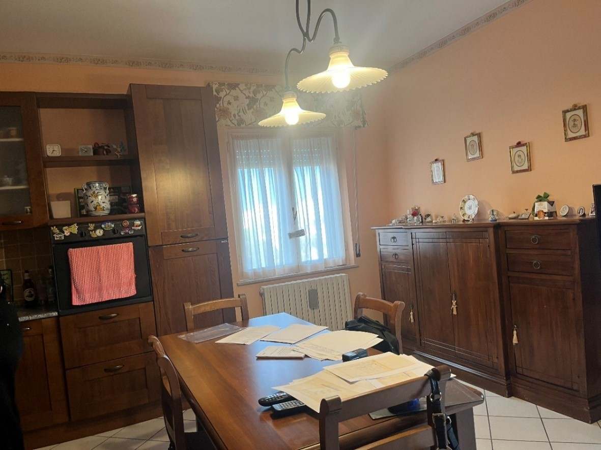 Appartamento della consistenza commerciale di circa 122 mq sito al piano secondo e terzo (sottotetto con destinazione soffitta) di un edificio a 4 piani di cui uno seminterrato, libero su tutti i lati con corte esterna prevalentemente pavimentata senza ascensore costituito da ingresso-corridoio, soggiorno-cucina, bagno, due camere matrimoniali ed una camera singola. In buono stato di conservazione con infissi in legno bianco.