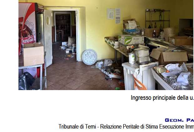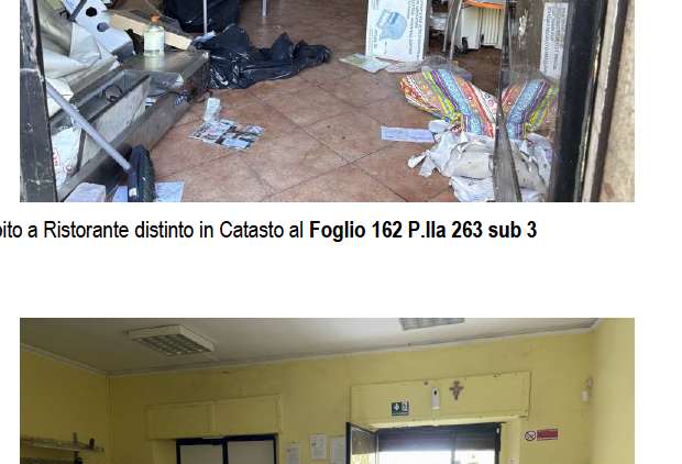 Locale commerciale a destinazione ristorante al piano terra con locale sgombero/cantina al piano interrato - costituito da ingresso con due vani uso bar, disimpegno, 2 sale ristorante, 4 vani uso cucina e antibagno con 2 vani, unico vano uso sgombero/cantina al piano interrato collegato internamente al ristorante con accesso dal vano cucina. Si rimanda alla perizia per una descrizione dettagliata dei beni