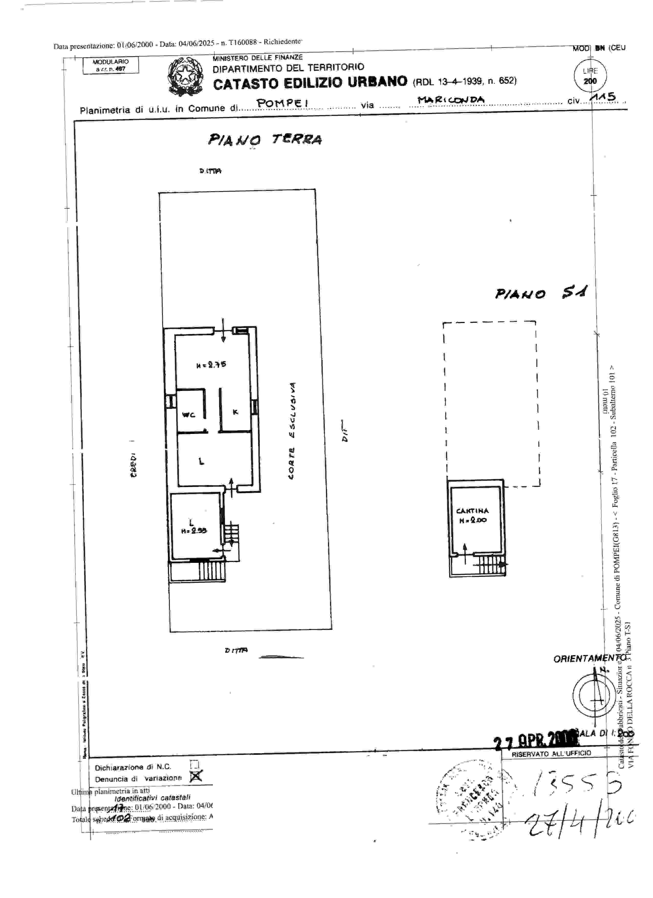 Immobile sito al piano terra, composto da un soggiorno - cucina, da due camere ed un bagno , oltre un cortile esclusivo ed una cantinola ,con la precisazione che uno dei due vani è posto al piano rialzato a cui si accede, esclusivamente mediante una scala dal suddetto cortile.