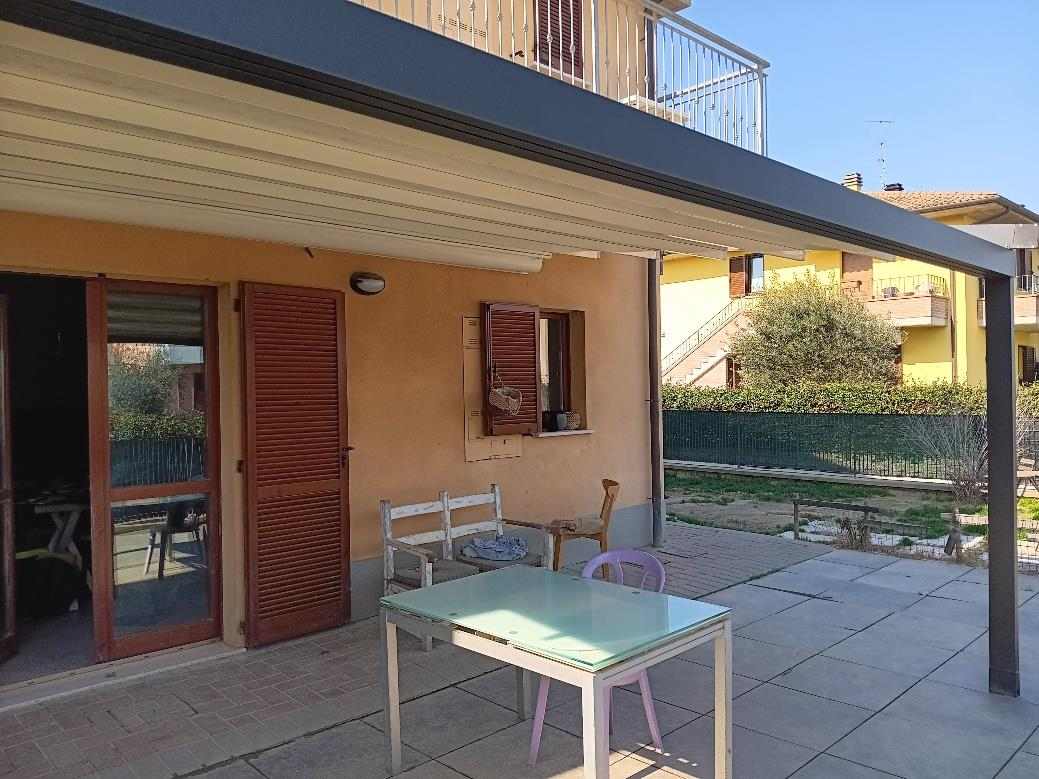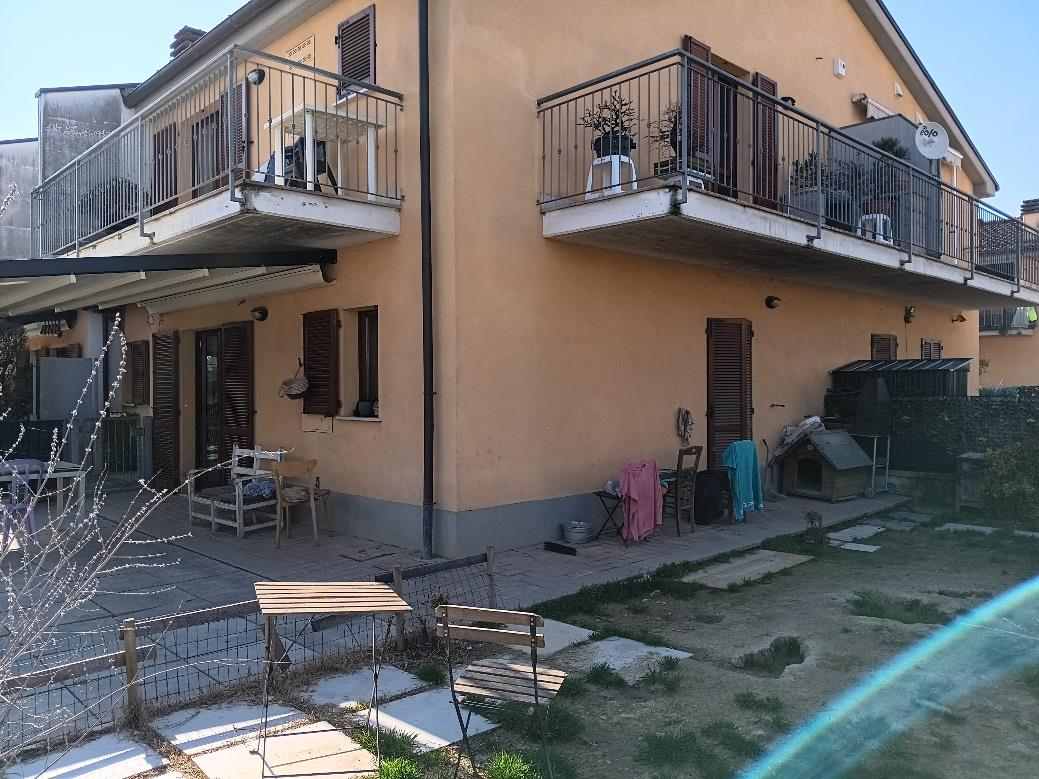 Porzioni di un più ampio fabbricato condominiale residenziale in comune di Città di Castello, frazione Piosina, via Giuseppe Ravizza n.10, costituite da un appartamento piano terra, con annessi, fondo al piano sotto strada e piccola corte urbana di pertinenza esclusiva e da un garage di pertinenza al piano sotto strada, compresi i diritti pro quota sulle parti comuni condominiali