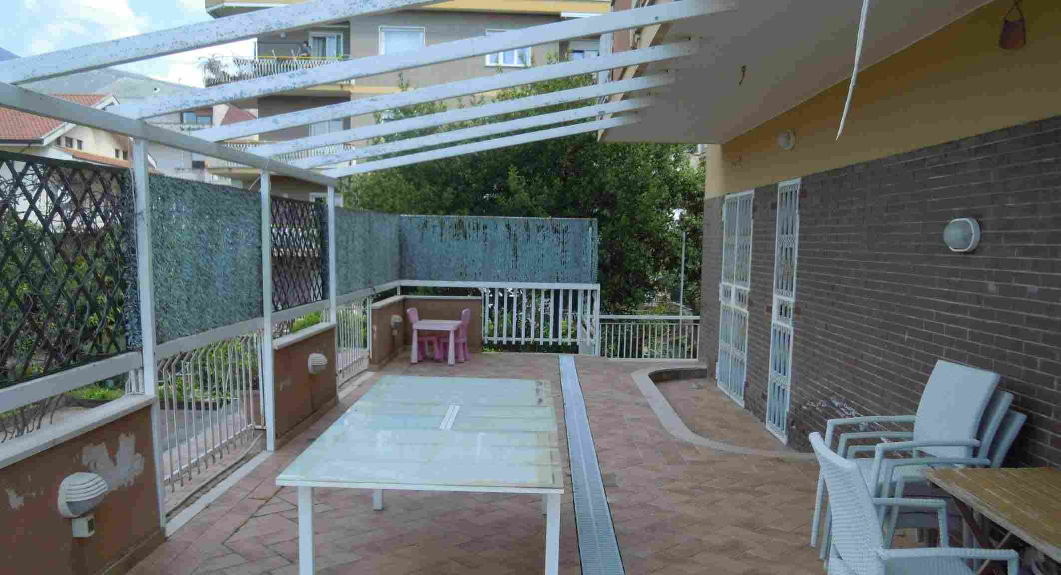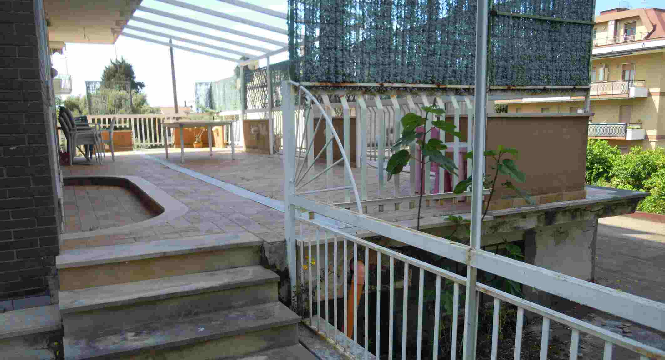 APPARTAMENTO soggiorno con adiacente cucina, da tre camere dal letto, da due servizi igienici e da un disimpegno per una superficie utile netta residenziale di circa 95.07 mq, oltre un ampio balcone perimetrale a tutto l’appartamento su tre lati di circa 83.68 mq. L’immobile in questione è un appartamento posto al piano primo di una intera palazzina di tre piani in elevazione; l’appartamento è distinto in catasto nella sezione urbana di Maranola al foglio 33 particella 247 sub 2