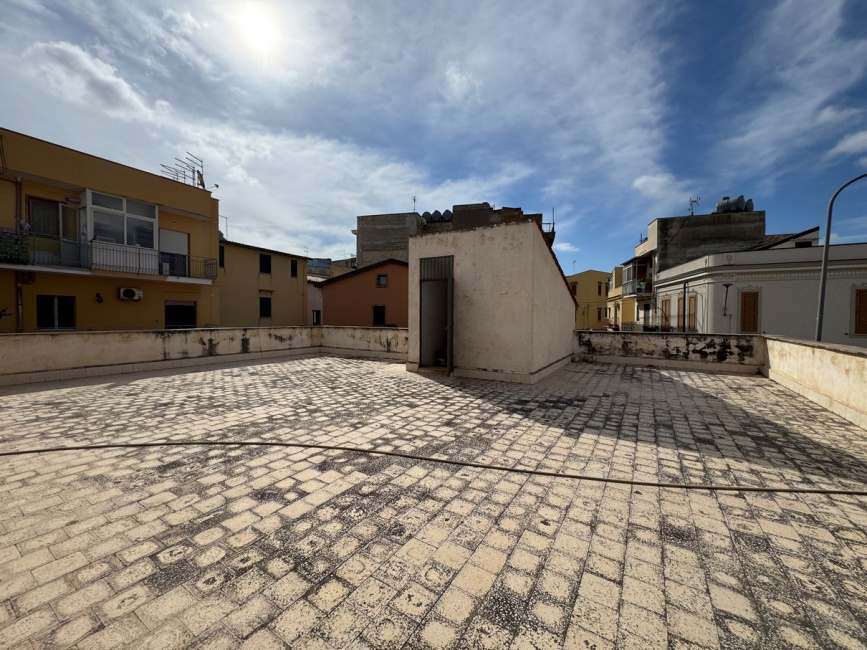 Edificio in Aspra, fr. di Bagheria, via del Pozzo 6-6/A, composto da unità residenziale, a piano terra su un unico livello, con corte scoperta pertinenziale, estesa al lordo mq 187,45 ed il cortile esteso al lordo mq 93,57, identificata al c.f. fg. 8, part. 2296 sub. 6, costituita da soggiorno-cucina, corridoio, 4 camere, guardaroba, bagno, vano dispensa, 2°cucina, piccolo bagno-lavanderia, altro corridoio, altra camera e vano scala; oltre lastrico solare, p. 1, mq 149,00, al c.f. fg. 8, part. 2296 sub. 3.