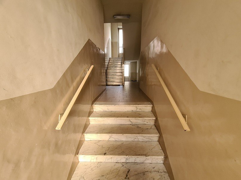 Alloggio al piano quarto (V f.t.), così composto: ingresso, cucina, camera da letto e bagno oltre a balcone; al piano soffitte, un vano ad uso soffitta.